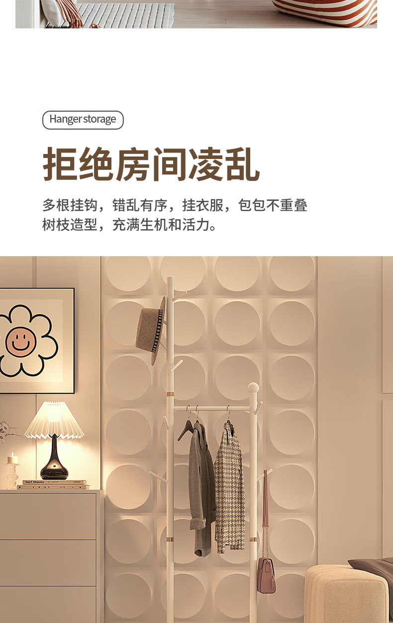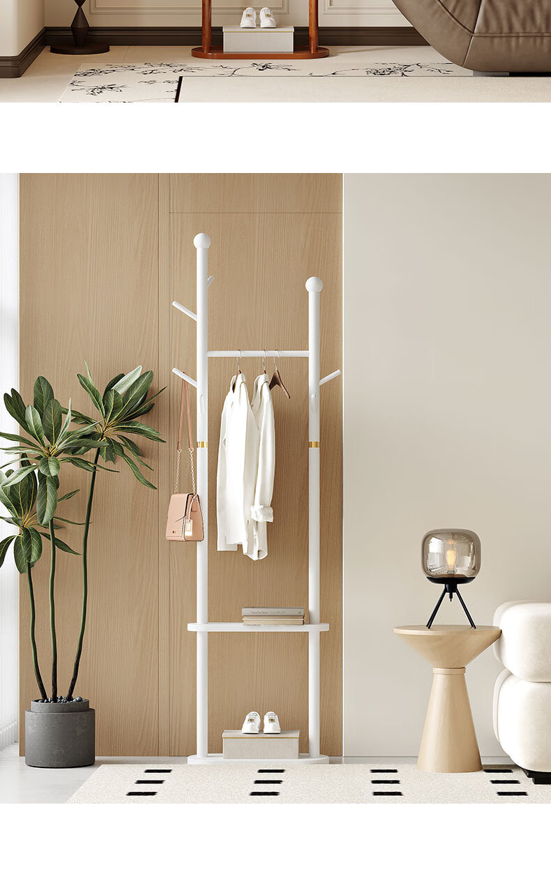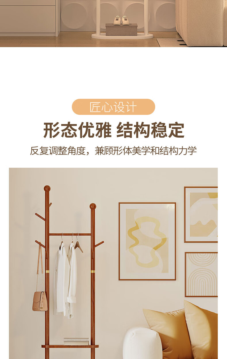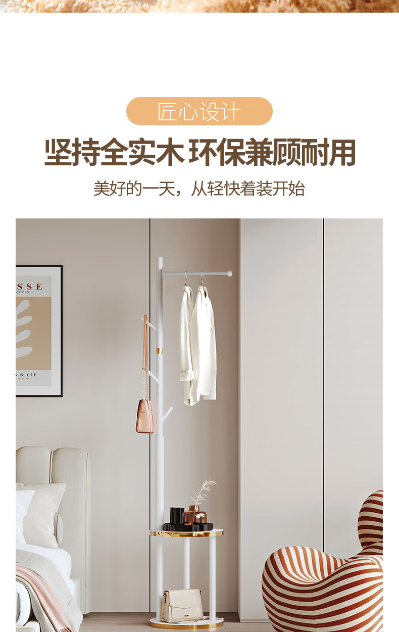 Miaoli solid wood clothes hanger floor-standing coat rack room storage bedroom clothes hanger indoor home vertical clothes storage rack single layer oval plate-walnut color solid solid wood