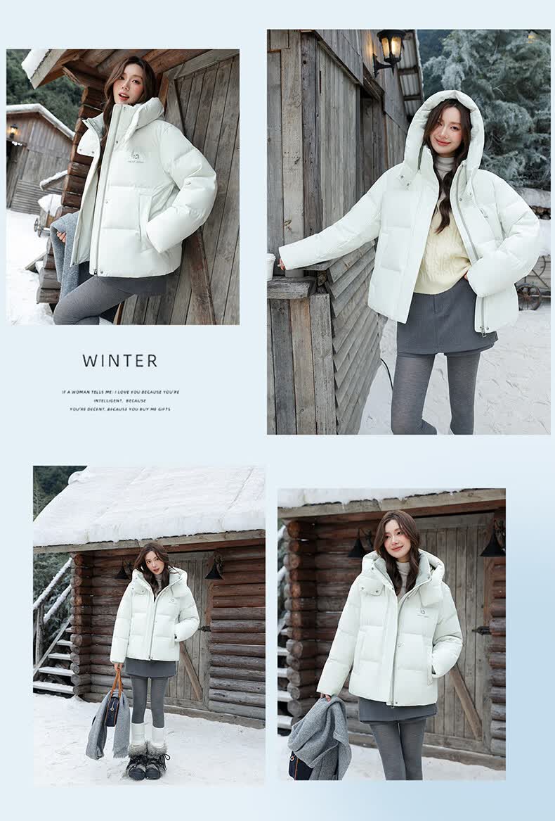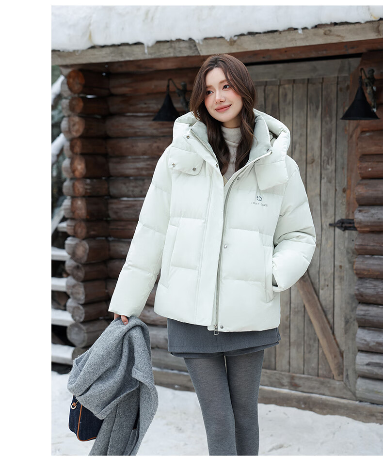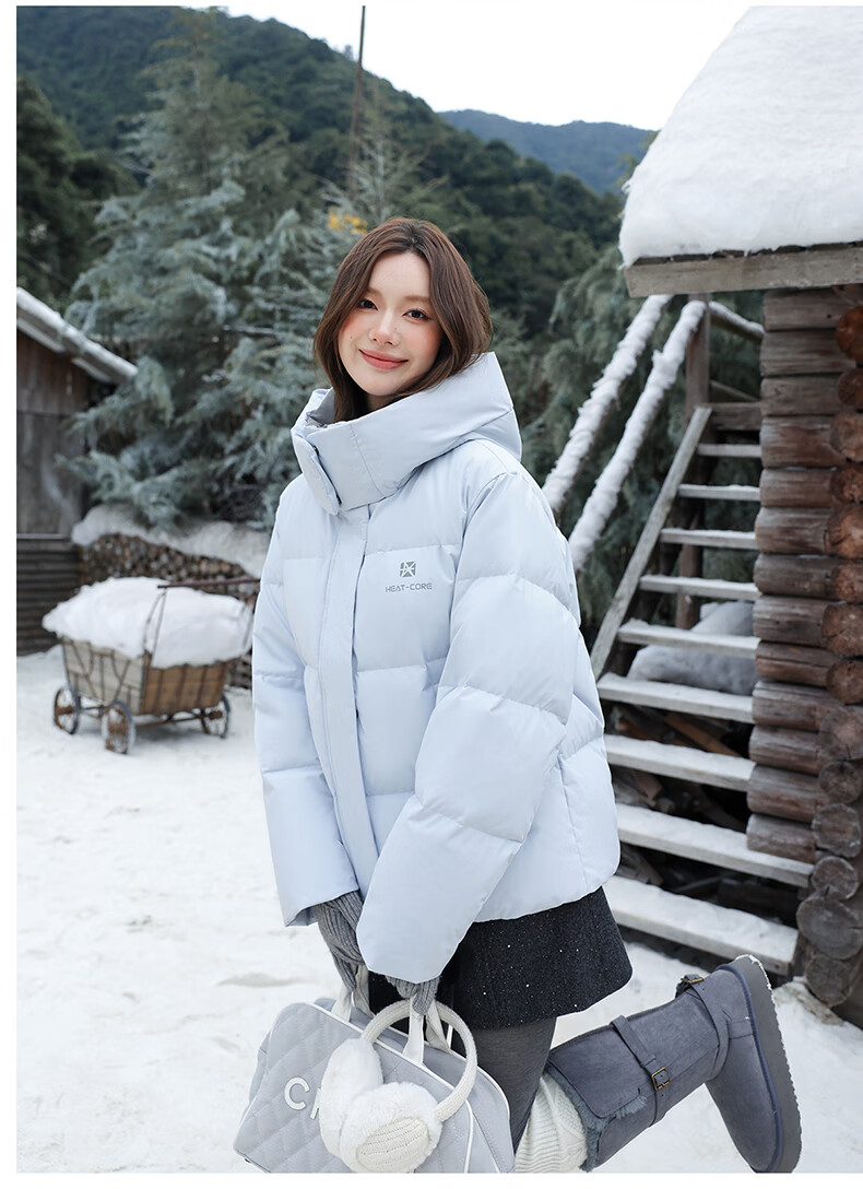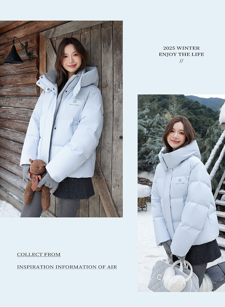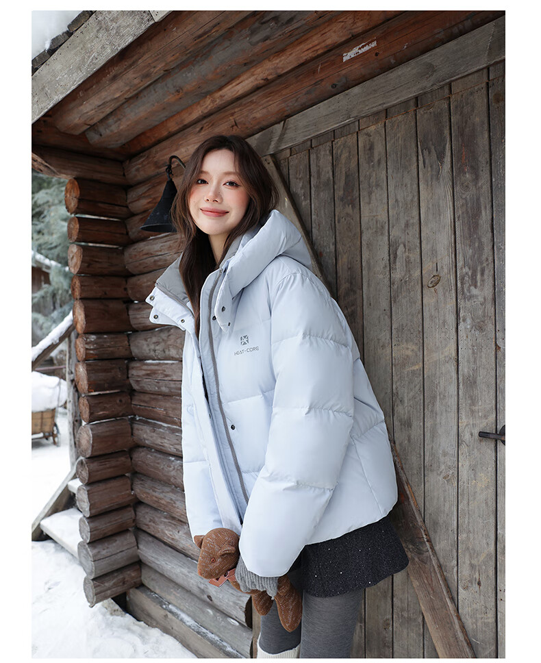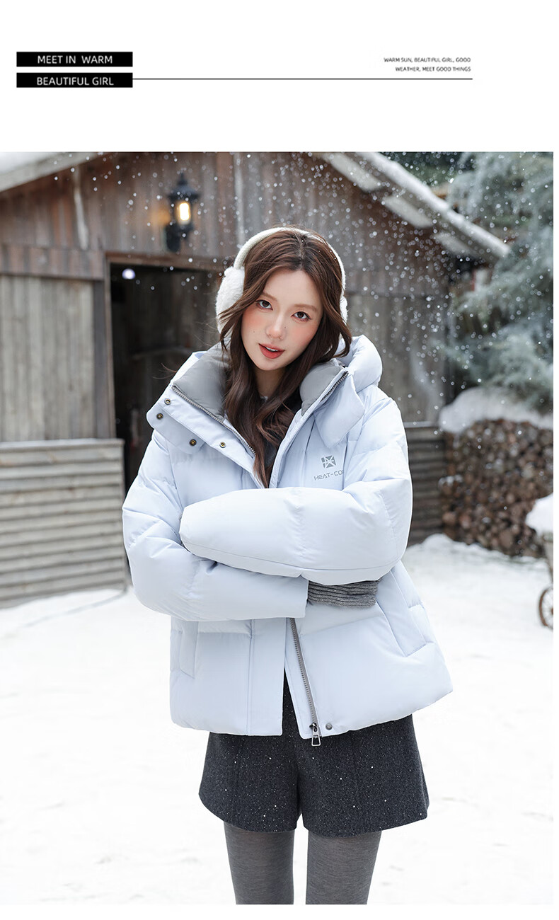 Yalu Short Down Jacket Women's 2025 New Winter Clothing Fashion Casual High-Level Color Hooded Warm Jacket Quiet Blue L Recommended 110Jin Jin is equal to 0.5kg -120Jin Jin is equal to 0.5kg