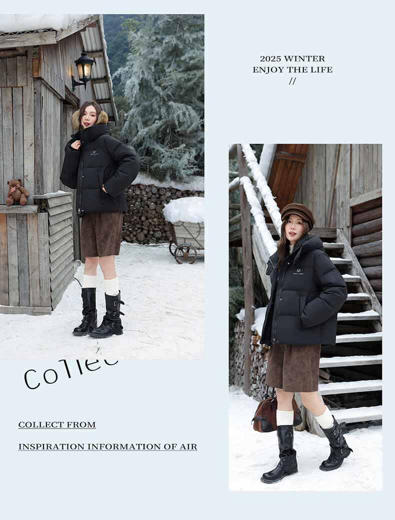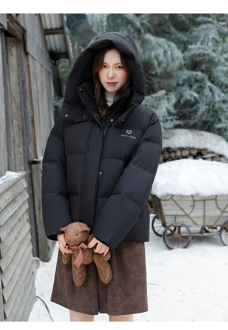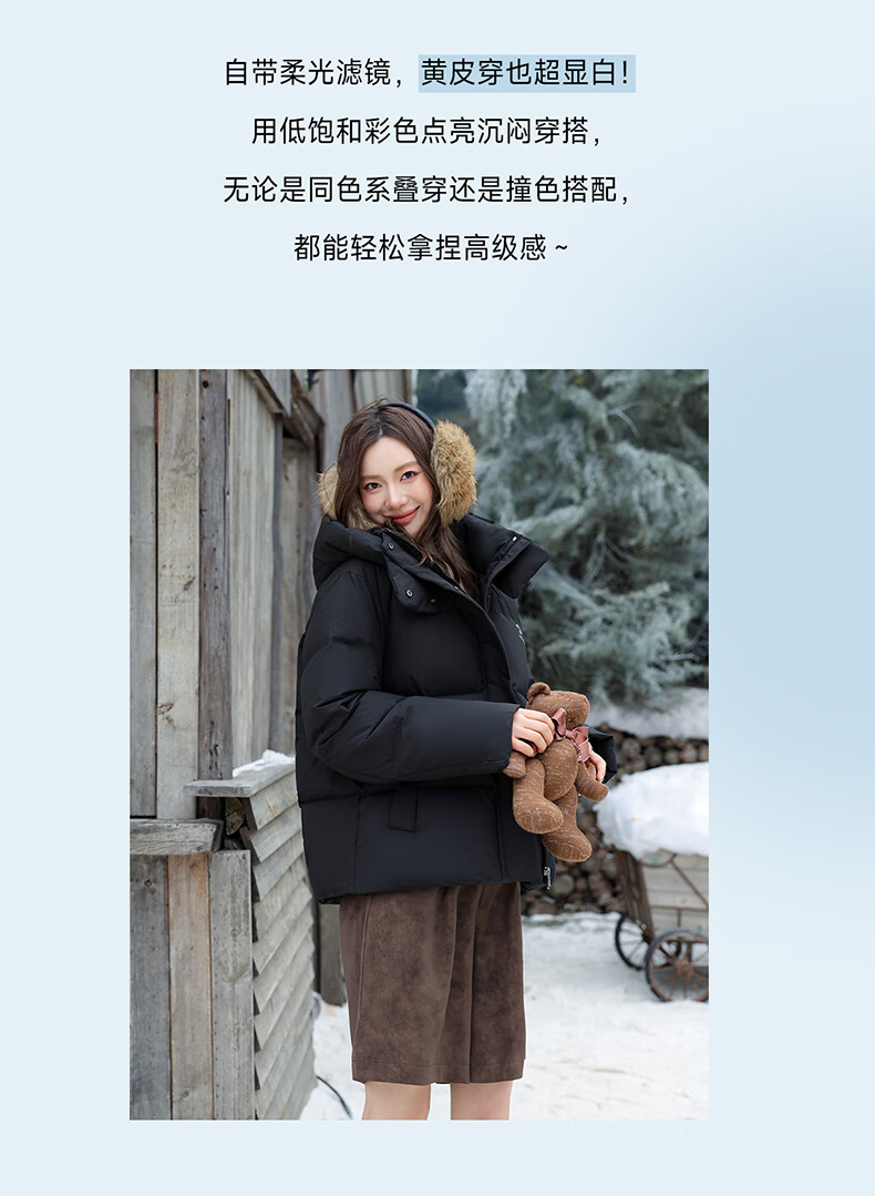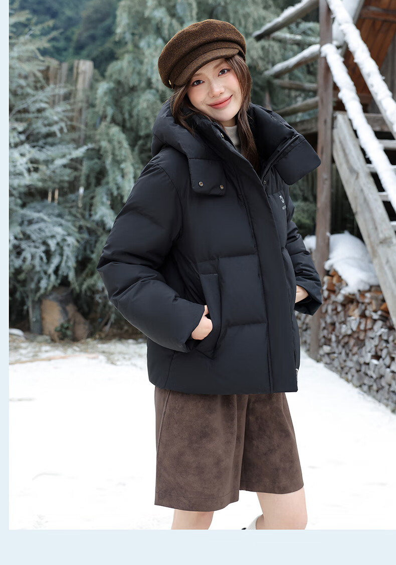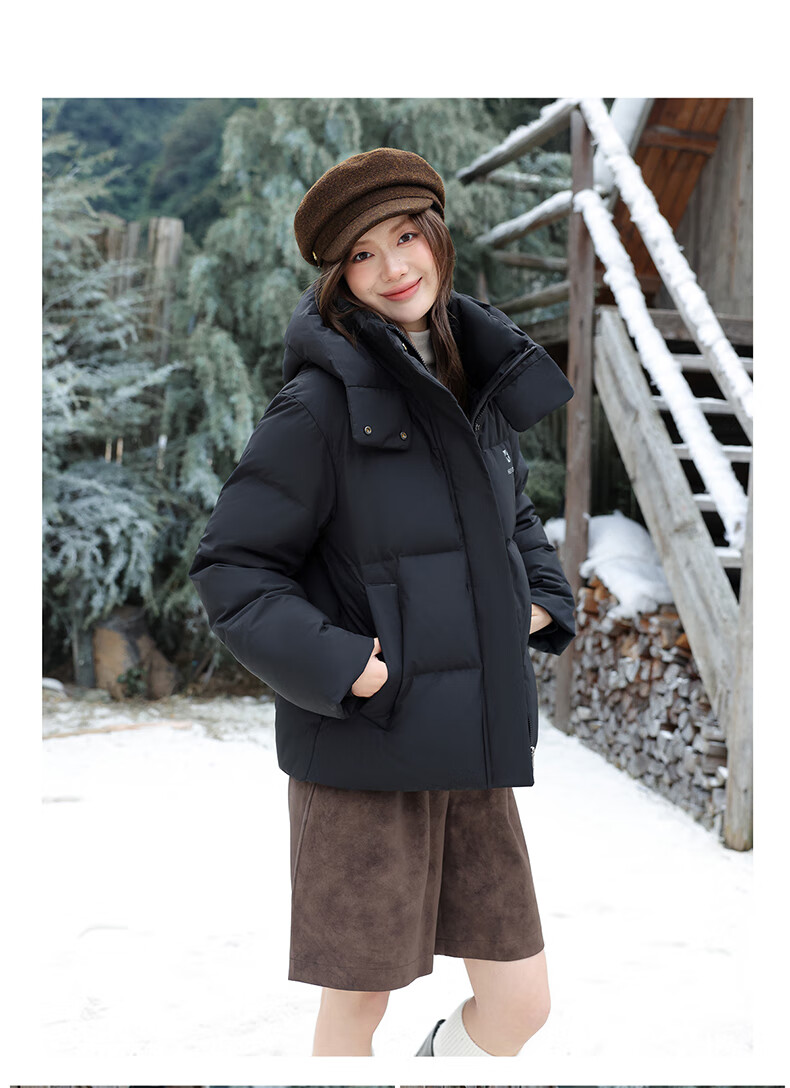 Yalu Short Down Jacket Women's 2025 New Winter Clothing Fashion Casual High-Level Color Hooded Warm Jacket Quiet Blue L Recommended 110Jin Jin is equal to 0.5kg -120Jin Jin is equal to 0.5kg