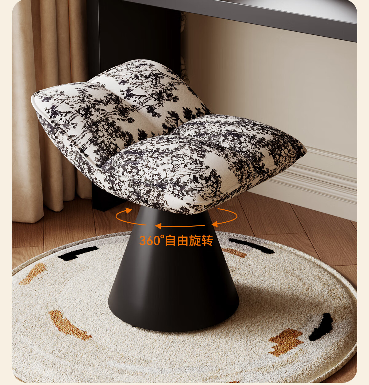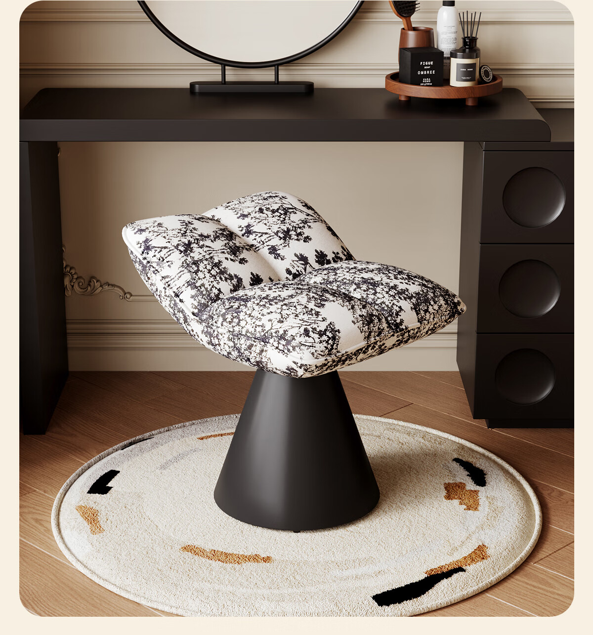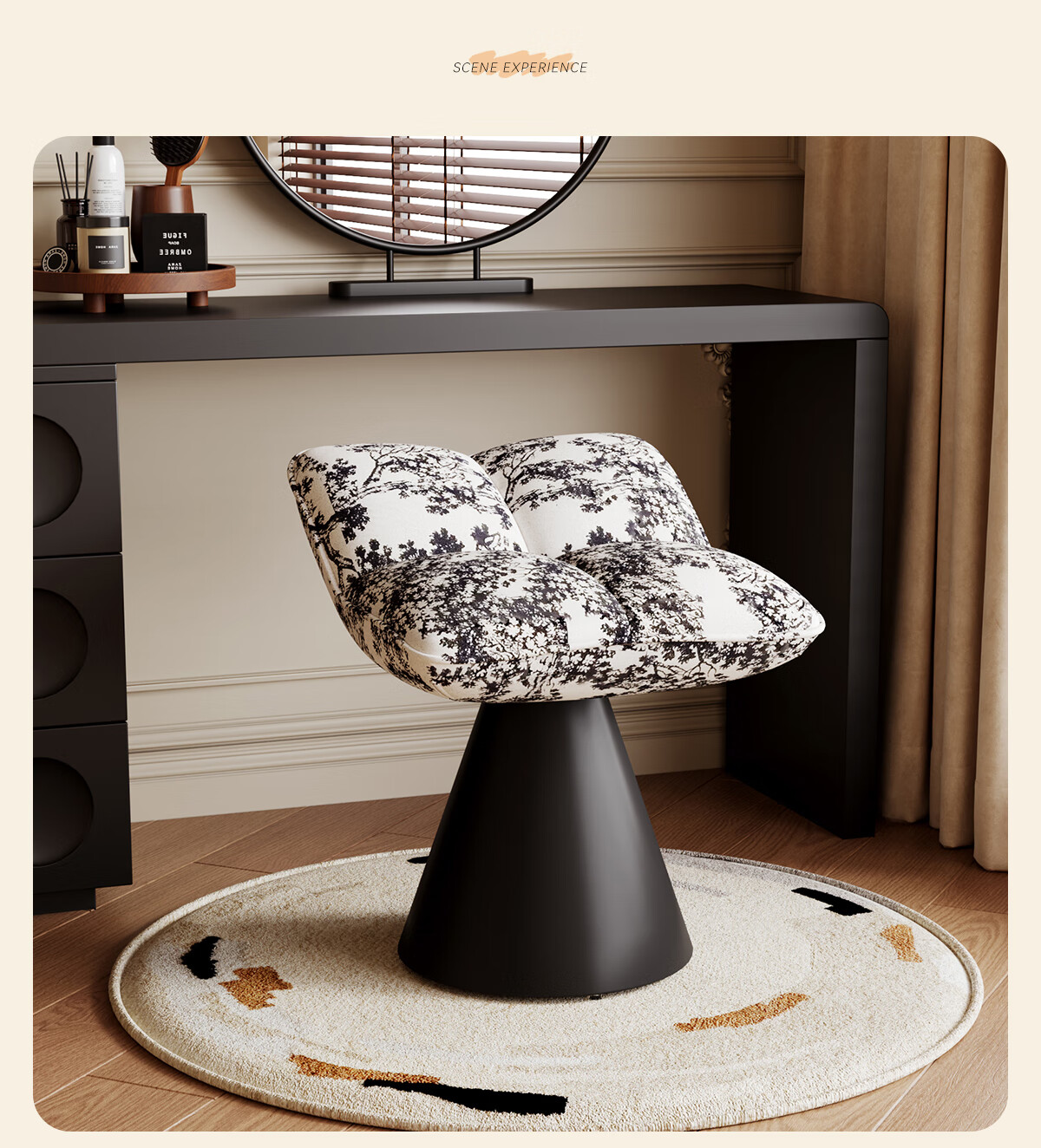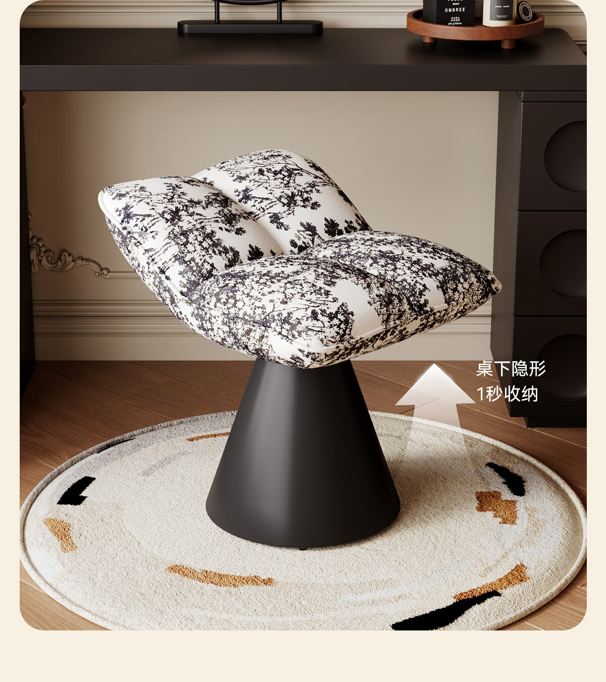 Zusai can rotate mid-century style makeup chair for girls' bedroom, light luxury and high-end nail art chair, internet celebrity creative dressing table stool, light luxury black, stable iron base/can be rotated 360 degrees