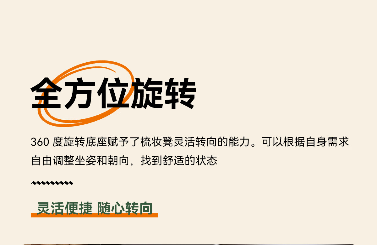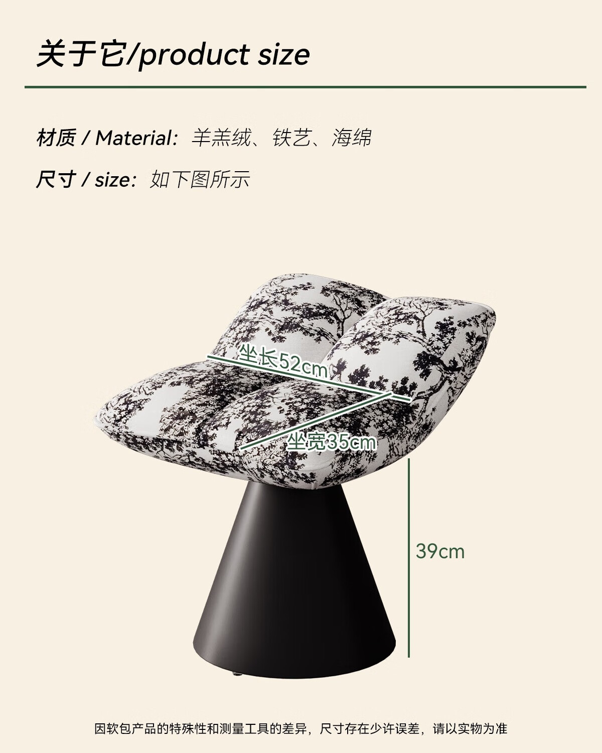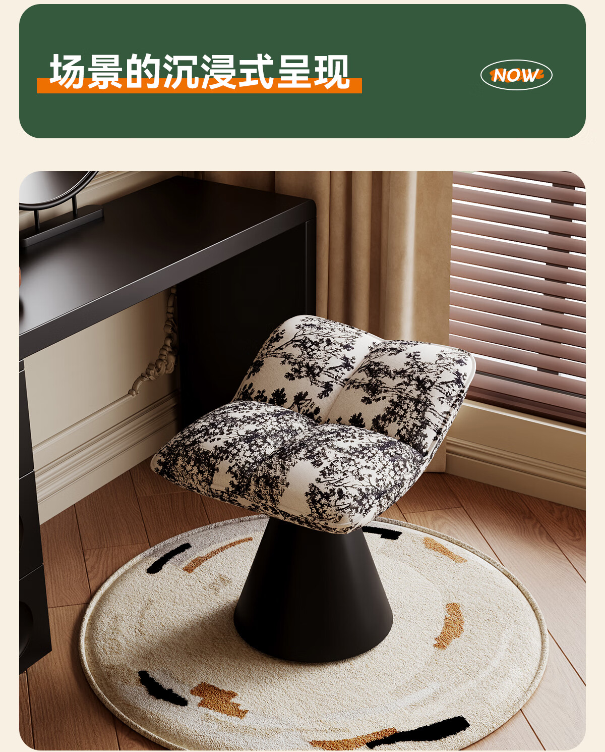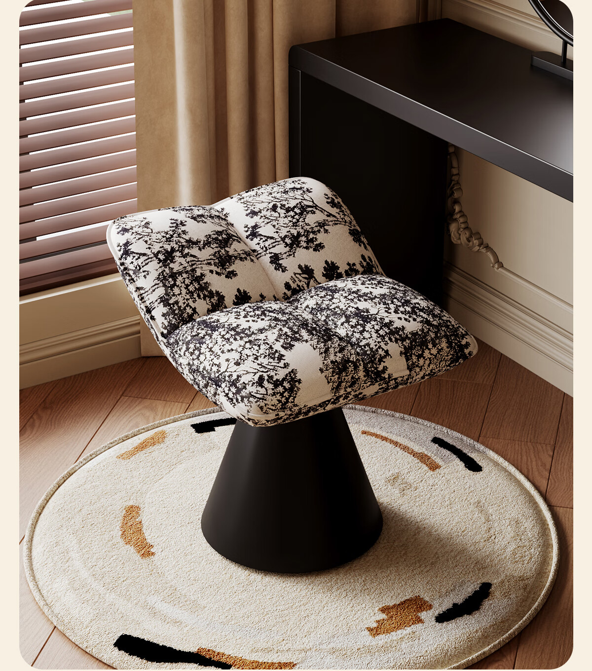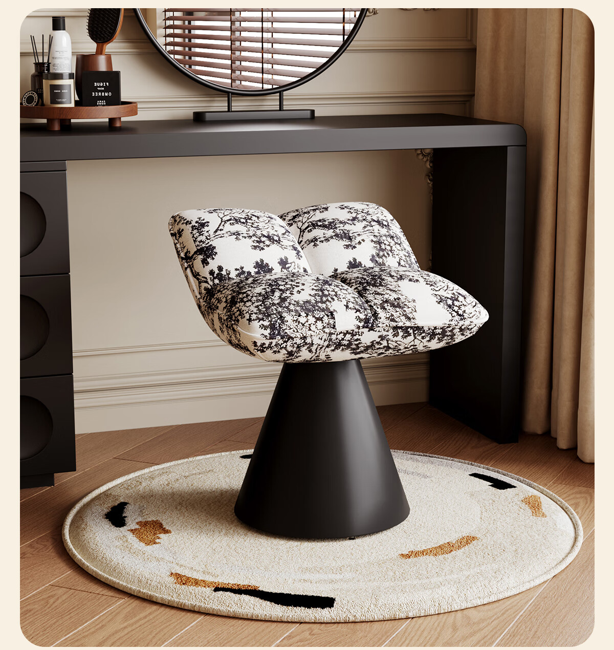 Zusai can rotate mid-century style makeup chair for girls' bedroom, light luxury and high-end nail art chair, internet celebrity creative dressing table stool, light luxury black, stable iron base/can be rotated 360 degrees