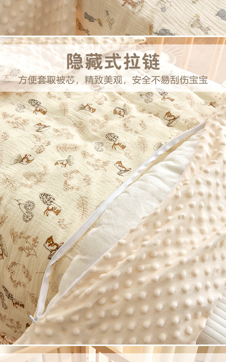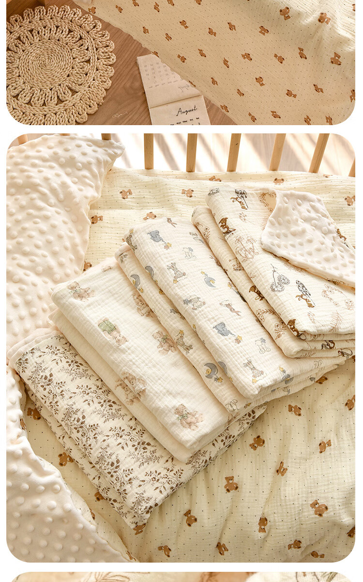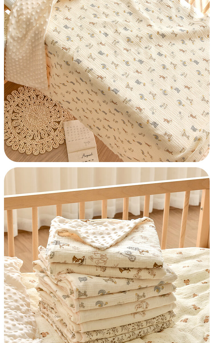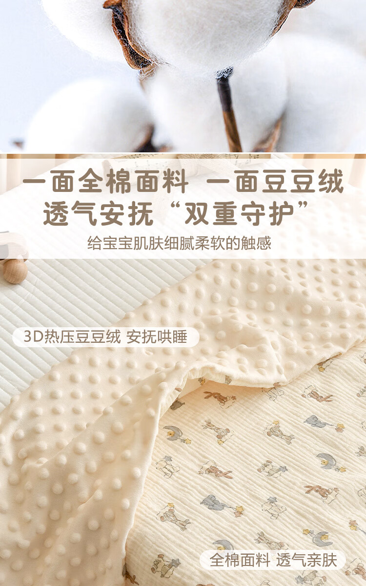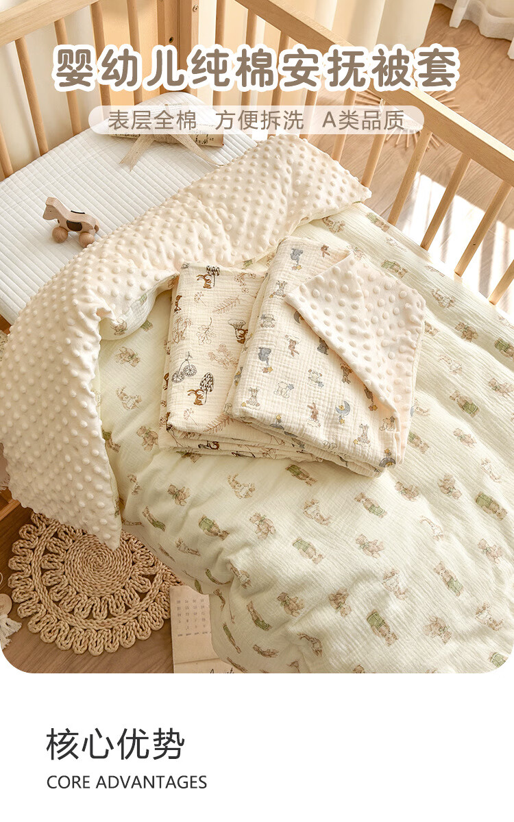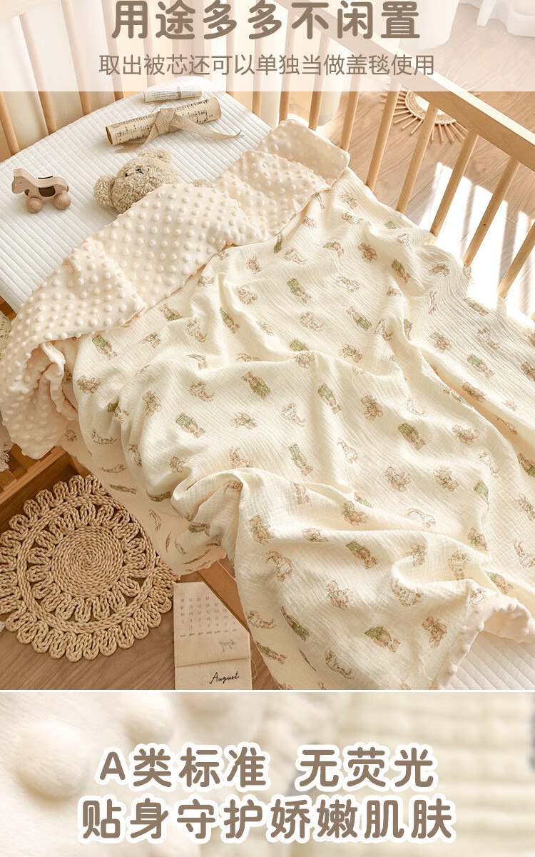 Newborn baby quilt, children's pure cotton quilt cover, kindergarten baby 1.2m1.5m changeable quilt cover, hibiscus + milk tea color, cotton gauze + bean velvet 100cm*120cm
