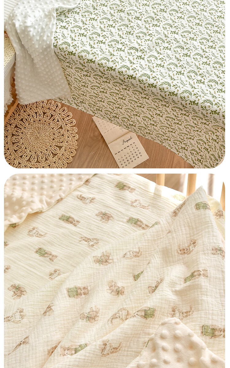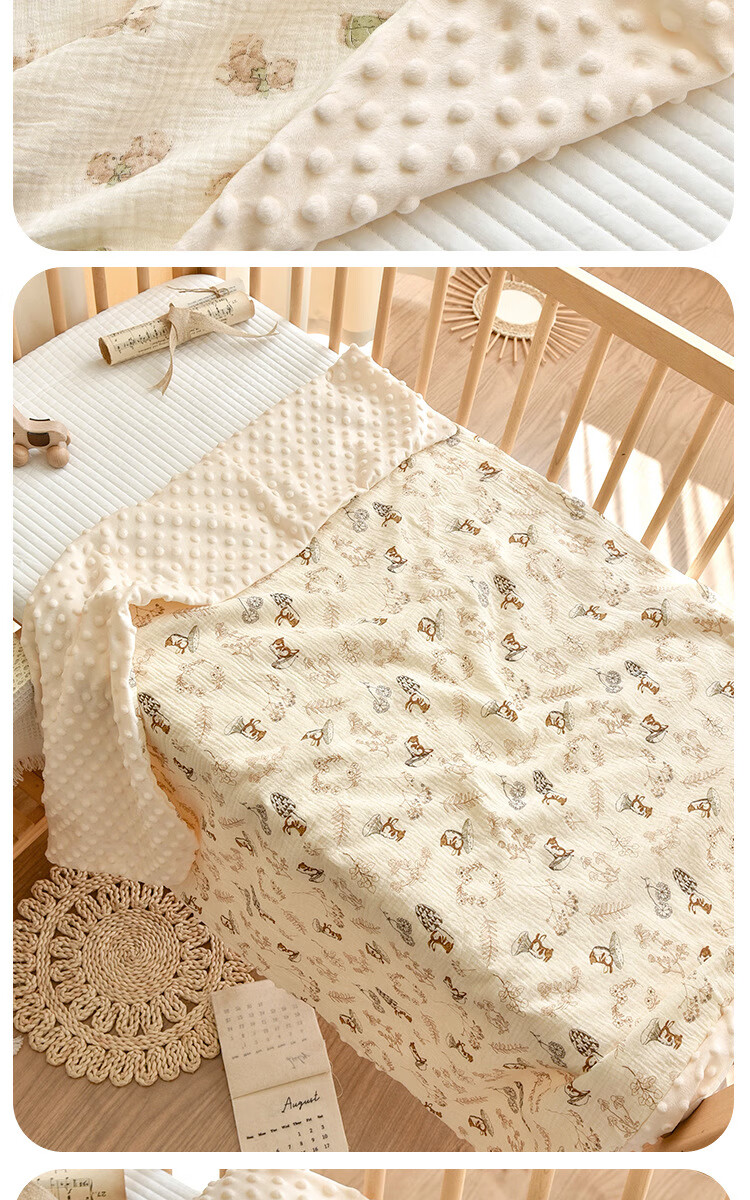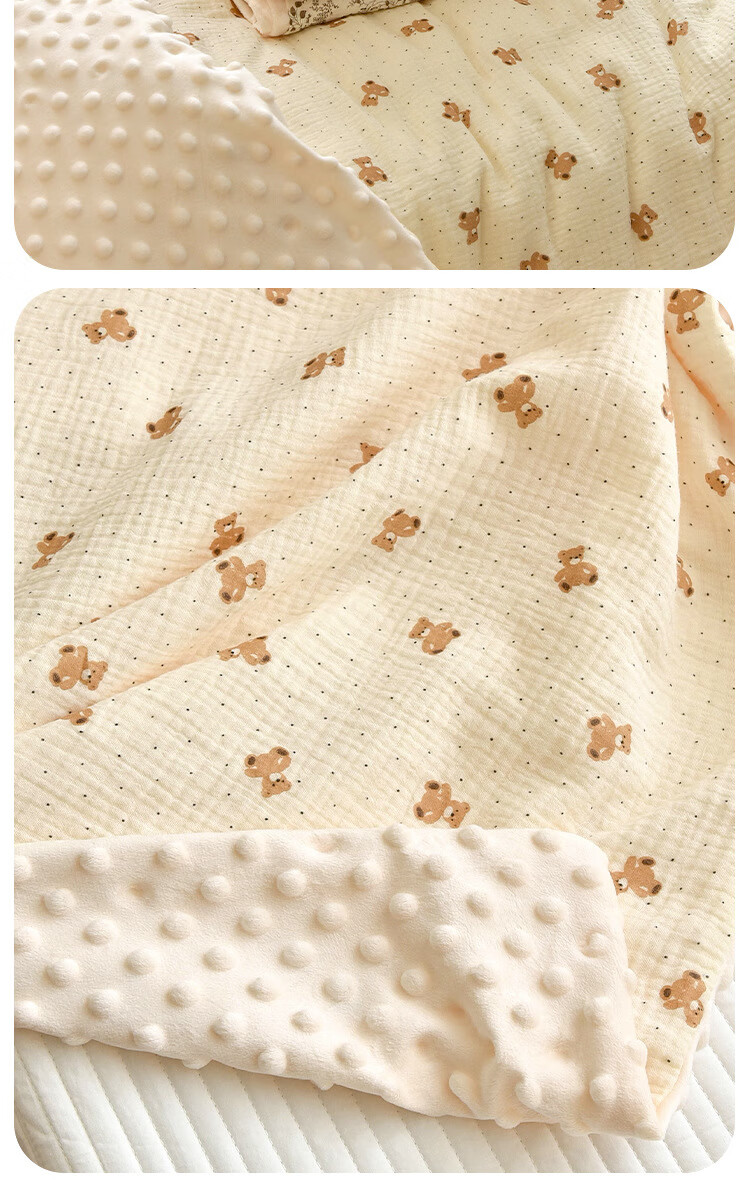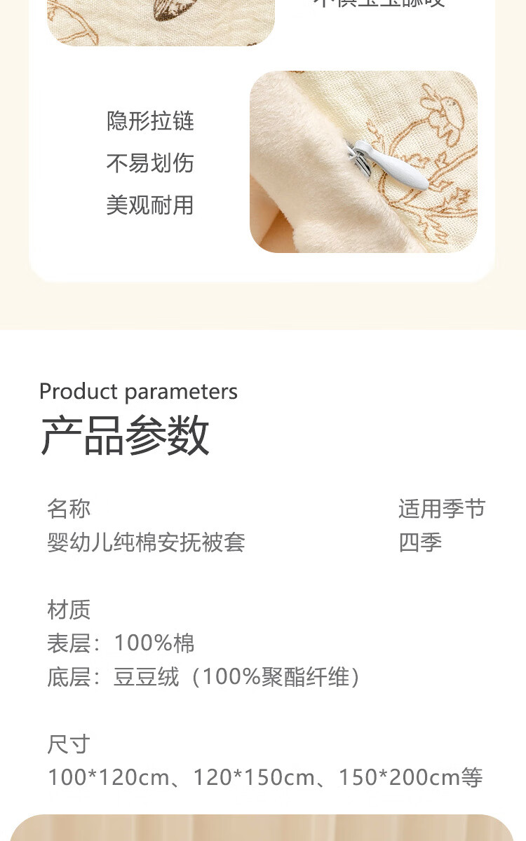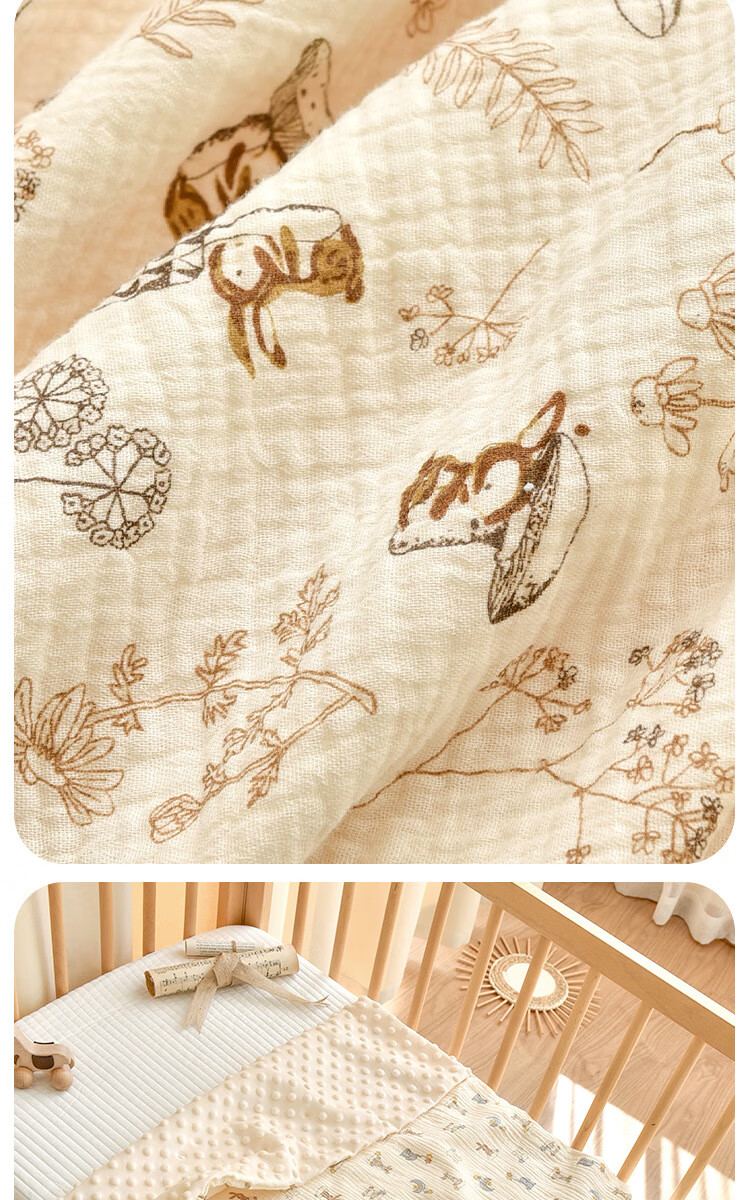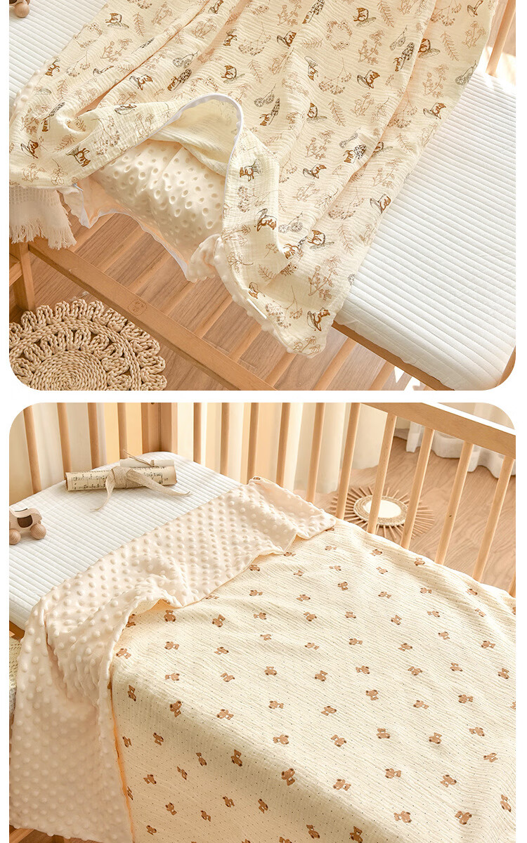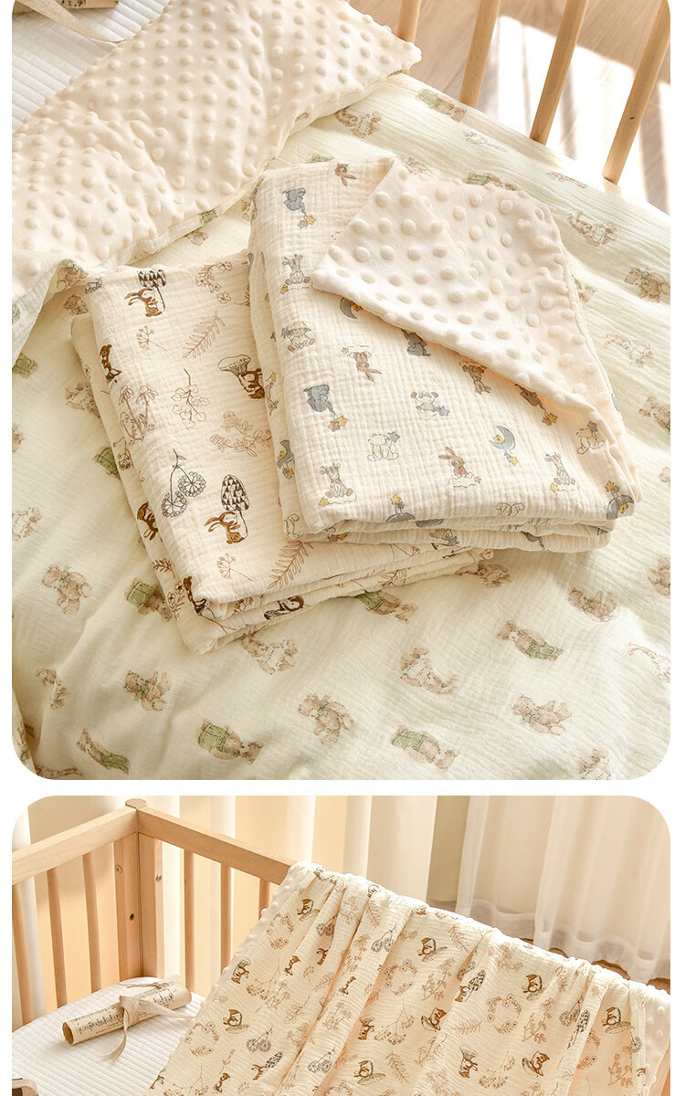 Newborn baby quilt, children's pure cotton quilt cover, kindergarten baby 1.2m1.5m changeable quilt cover, hibiscus + milk tea color, cotton gauze + bean velvet 100cm*120cm