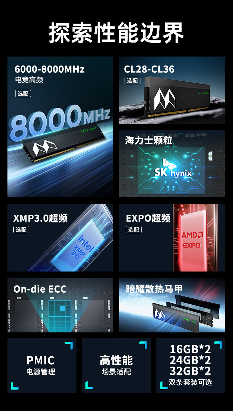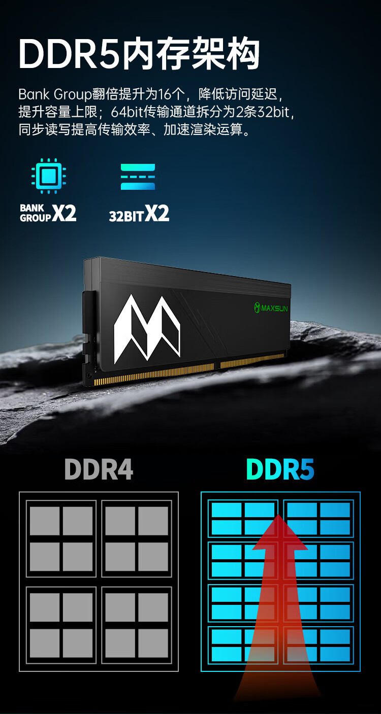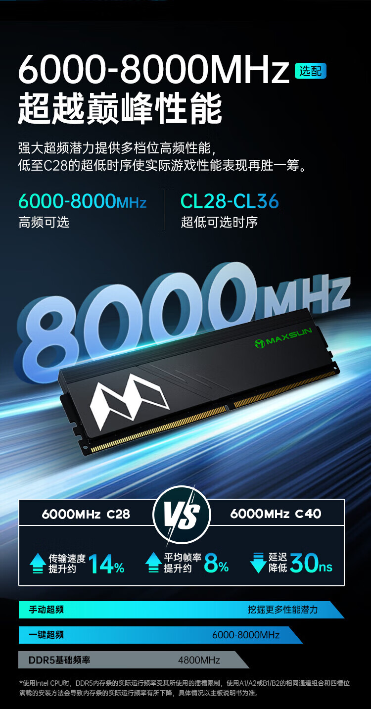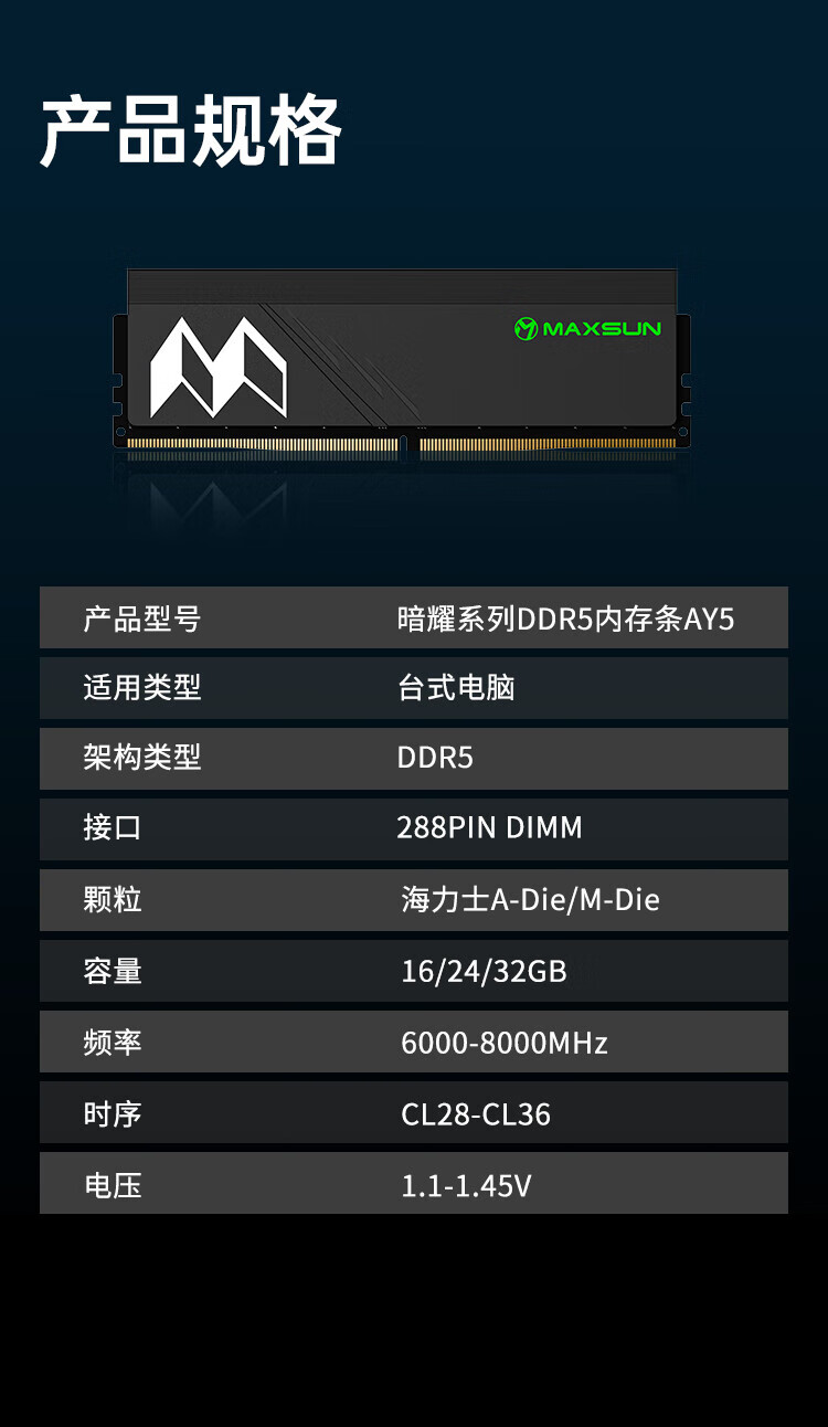MAXSUN DDR5 memory 6000MHZ 32GB (16GBX2) set Desktop memory expansion and overclocking Hynix particle cooling vest 6000 Hynix A-die C30 double-sided 32GB 2 sets 16G*2