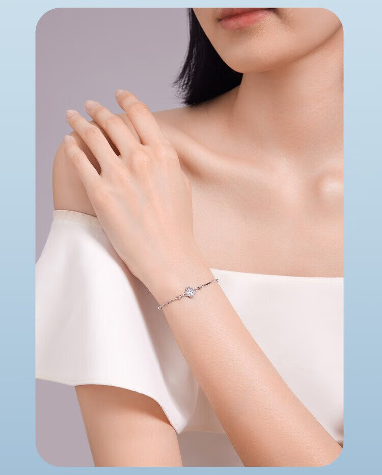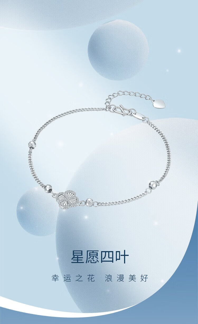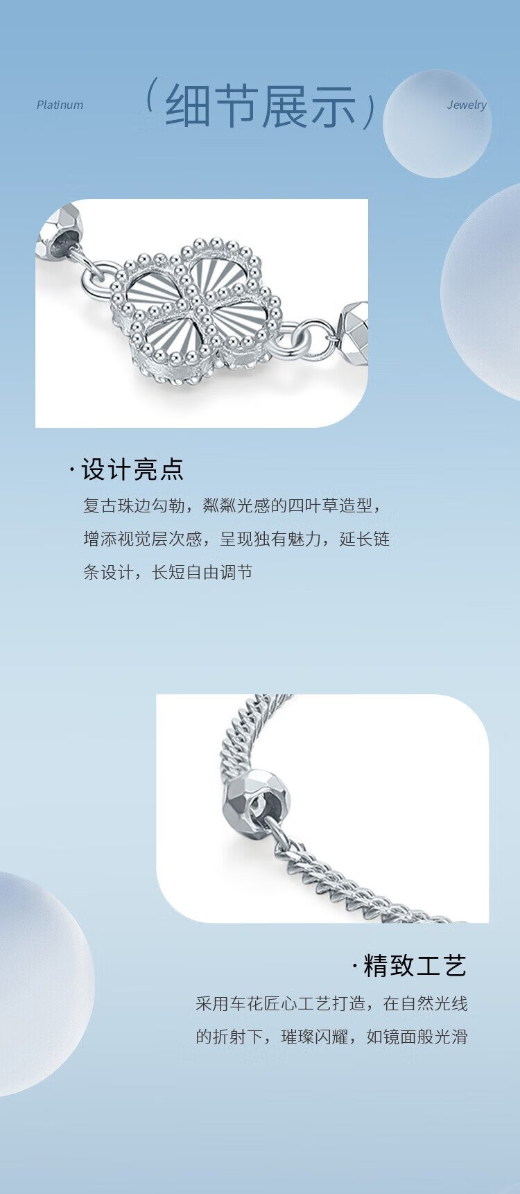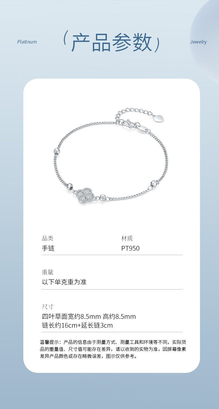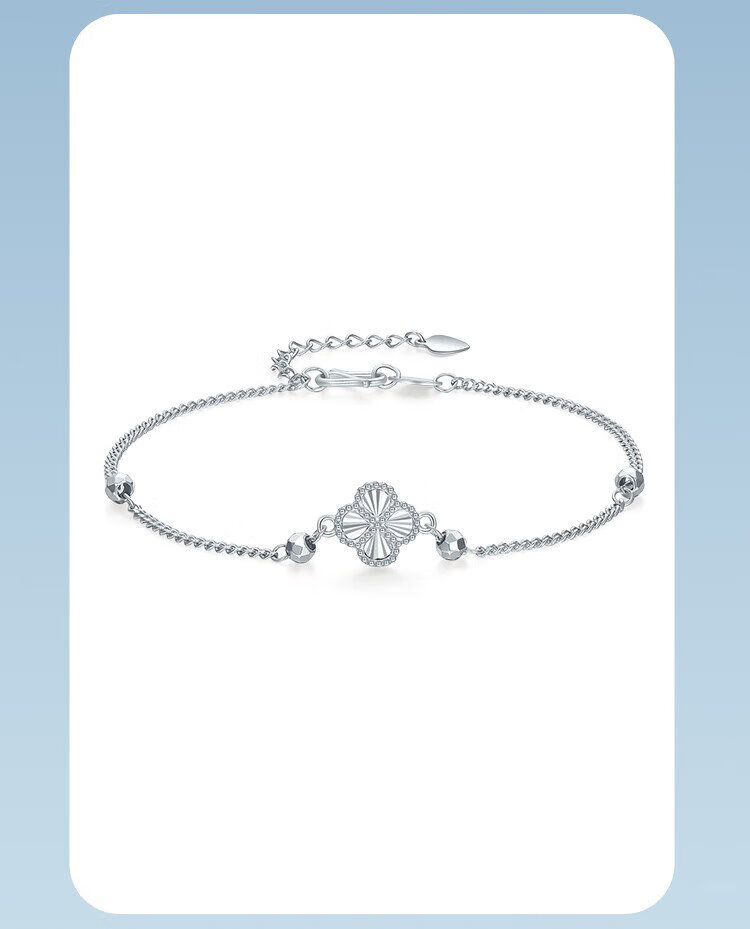 Liuguifu Jewelry Platinum Fashionable Four-leaf Clover Bracelet pt950 Simple and Versatile Temperament Clover Bundy Bracelet Gift Star Wish Four-leaf 3.60g