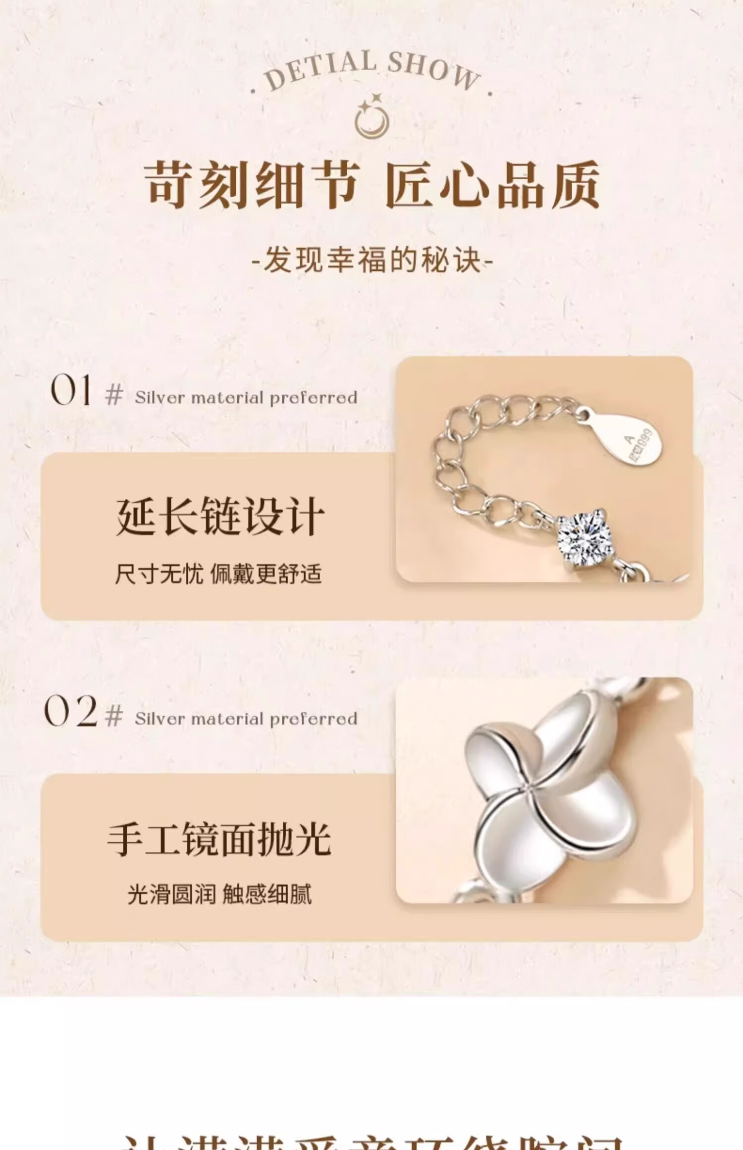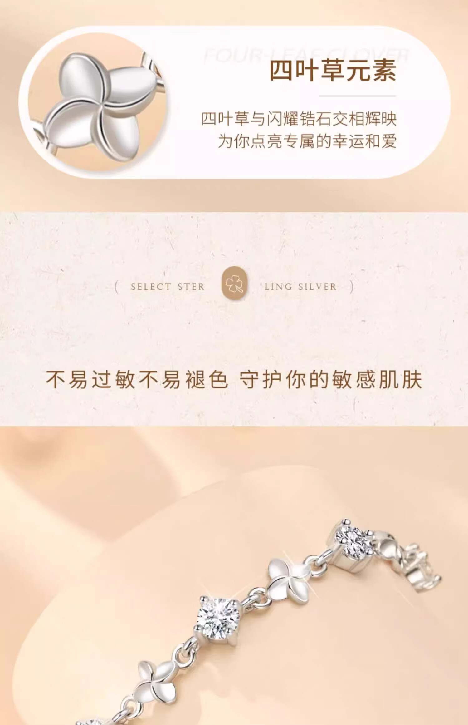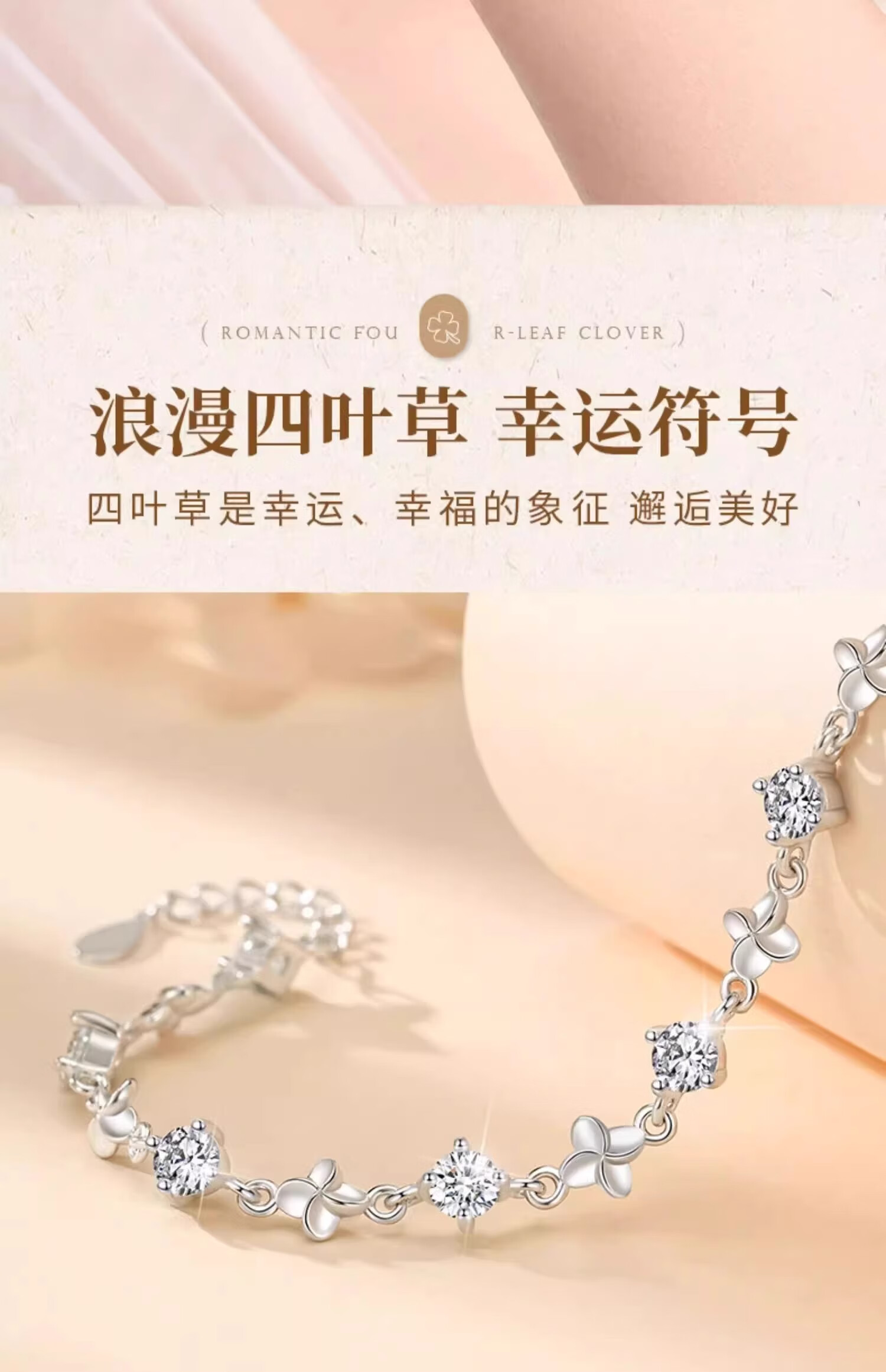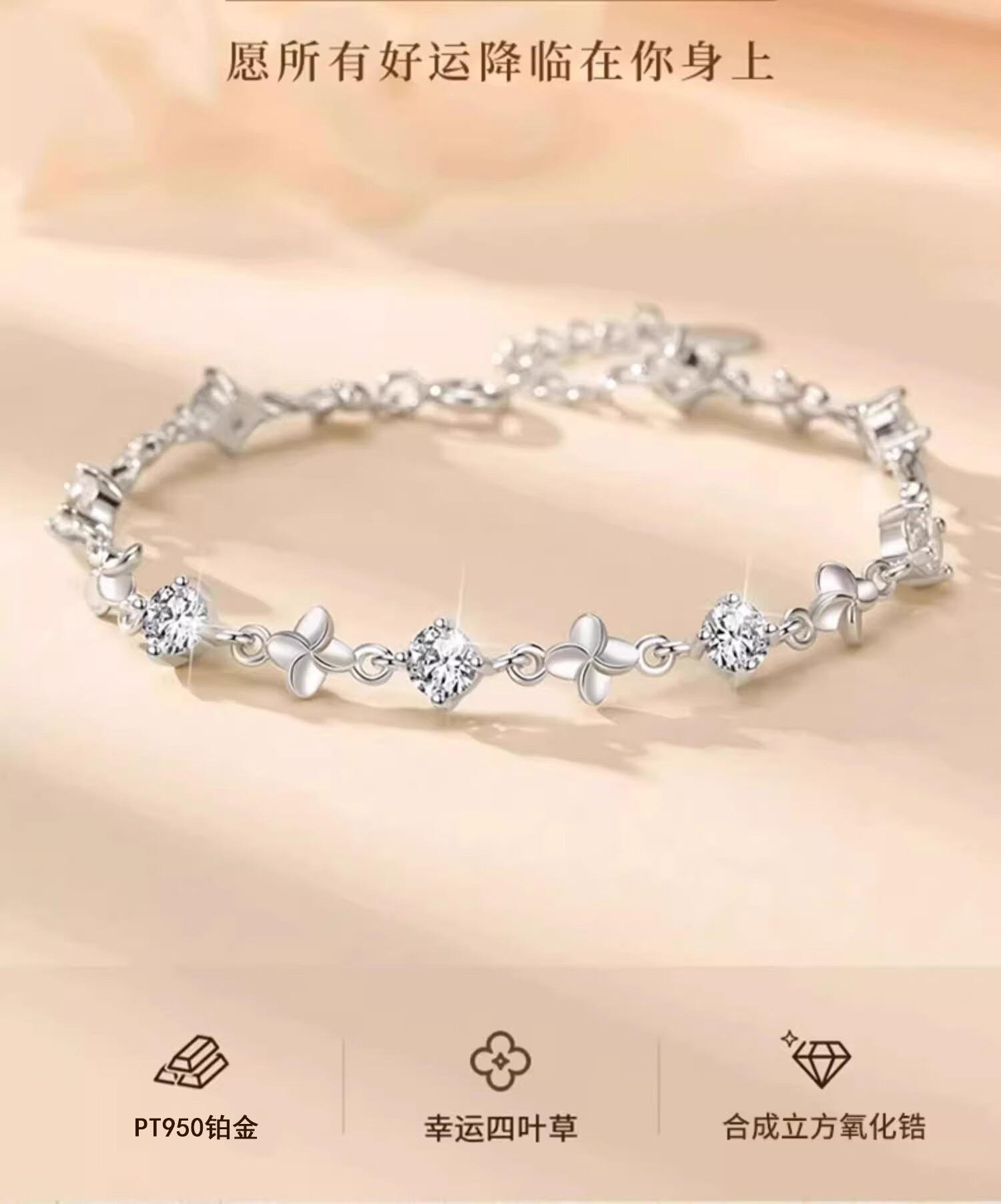 MZMZ Lucky Four Leaf Clover Platinum Bracelet for Women PT950 Platinum Bracelet Bracelet Jewelry Valentine's Day Birthday Gift for Girlfriend Same Day Delivery - Light Luxury Bracelet Pure White