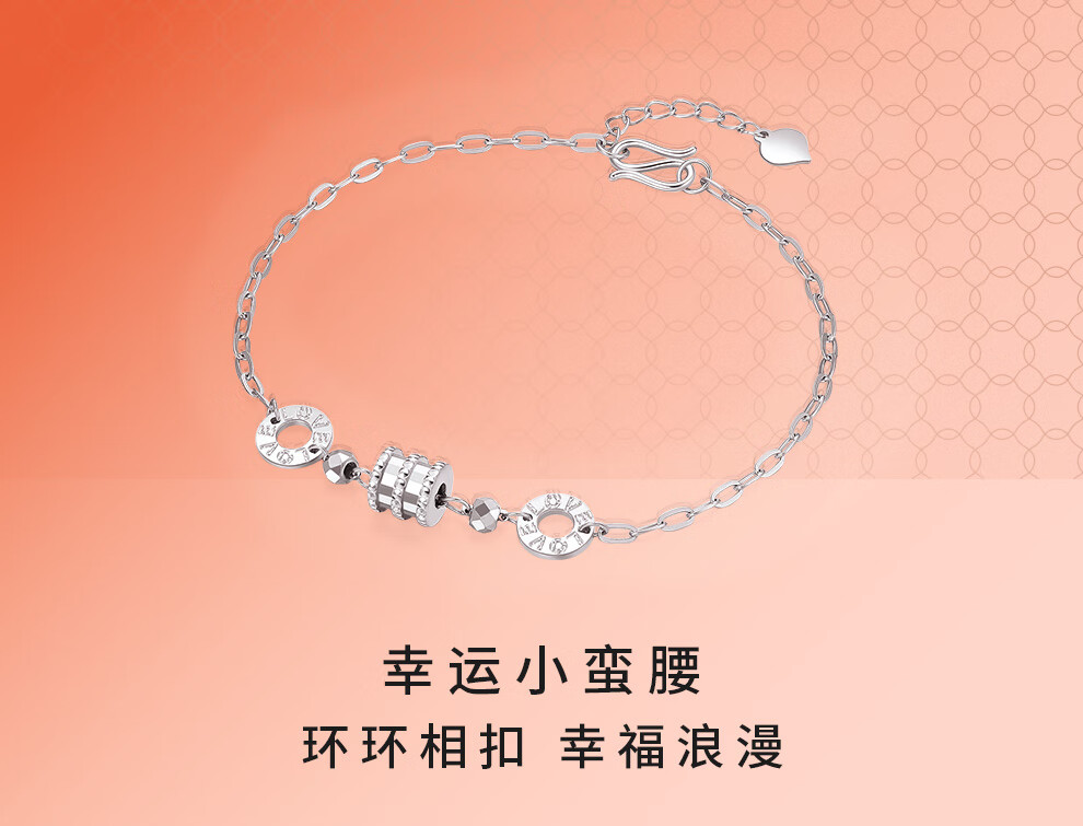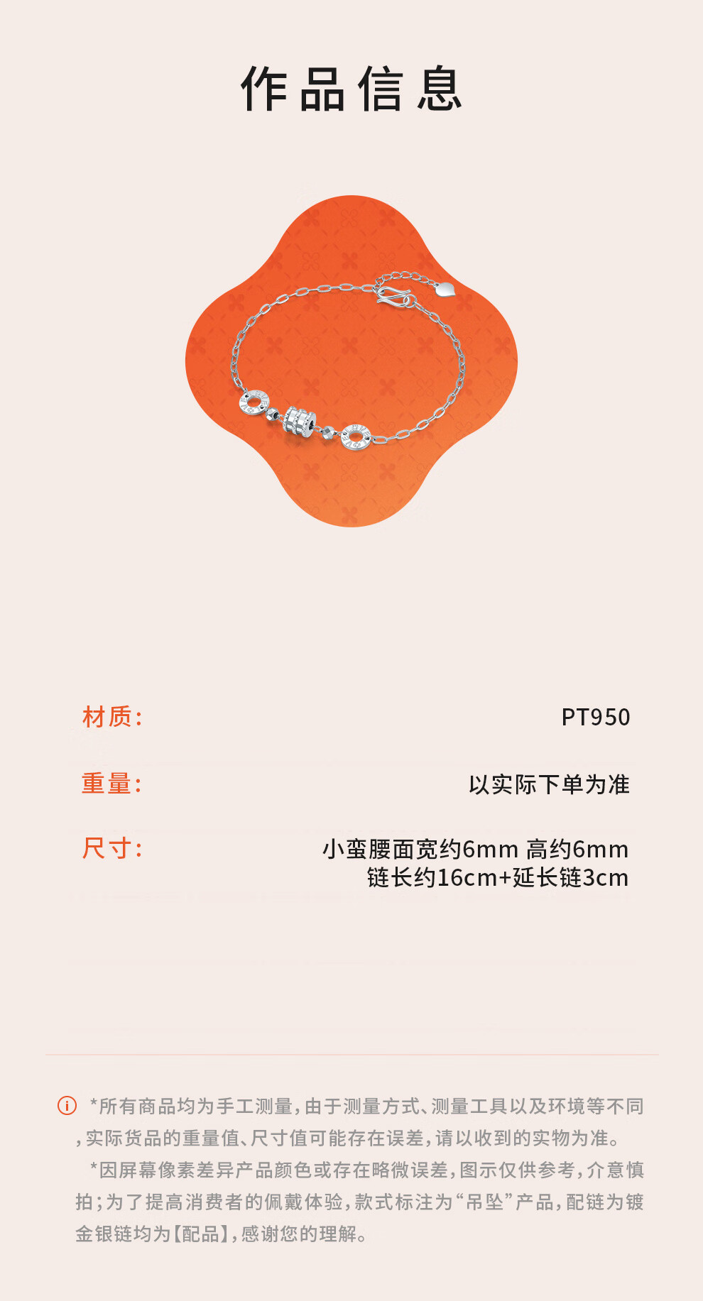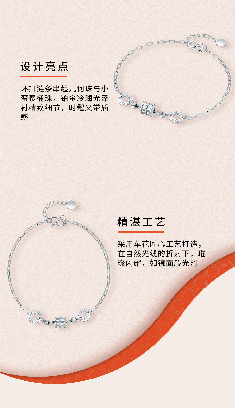 Liuguifu Jewelry Platinum pt950 Lucky Small Waist Versatile Bracelet LOVE Interlocking Fashionable and Elegant Bracelet Send Gift Lucky Small Waist 3.55g