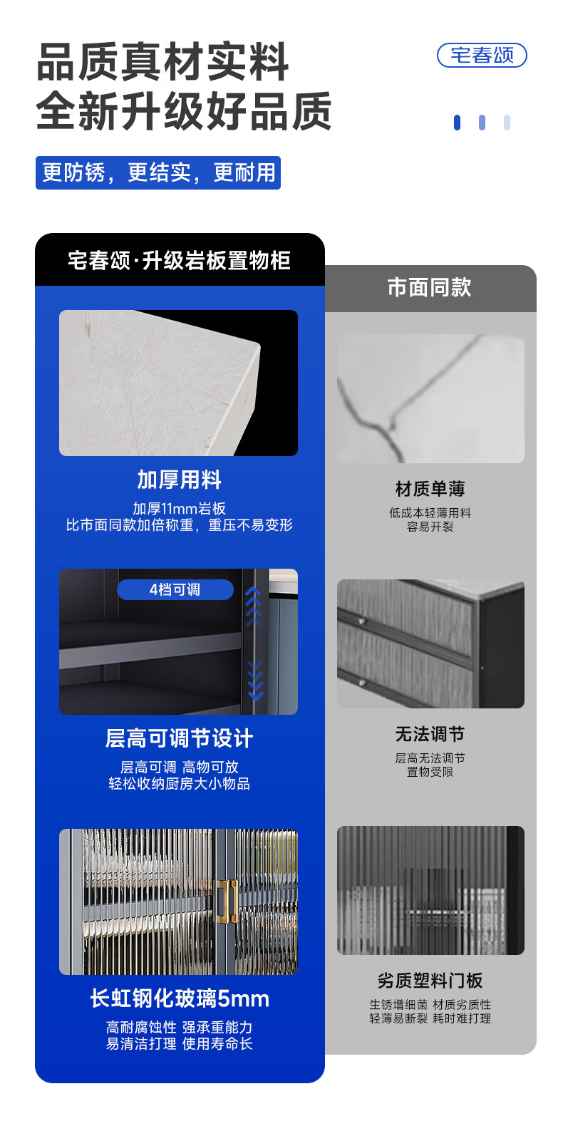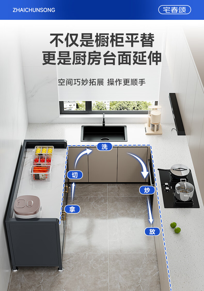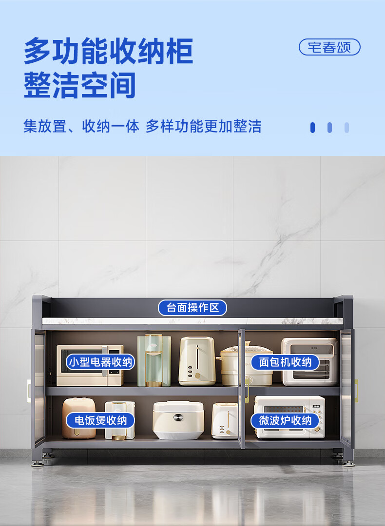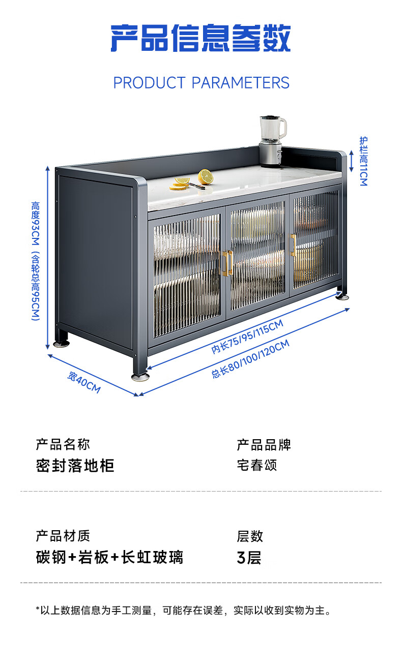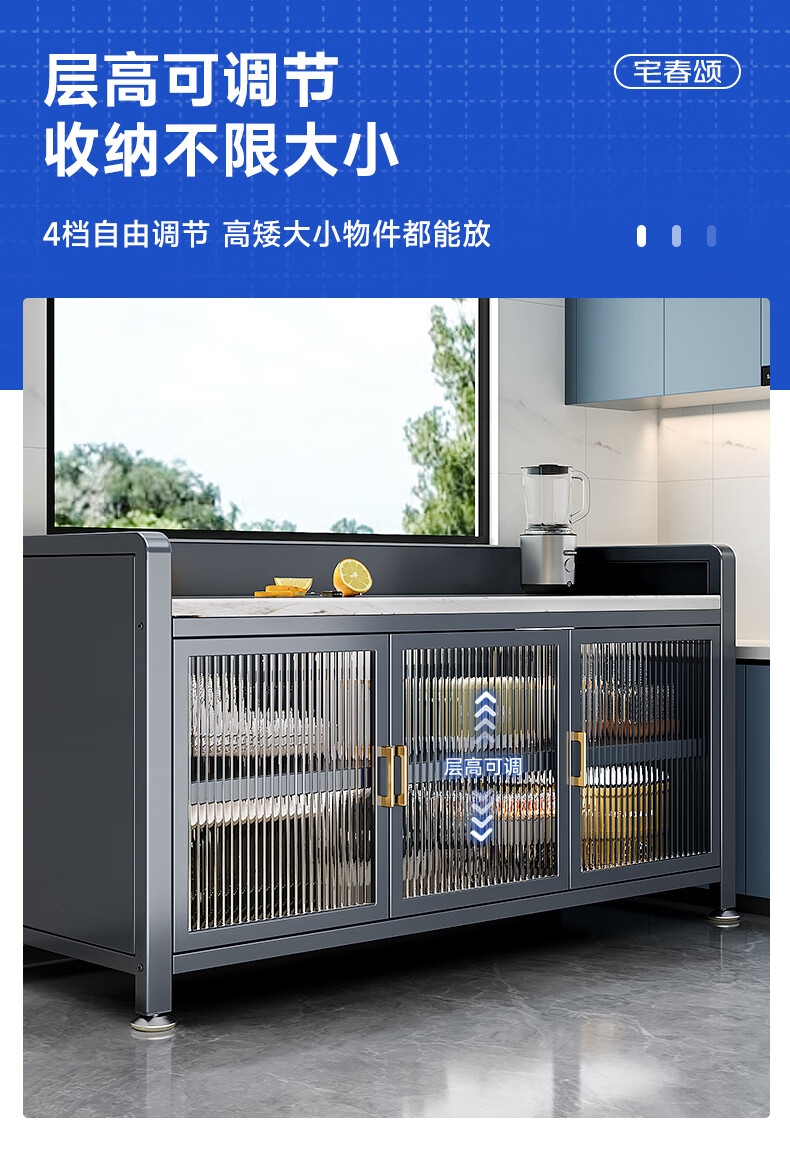 Zhaichunsong slate sideboard kitchen shelf floor-standing cabinet multi-layer wall-mounted integrated storage multi-functional storage cabinet slate countertop 120*40*95 gray | adjustable floor height