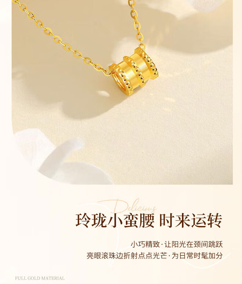 Lao Fengxiang 18K gold small waist pendant for women, fashionable and versatile necklace jewelry, Valentine's Day birthday gift for girlfriend and wife 18K gold small waist pendant, about 0.1g