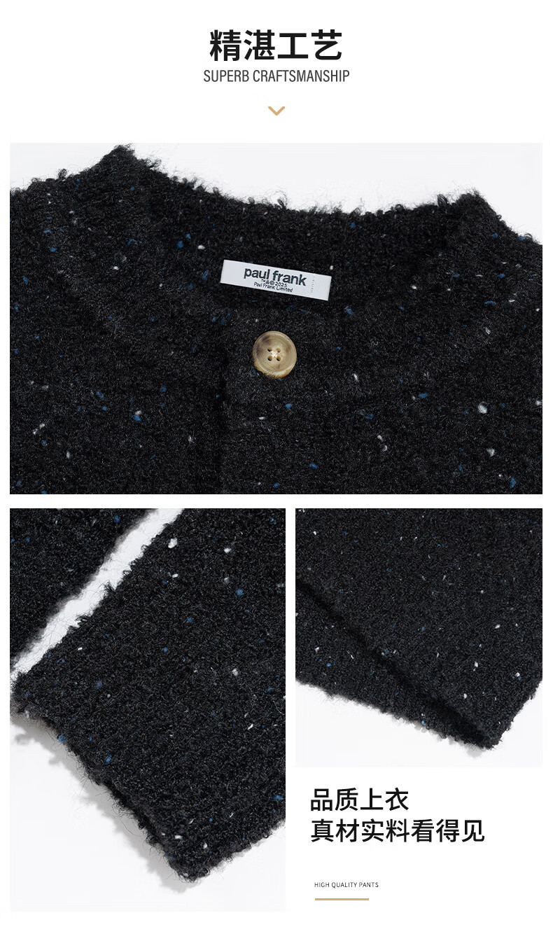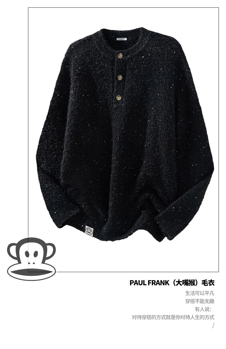 Big Mouth Monkey (paul frank) Japanese simple sweater men's 2025 autumn new loose lazy circle yarn Henry collar knitted cardigan top black autumn new product L recommended 120-140Jin Jin equals 0.5 kg