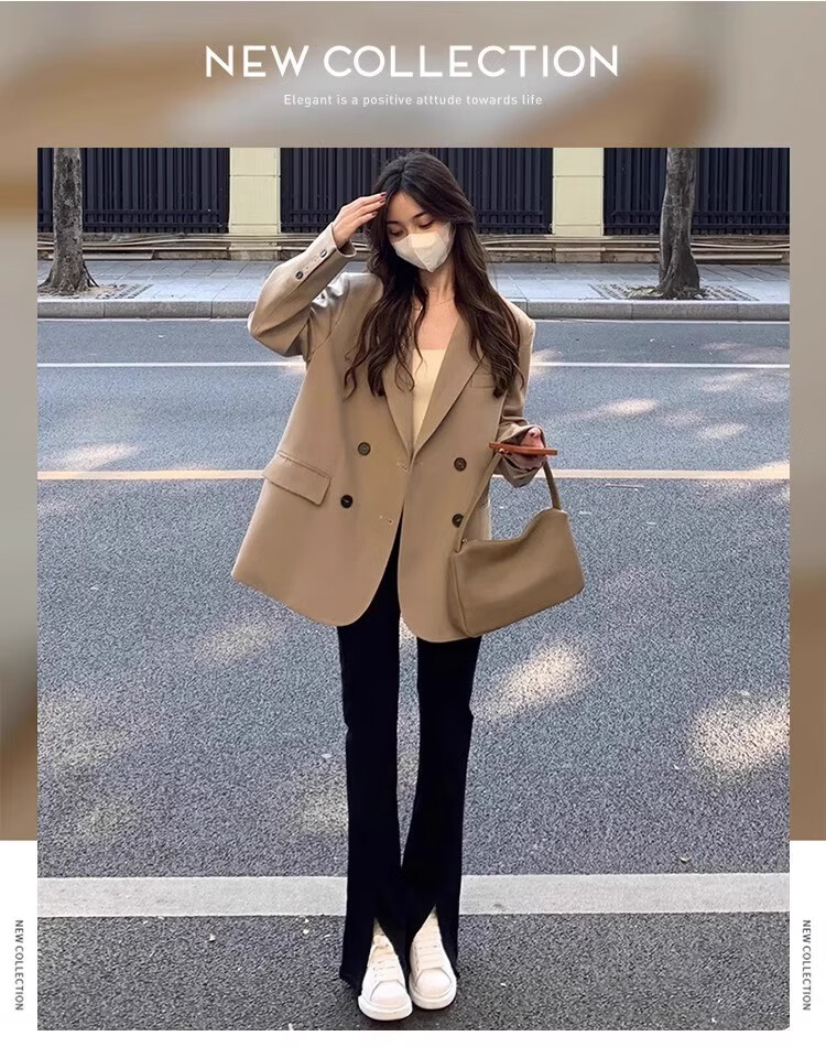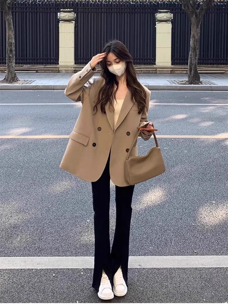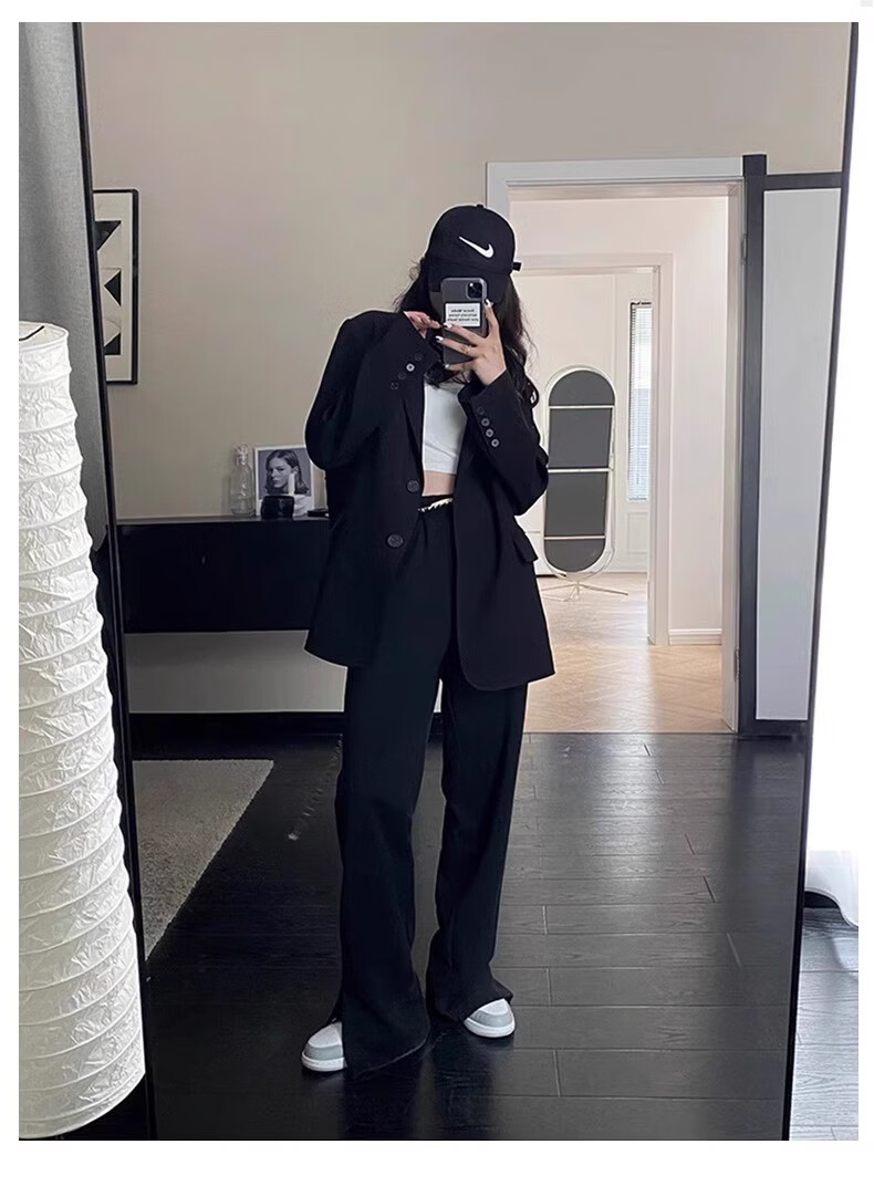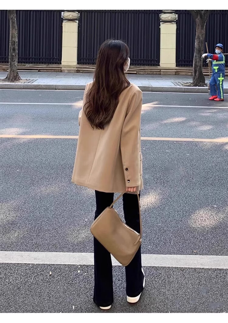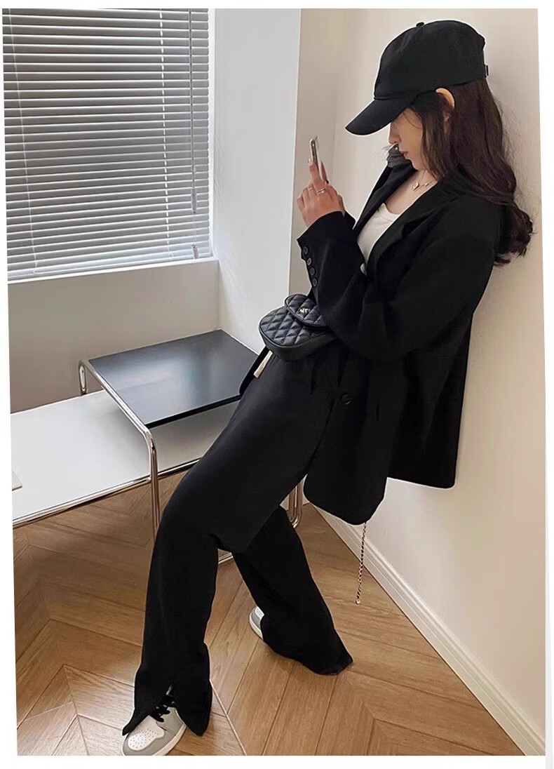 CEENIU small suit jacket women's 2025 spring and autumn new style small high-end street-friendly loose Korean casual suit black L