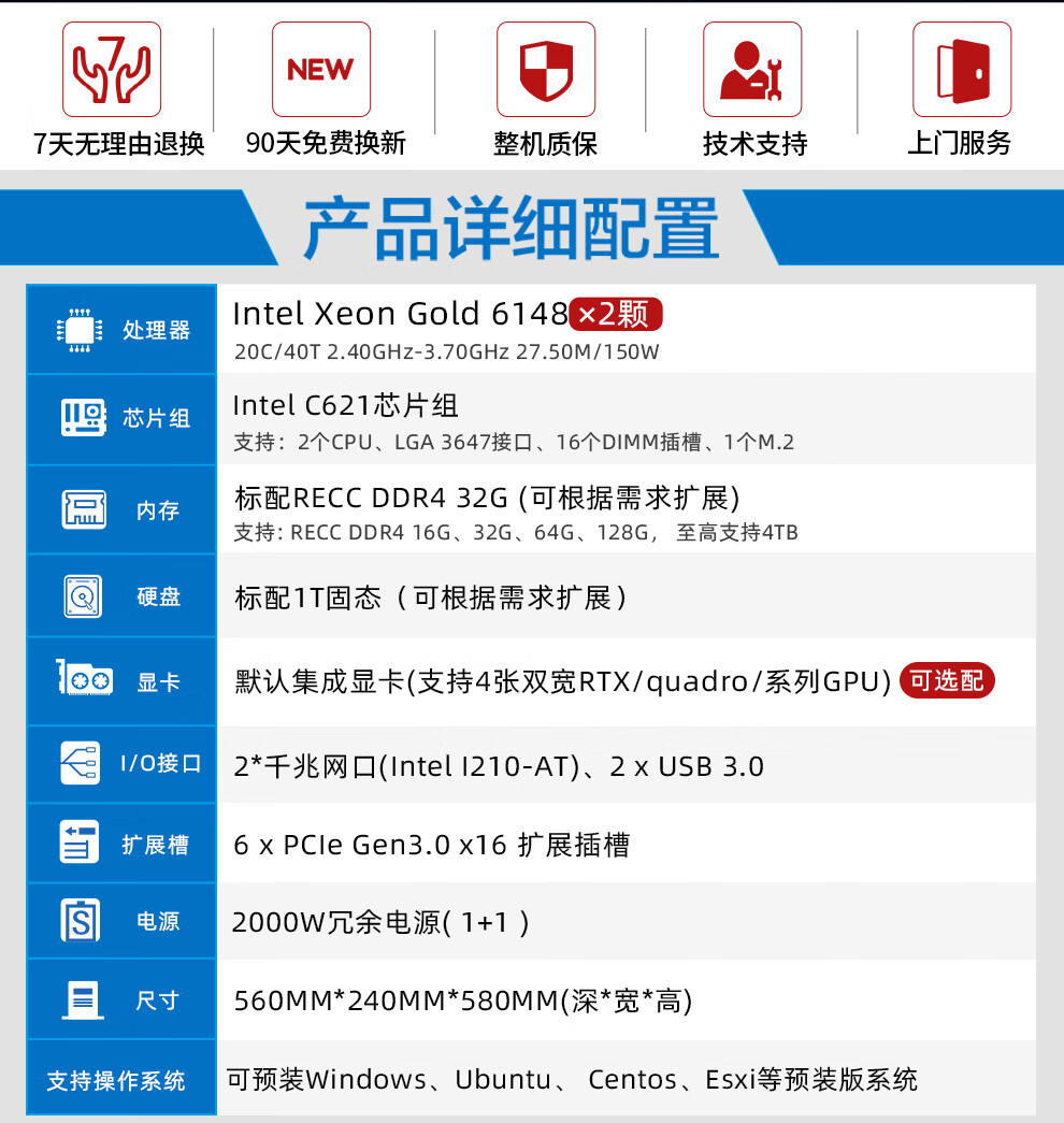 Park Sai Intel Xeon Gold Medal 6148 Quad RTX4090 Graphics GPU Server Artificial Intelligence Simulation Tower Deep Learning Host Customized 285K/96G*2/4090 24G Three Winds 32G Memory + 1TB Solid State