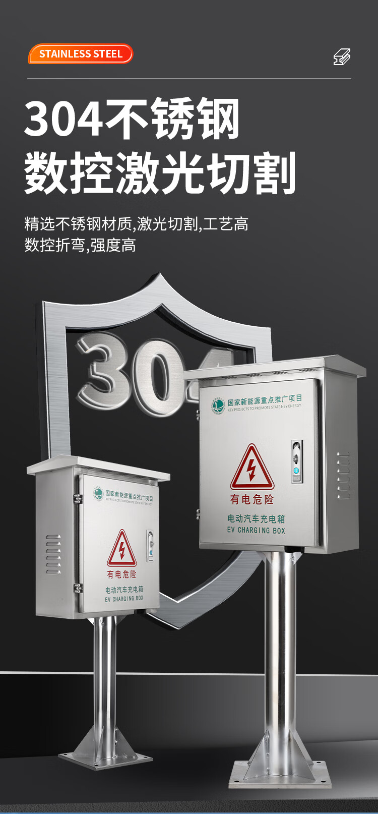 304 stainless steel column charging box rainproof new energy electric vehicle charging pile protection box distribution box outdoor Specifications height 500 width 400 depth 200 column height 300