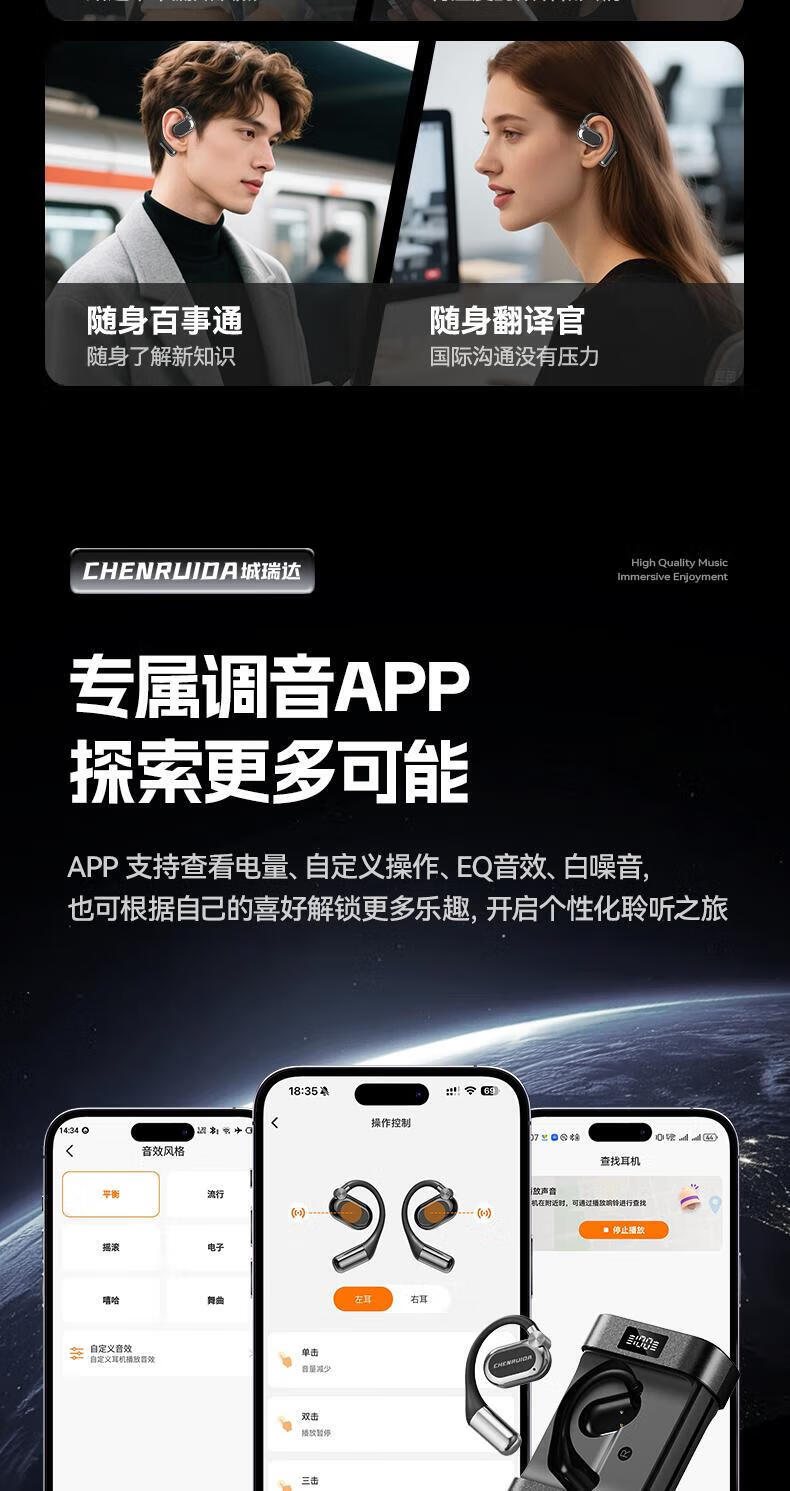 Cheng Ruida can charge mobile phones, the latest Bluetooth headset in 2025, M116 wireless Bluetooth headset, open type, multi-functional, sports, noise reduction, ultra-long battery life, M116 black, long battery life + cinema shock surround sound