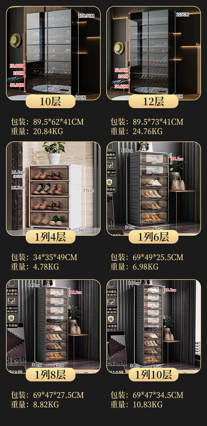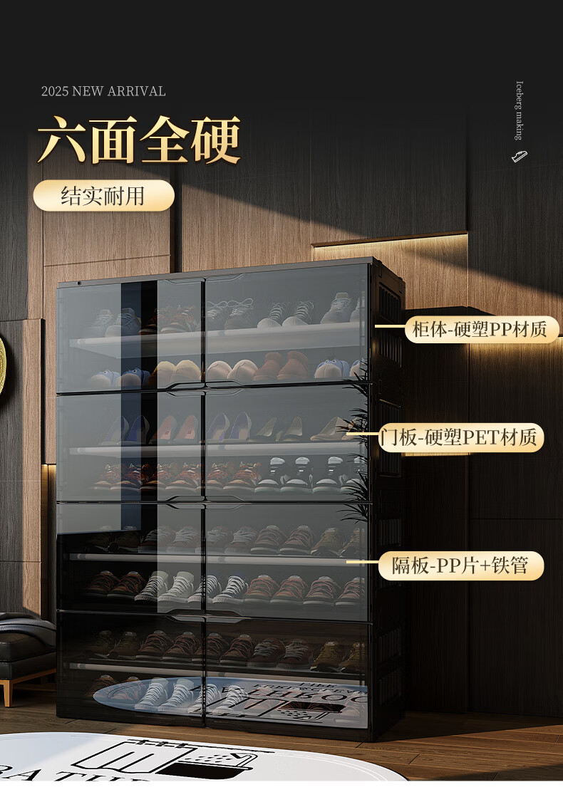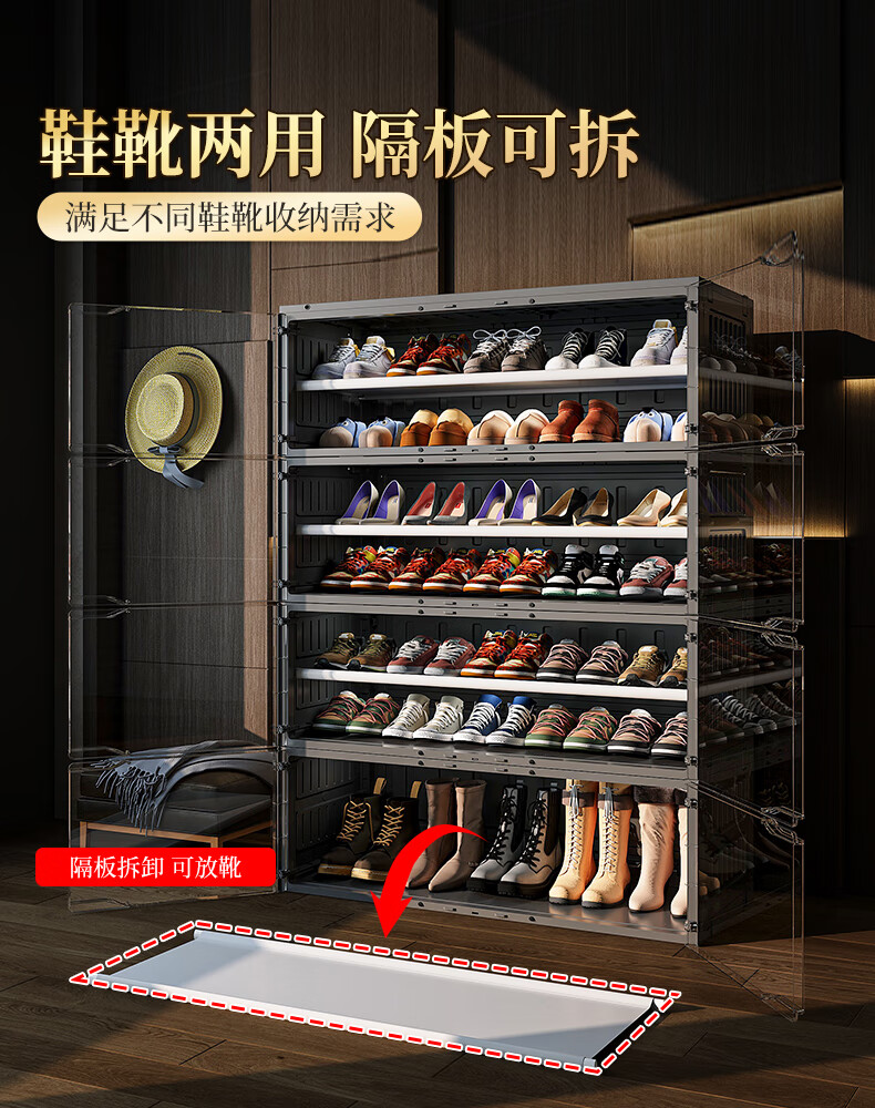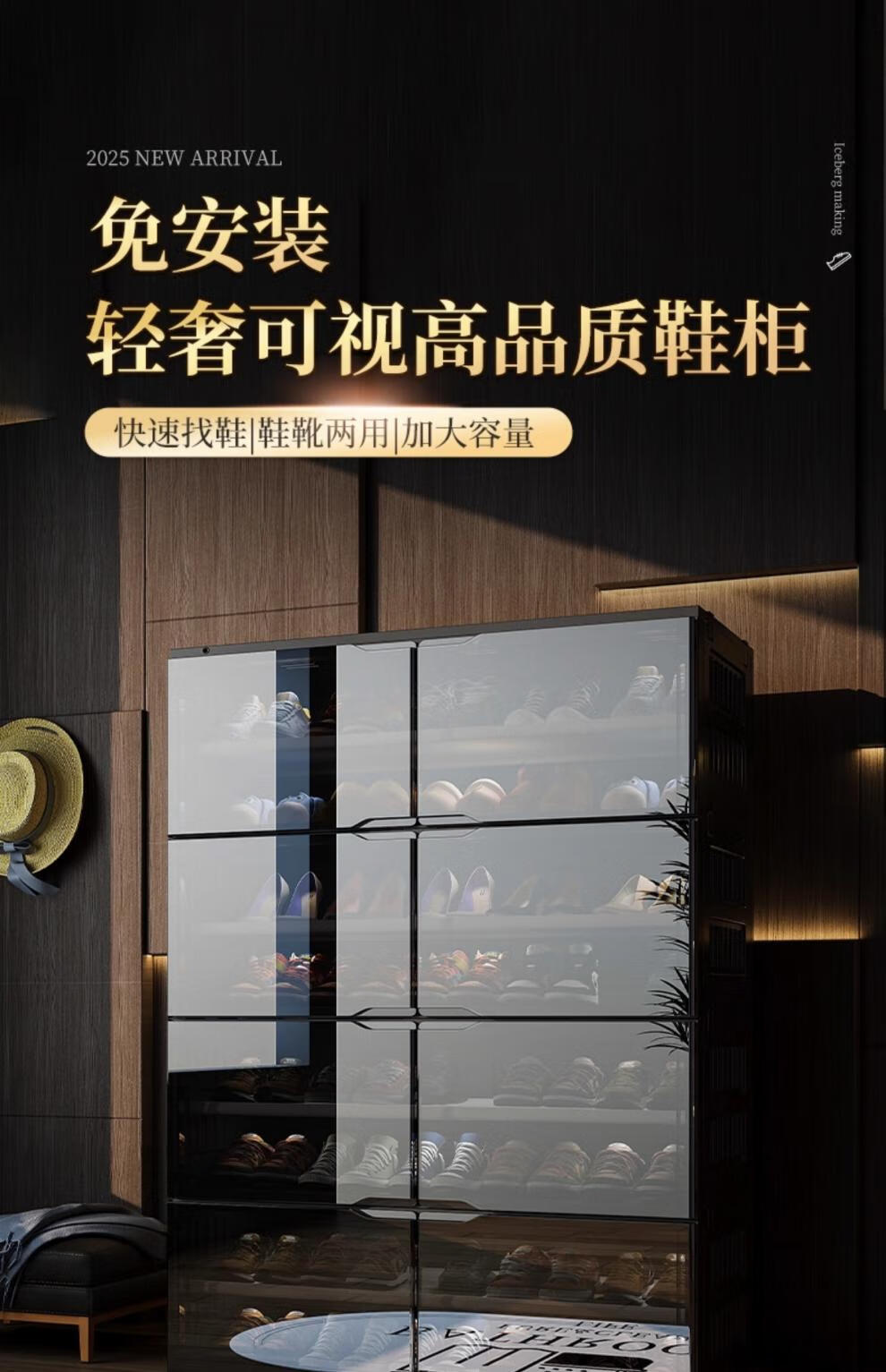 He Jiagong's installation-free shoe box storage box transparent shoe storage artifact home door all-in-one wall shoe rack folding shoe cabinet six full hard sides 4 layers light luxury gray - about 16 or 20 pairs of large size shoes 1*1*1cm