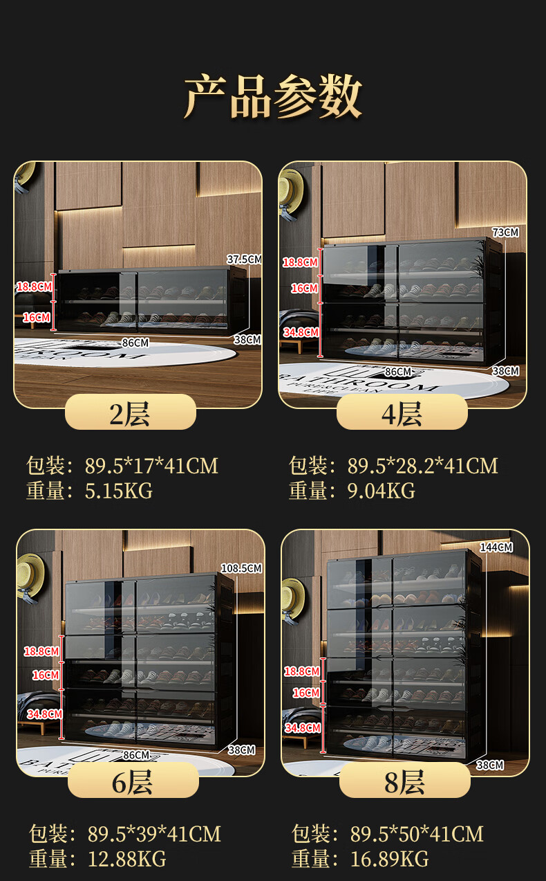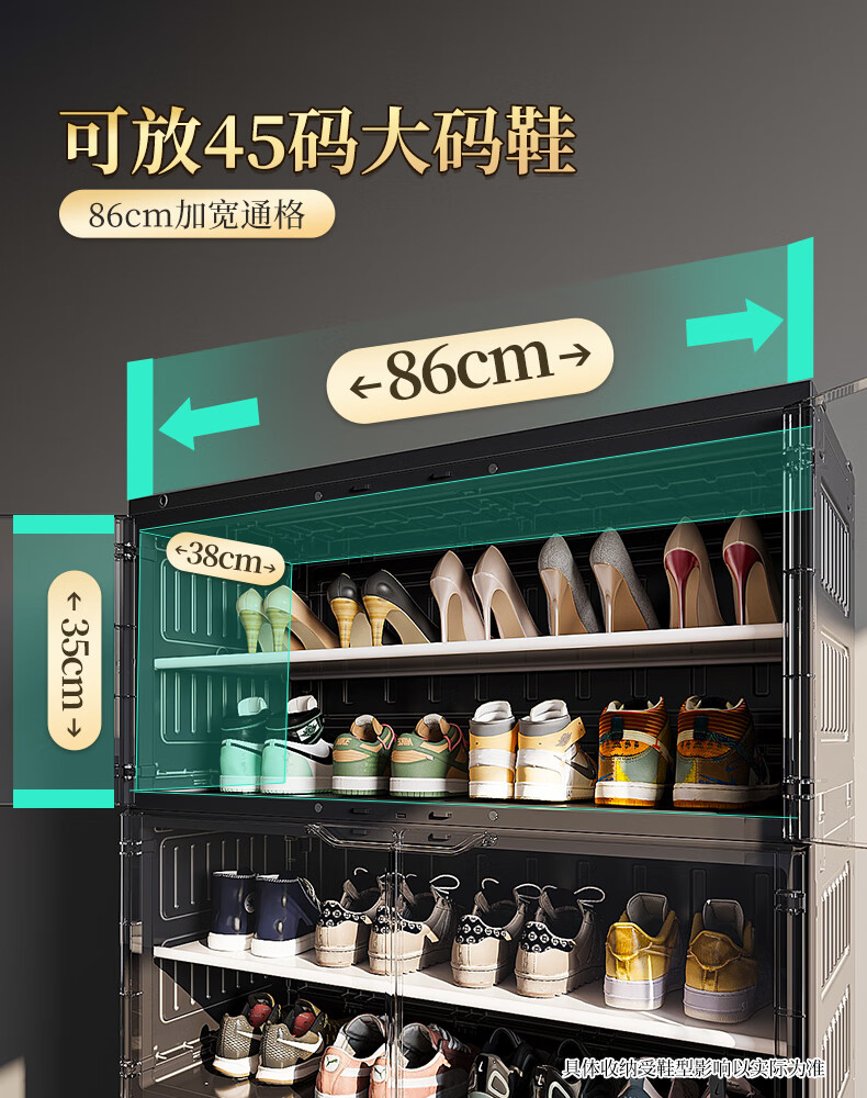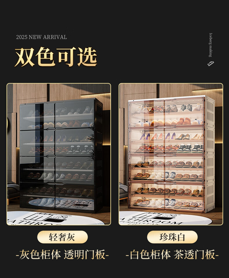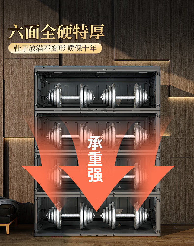 He Jiagong's installation-free shoe box storage box transparent shoe storage artifact home door all-in-one wall shoe rack folding shoe cabinet six full hard sides 4 layers light luxury gray - about 16 or 20 pairs of large size shoes 1*1*1cm