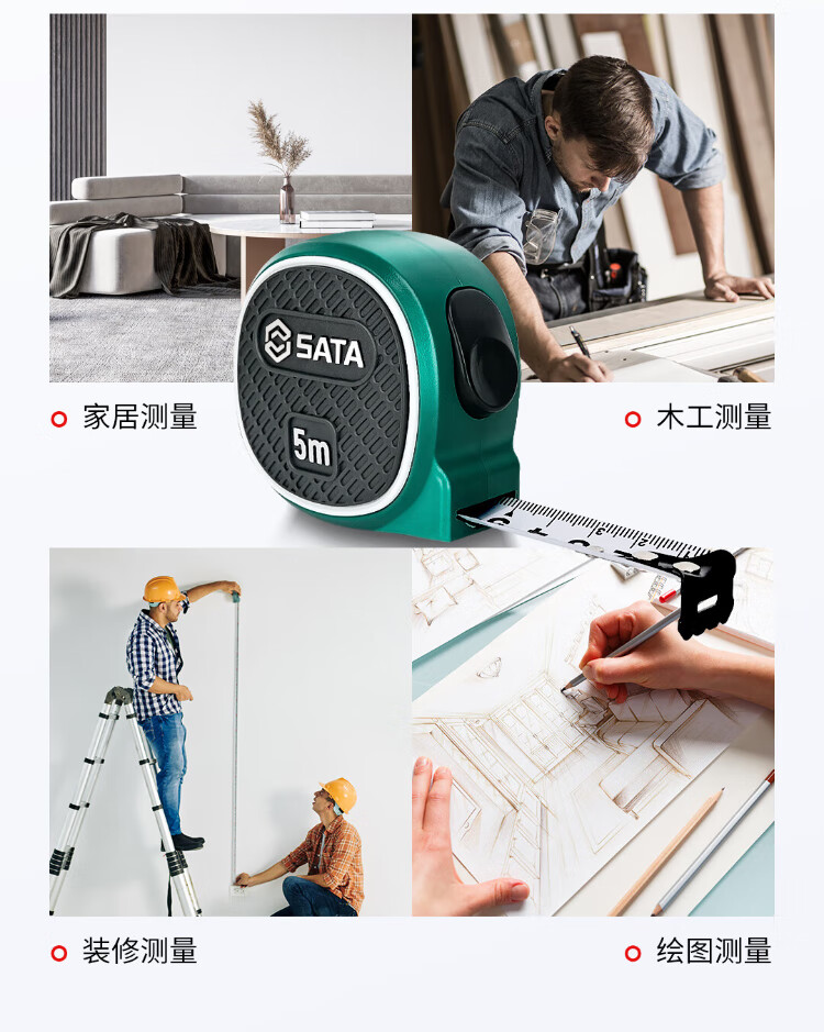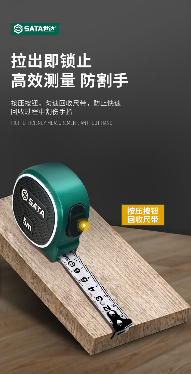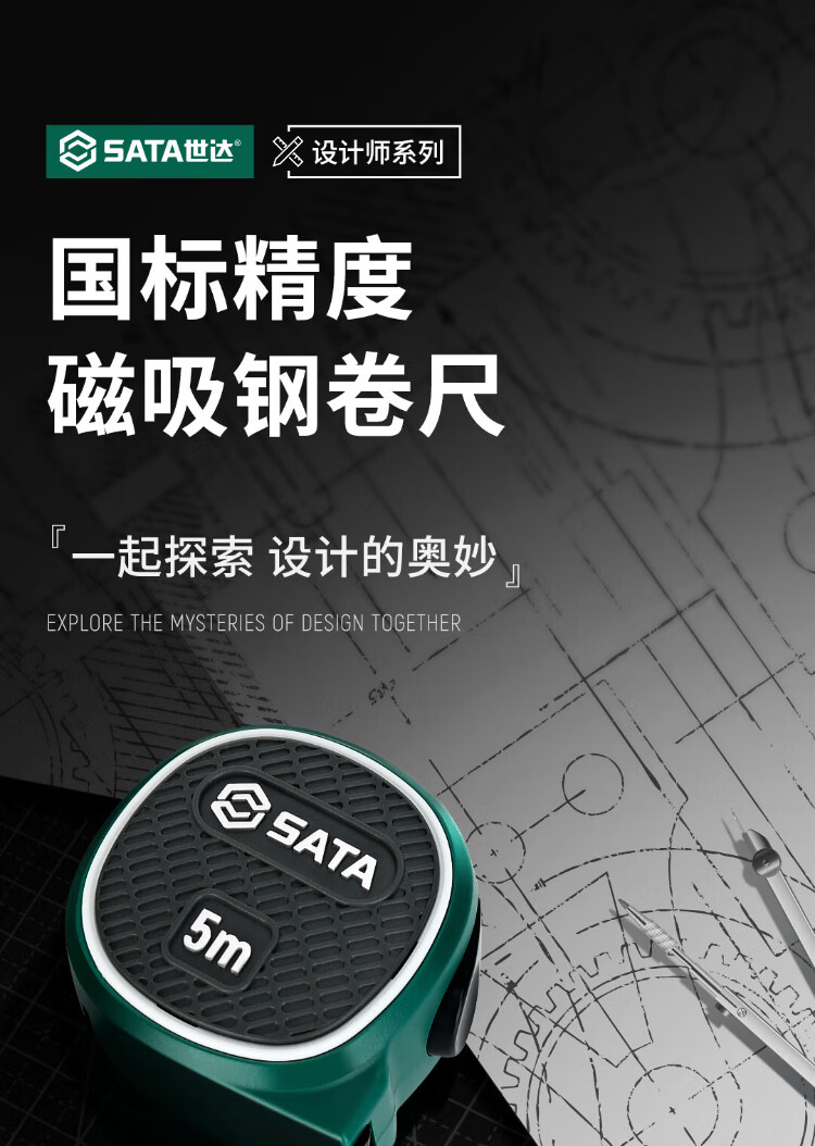 SATA Designer Series Magnetic Steel Tape 3m 5m Compact Scale with Self-Locking Box 791356 Tape Measure 3.0Mx16MM