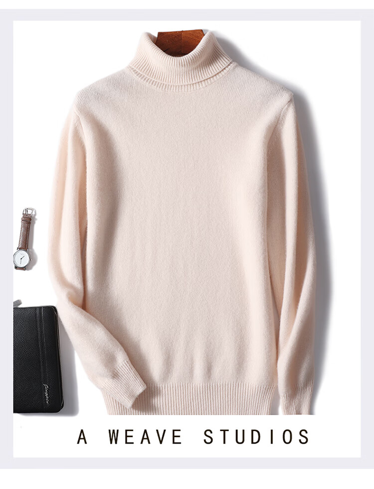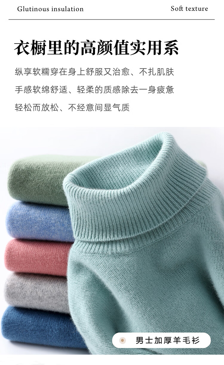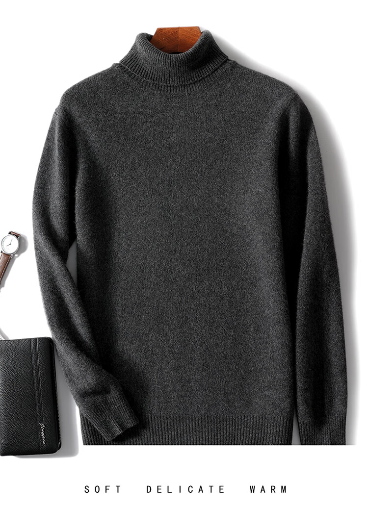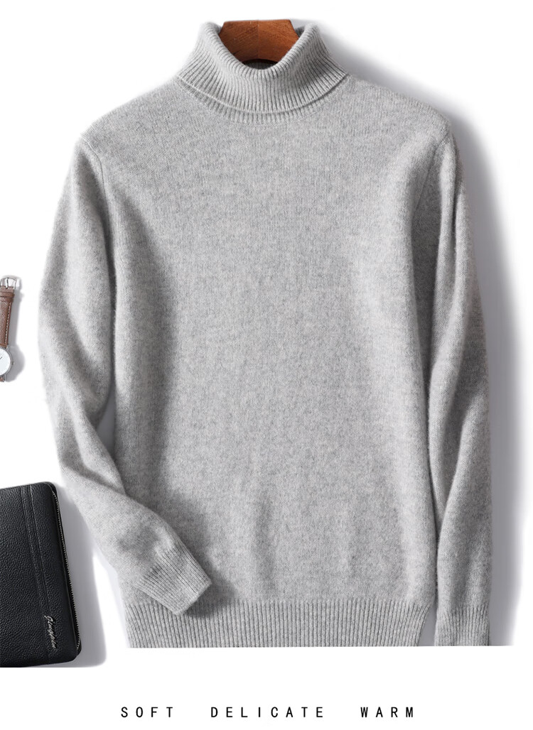 ROMON double-ply thickened pure wool sweater men's turtleneck autumn and winter pullover loose large size bottoming sweater light gray XL 150-170Jin Jin equals 0.5 kg