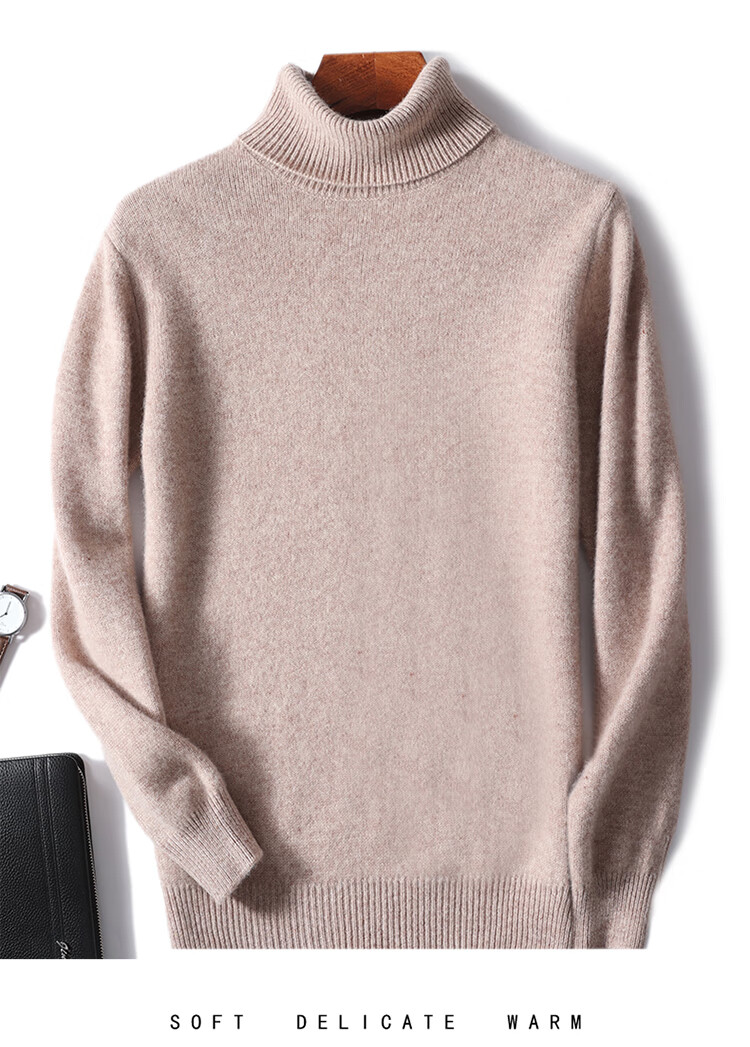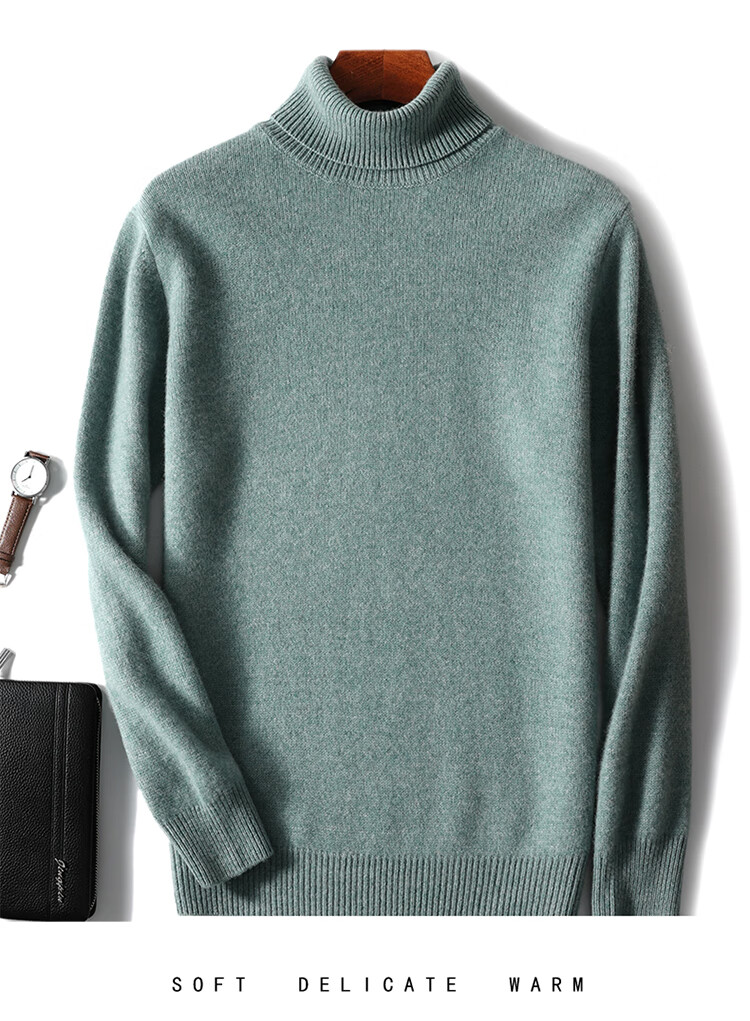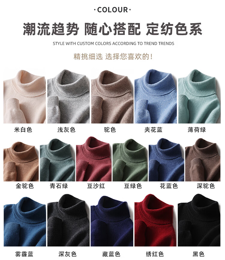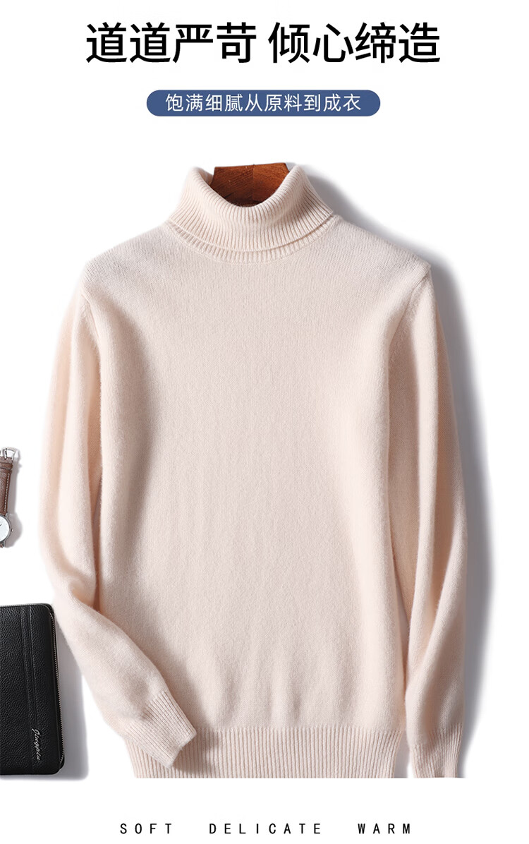 ROMON double-ply thickened pure wool sweater men's turtleneck autumn and winter pullover loose large size bottoming sweater light gray XL 150-170Jin Jin equals 0.5 kg