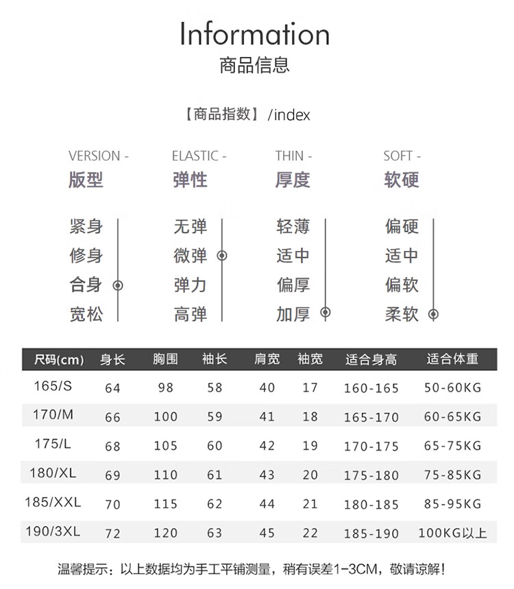 China (cm) 165 / 88-90 170 / 96-98 175 / 108-110 180 / 118-122 185 / 126-130