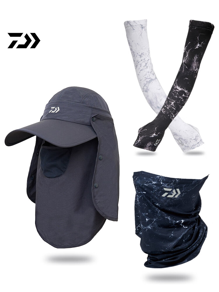 DAIWA sun protection clothing, pants and sleeves, quick-drying and cool, men's and women's masks, fishing suits, ice silk sleeves, white waves, one size fits all