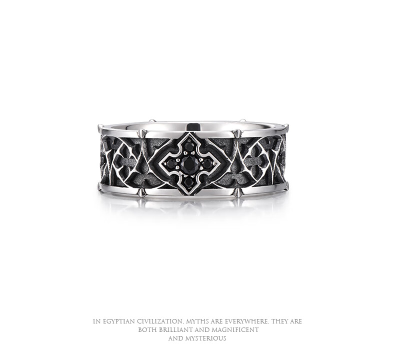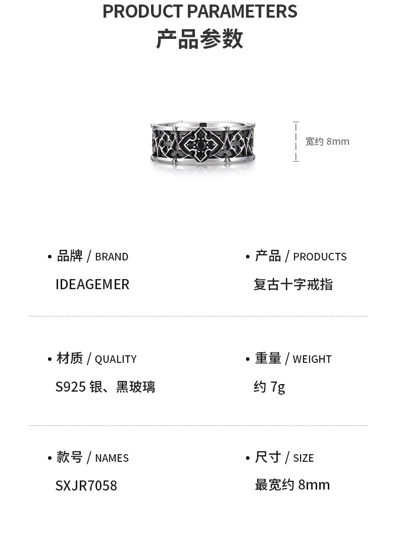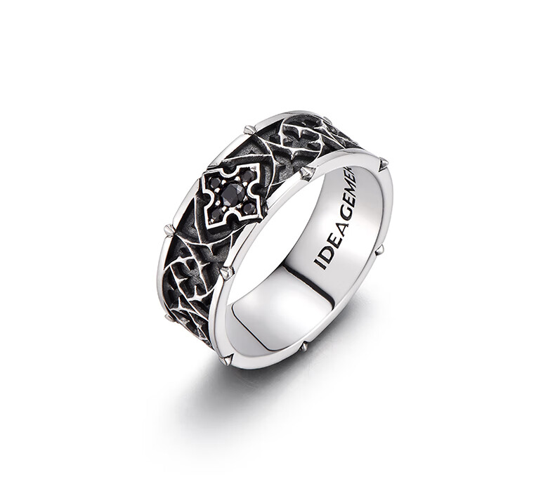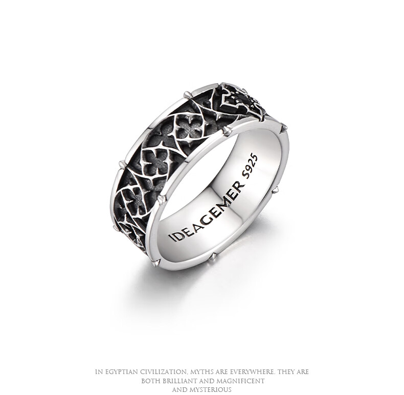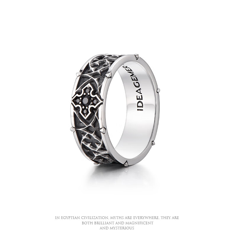 IDEAGEMER925 silver thorns cross ring men's personality retro niche design handsome and versatile boys' ring trend thorns cross ring No. 22