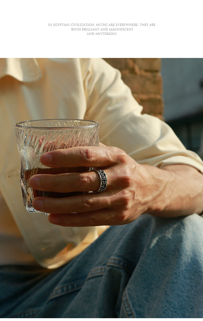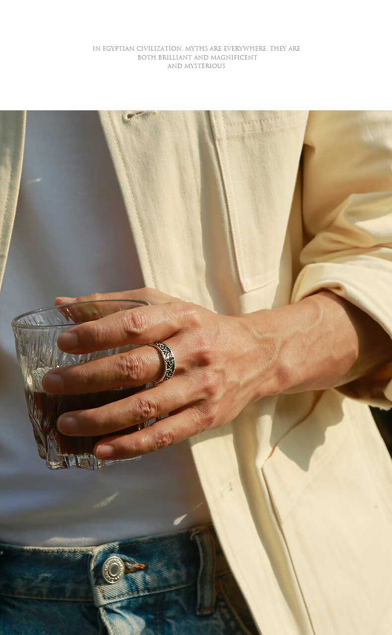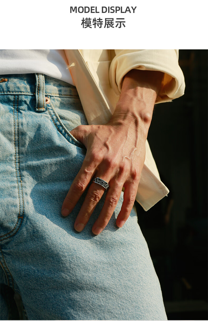 IDEAGEMER925 silver thorns cross ring men's personality retro niche design handsome and versatile boys' ring trend thorns cross ring No. 22