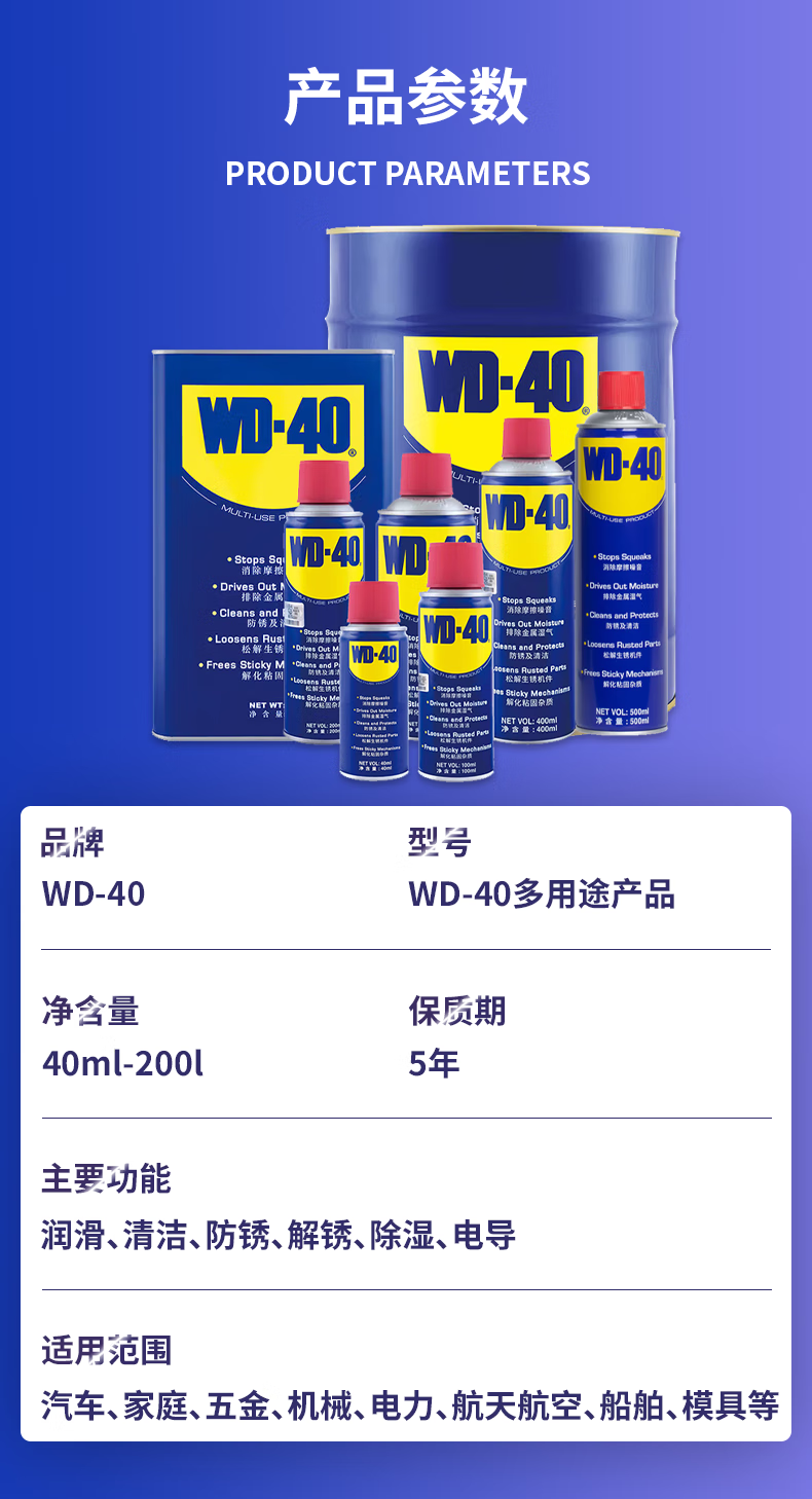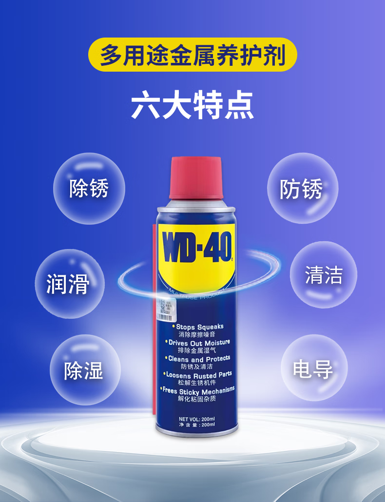 WD-40 multi-purpose metal curing agent, household lubrication, rust removal, rust removal, dehumidification, cleaning, conductive industrial automotive screw loosening agent, 380ml smart spray can 86380SS, two bottles
