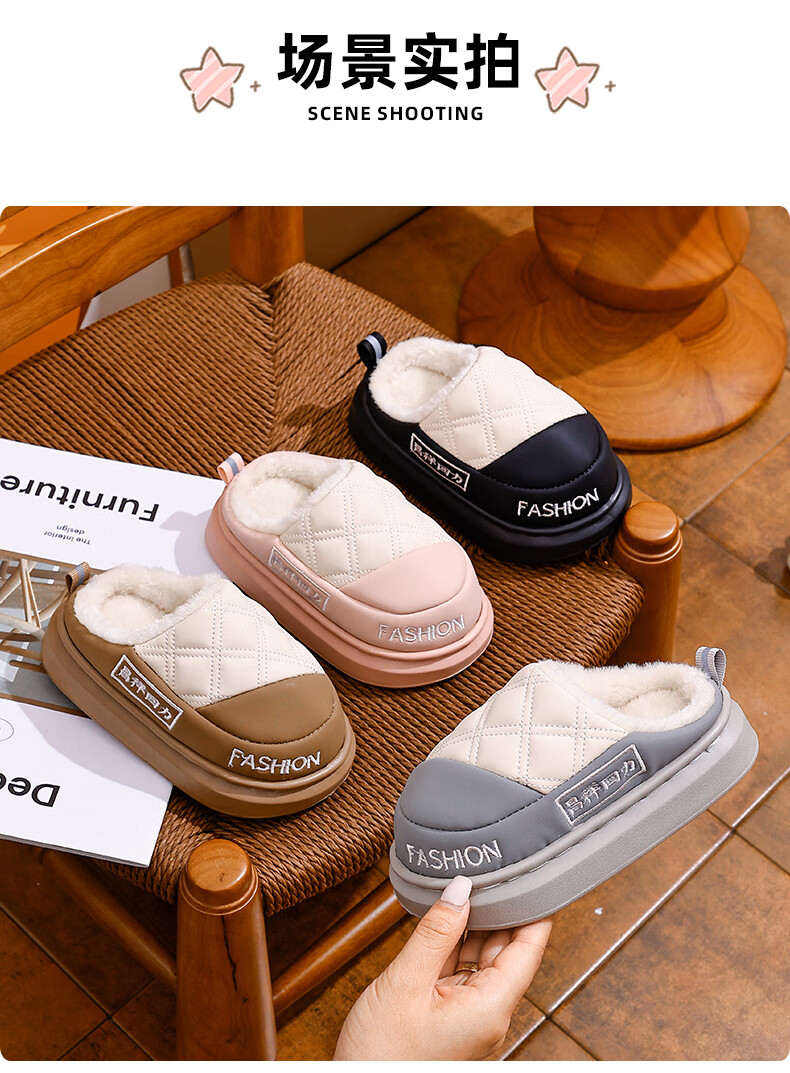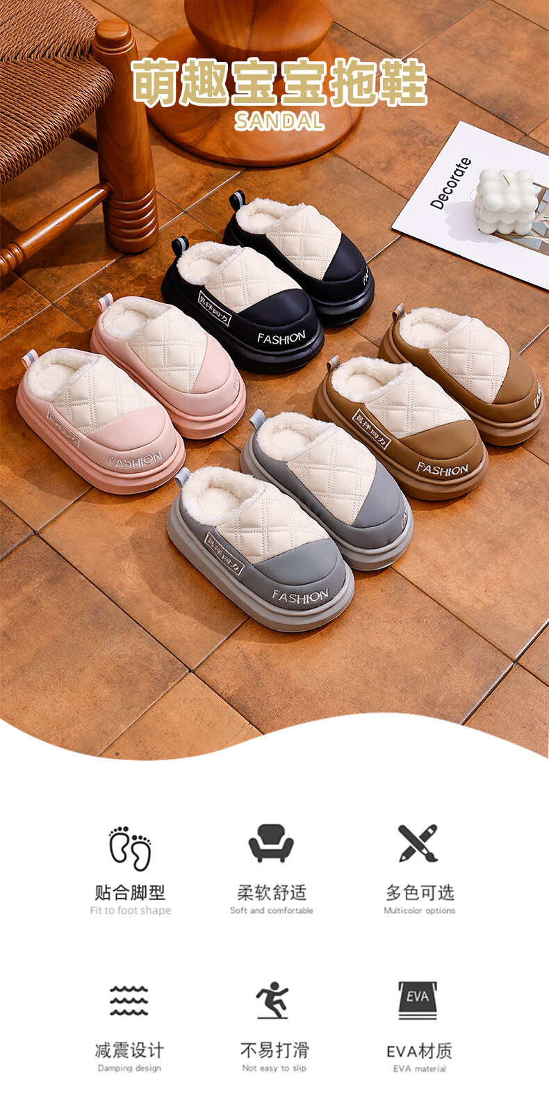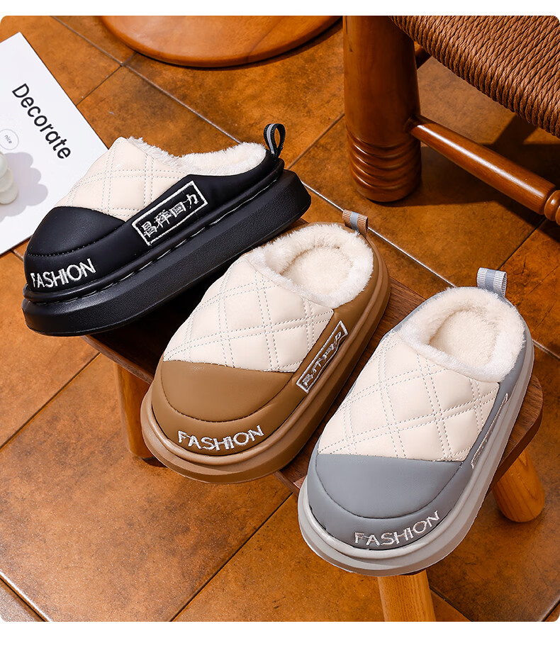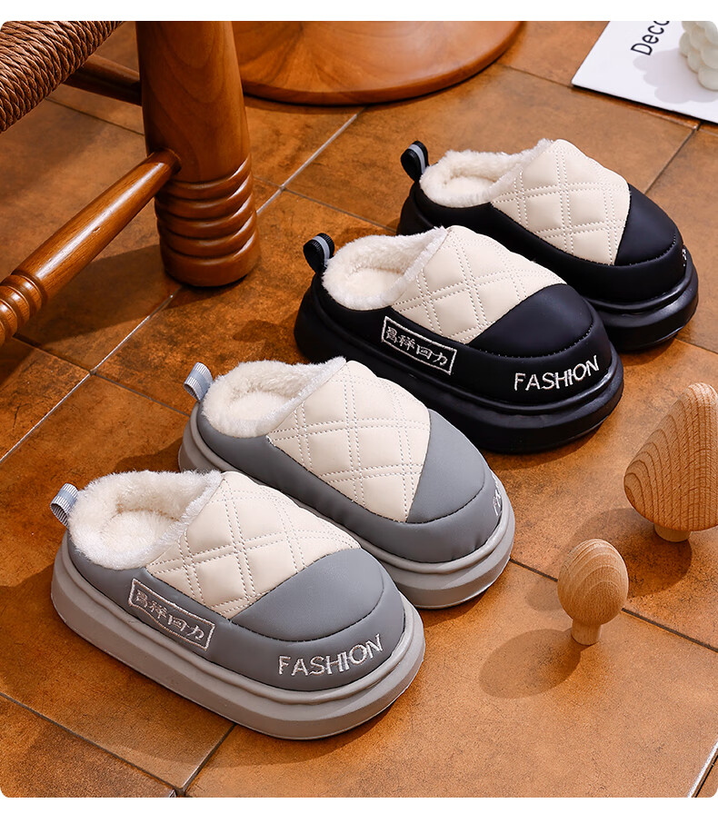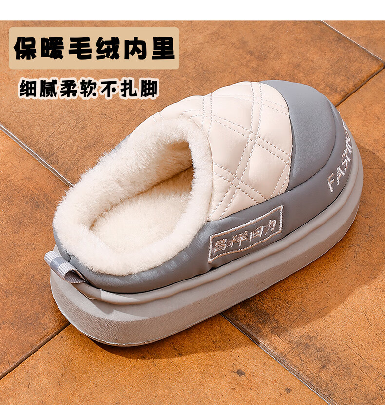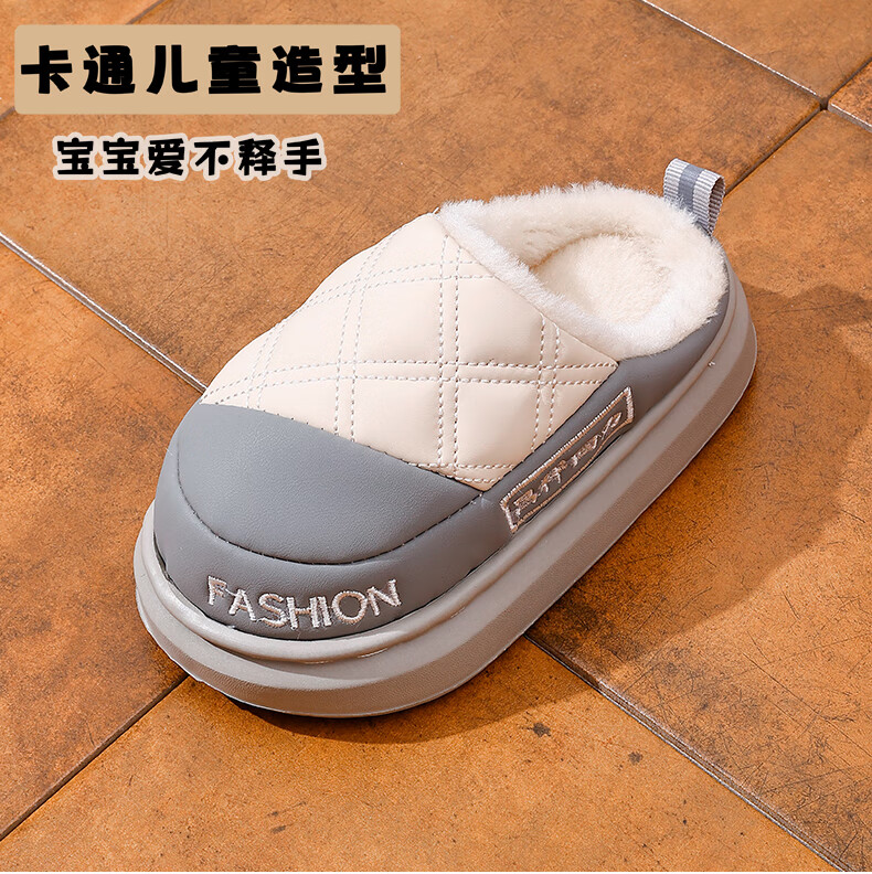 EVA children's cotton slippers, leather surface, waterproof, soft, non-slip, thick velvet, parent-child, adult home, warm in winter, upgraded thickened T-black, size 30 30/31, inner length 19cm