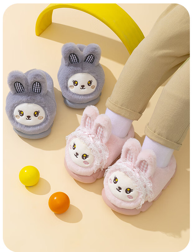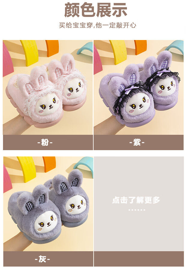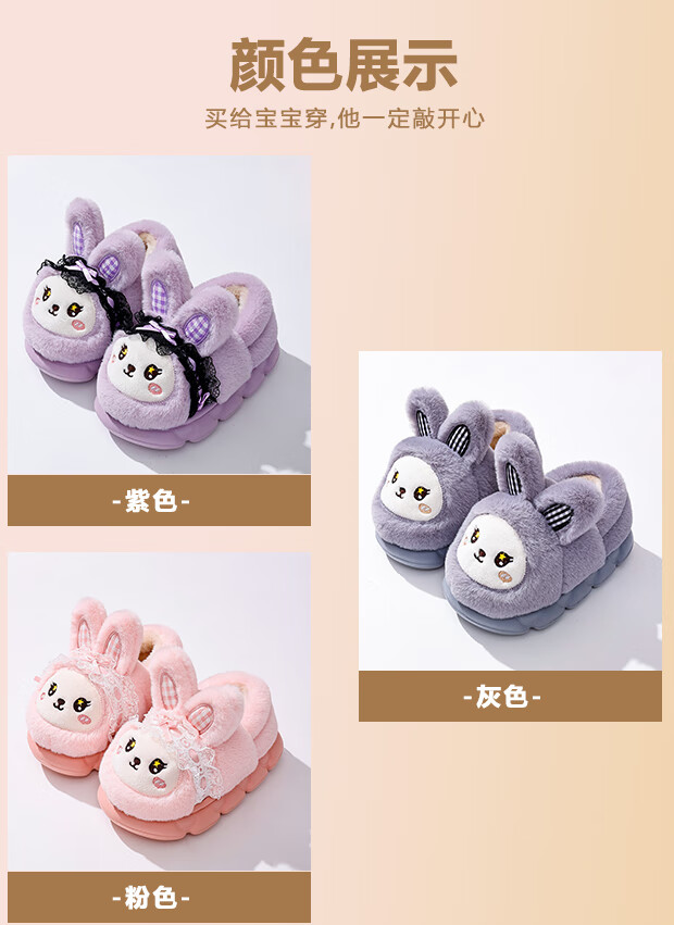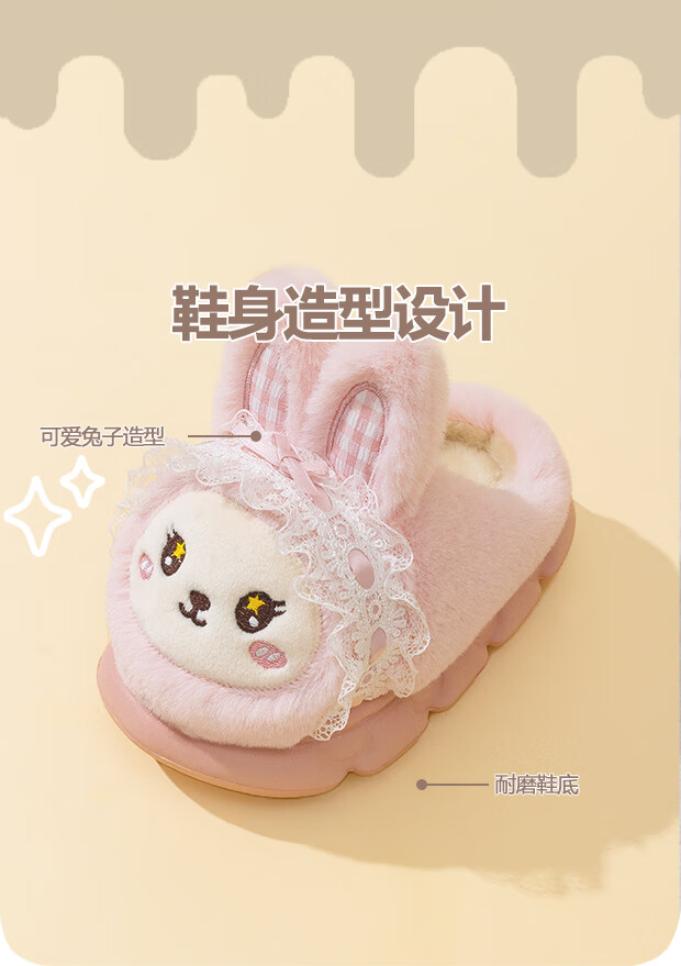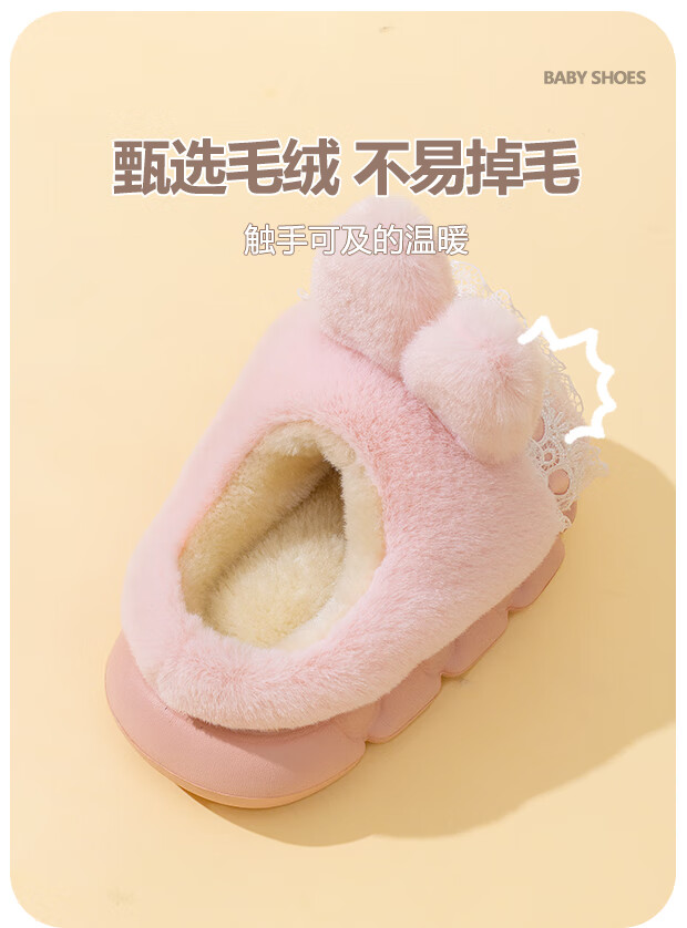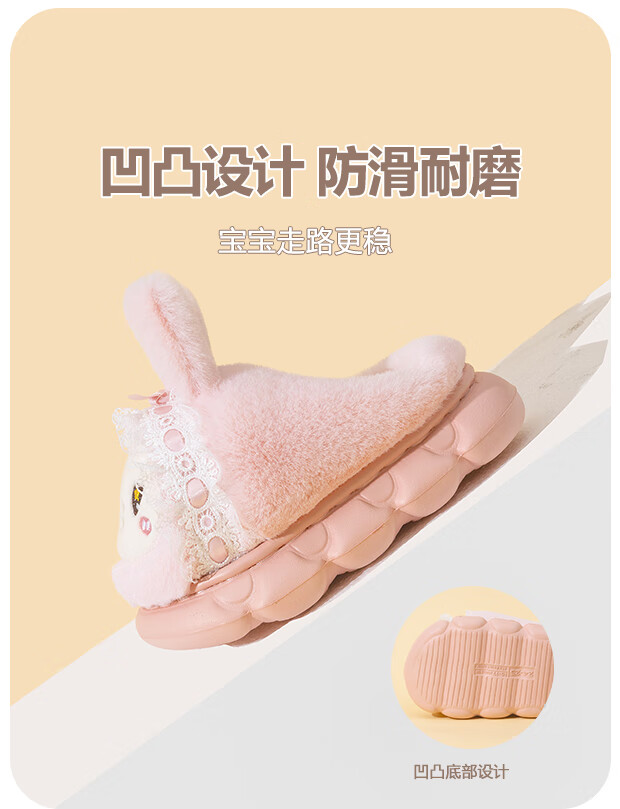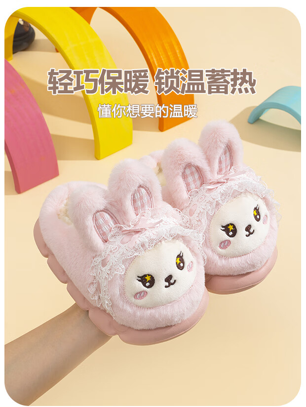 EVA bottom cotton slippers for winter baby soft bottom non-slip plus thick velvet cartoon rabbit home warm parent-child shoes 70M rabbit-pink 24 24-25 size inner length 15cm