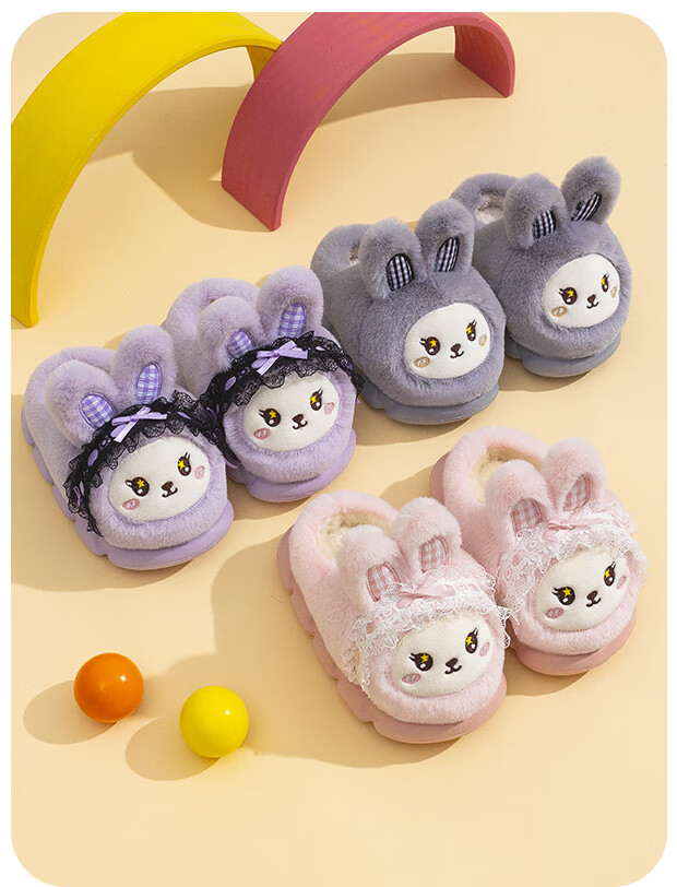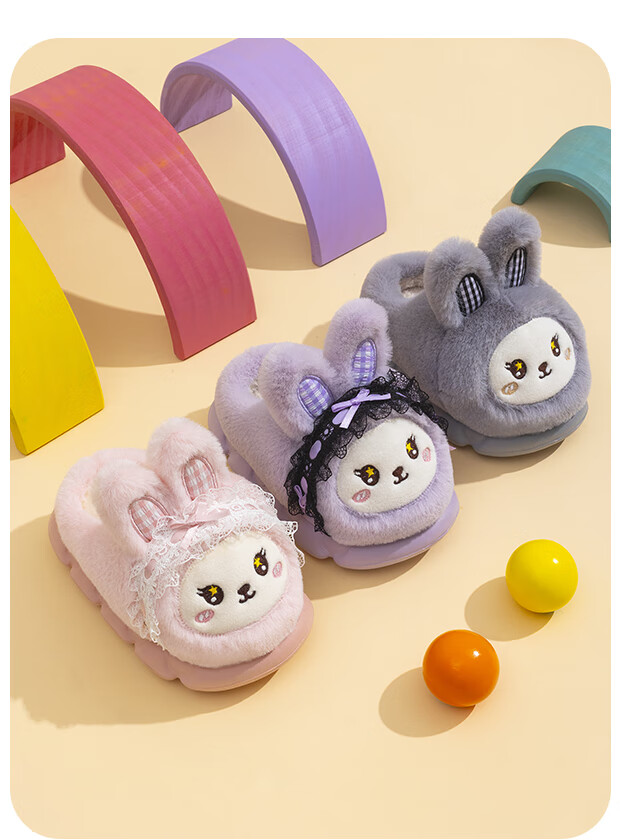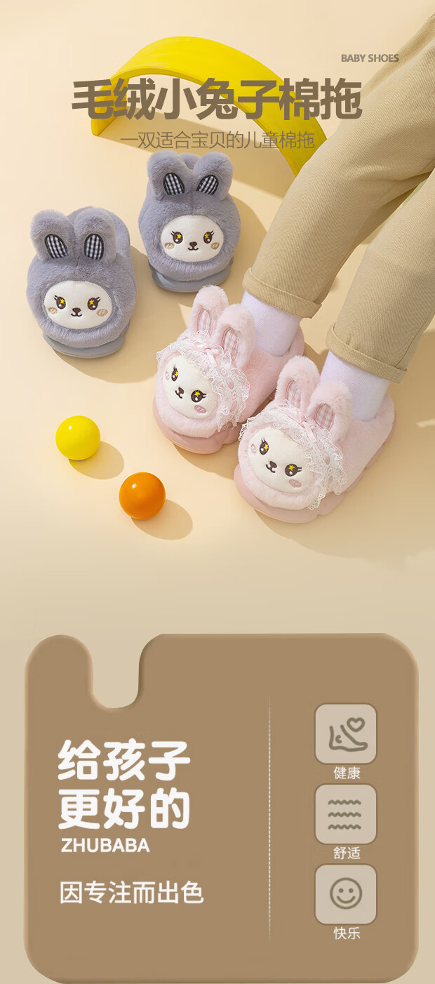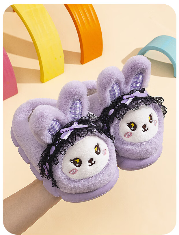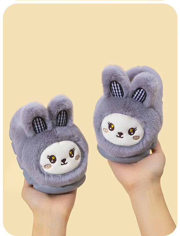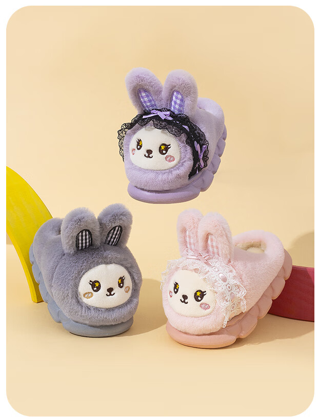 EVA bottom cotton slippers for winter baby soft bottom non-slip plus thick velvet cartoon rabbit home warm parent-child shoes 70M rabbit-pink 24 24-25 size inner length 15cm