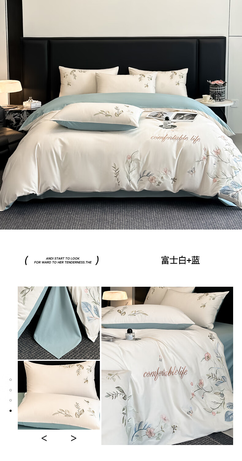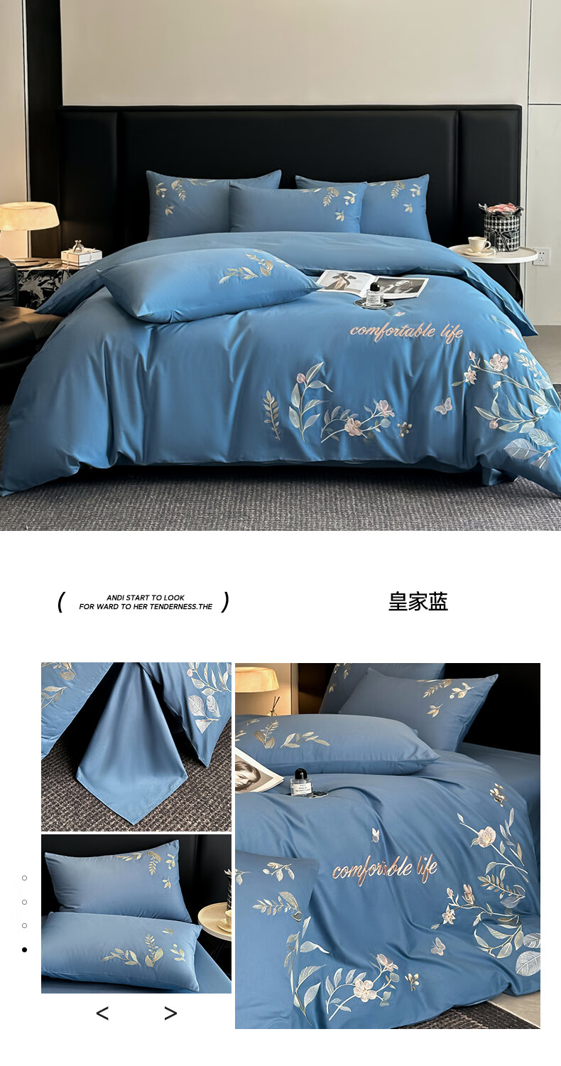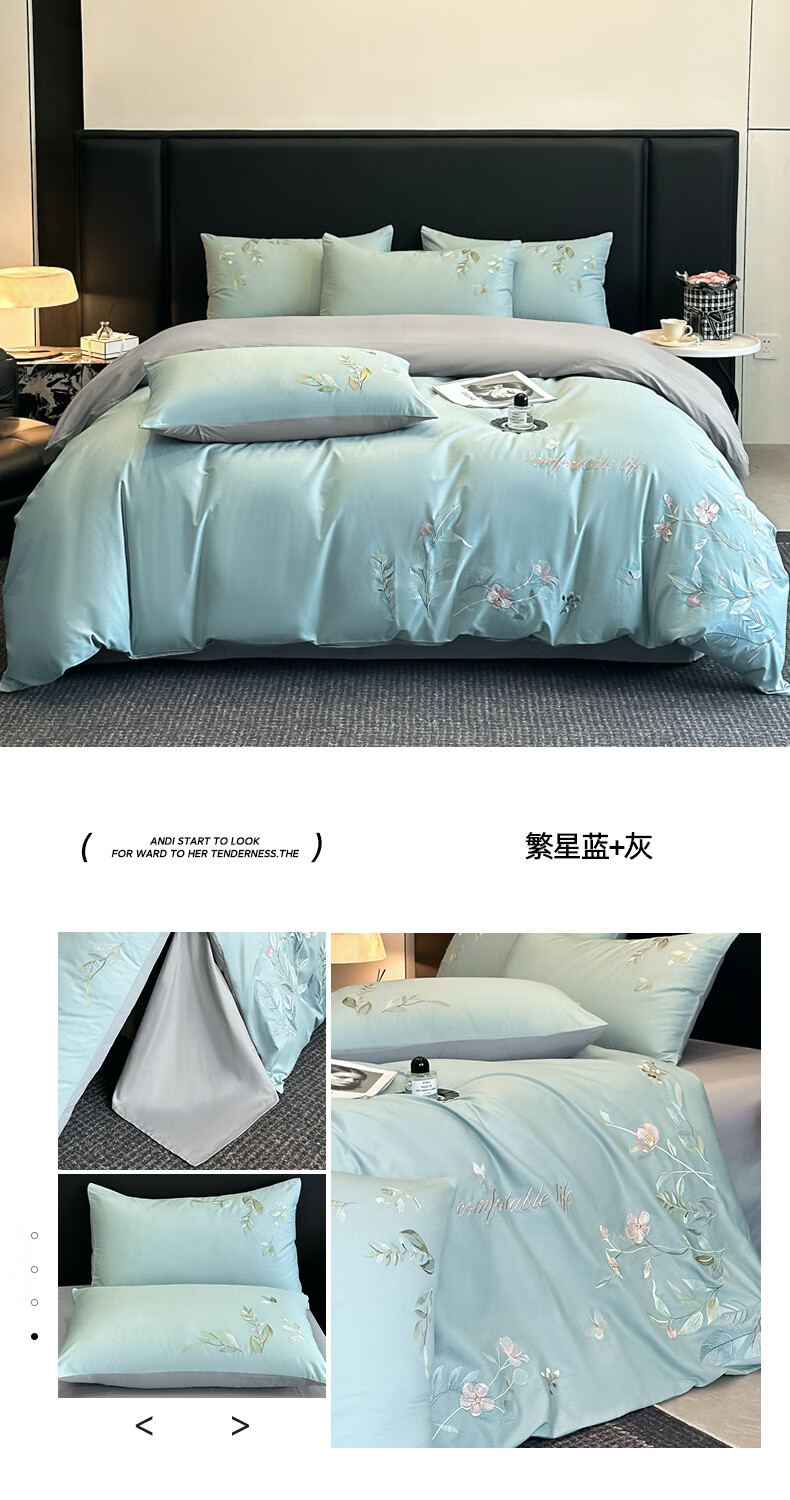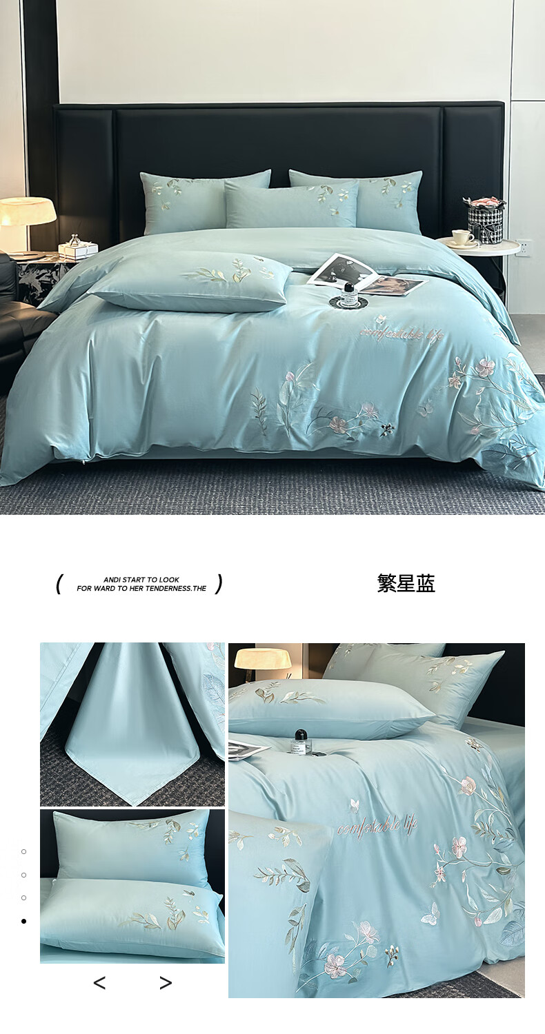 180 count long-staple pure cotton four-piece set new high-end 100% cotton bed sheet quilt cover gift bed sheet bedding set 4 blue 100% cotton 2.0m bed sheet style four-piece set 100% cotton