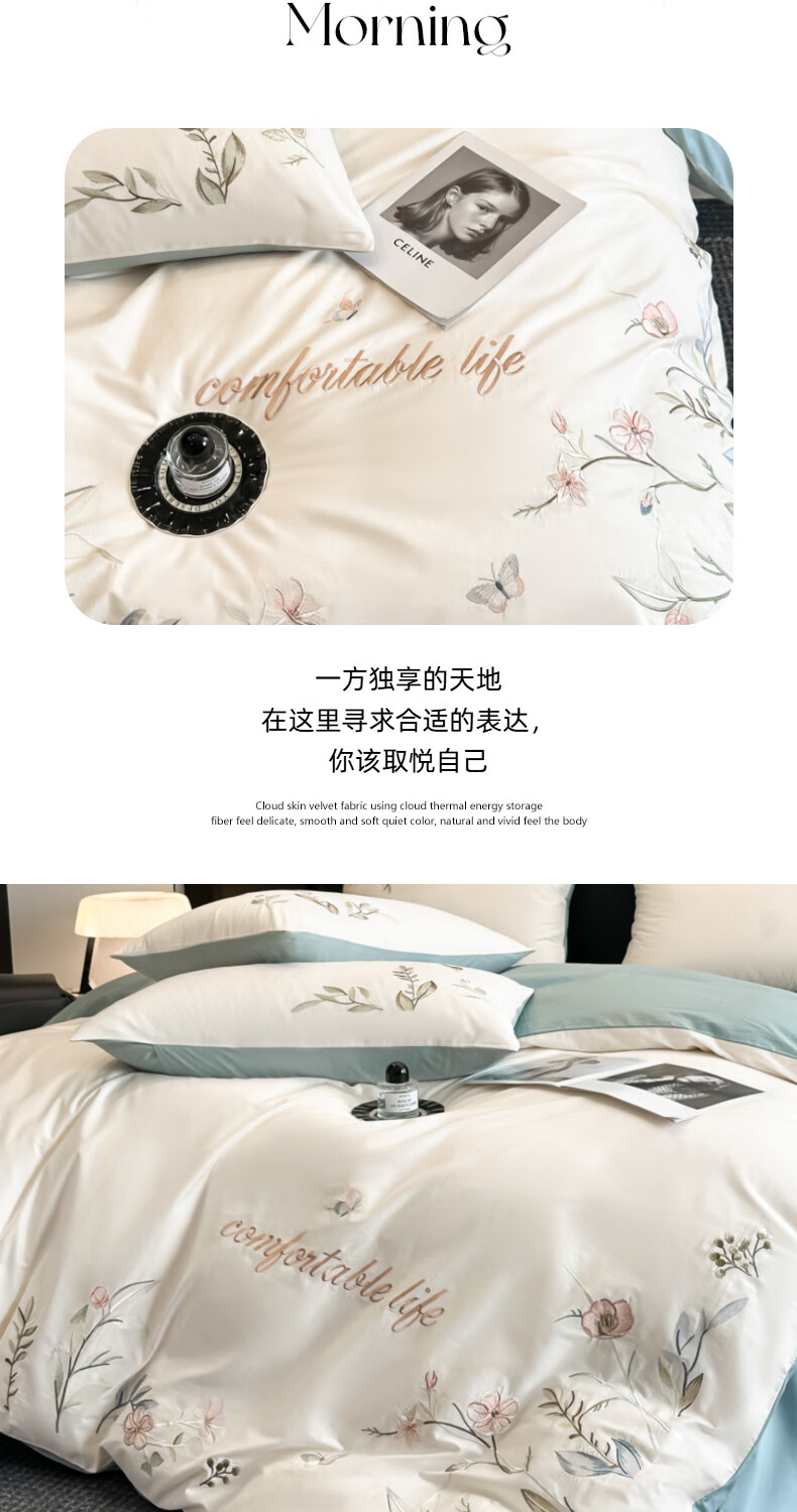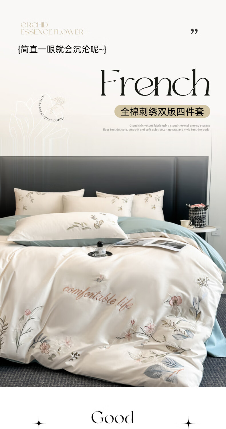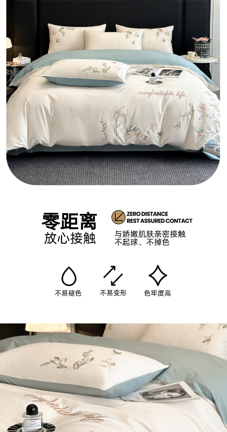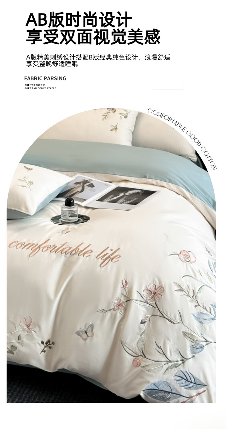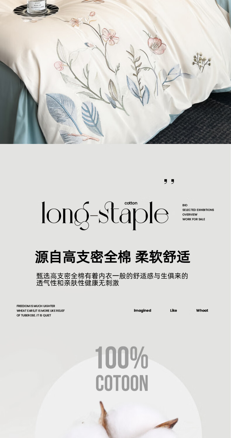 180 count long-staple pure cotton four-piece set new high-end 100% cotton bed sheet quilt cover gift bed sheet bedding set 4 blue 100% cotton 2.0m bed sheet style four-piece set 100% cotton