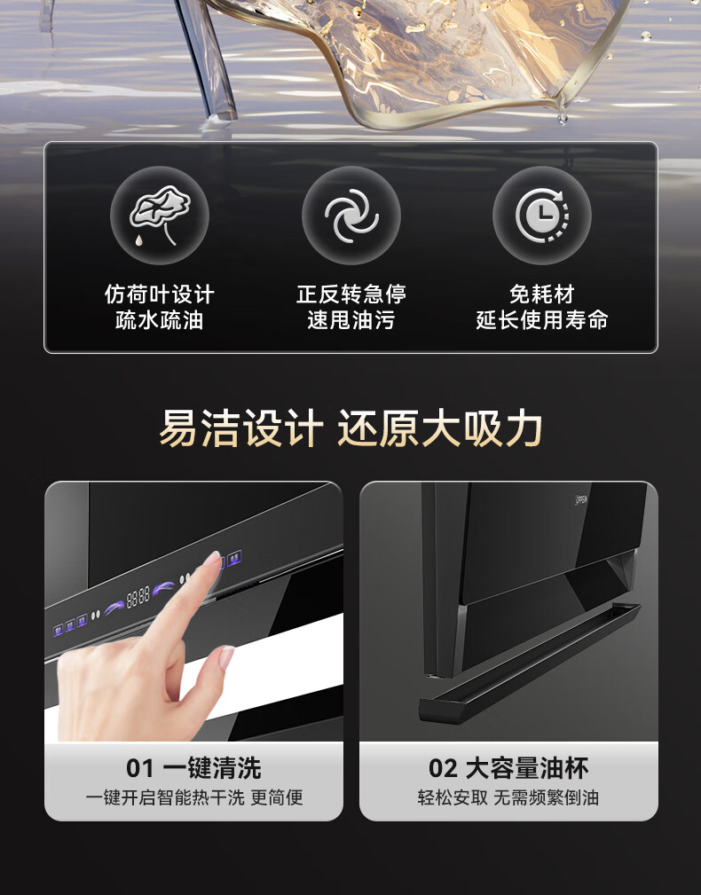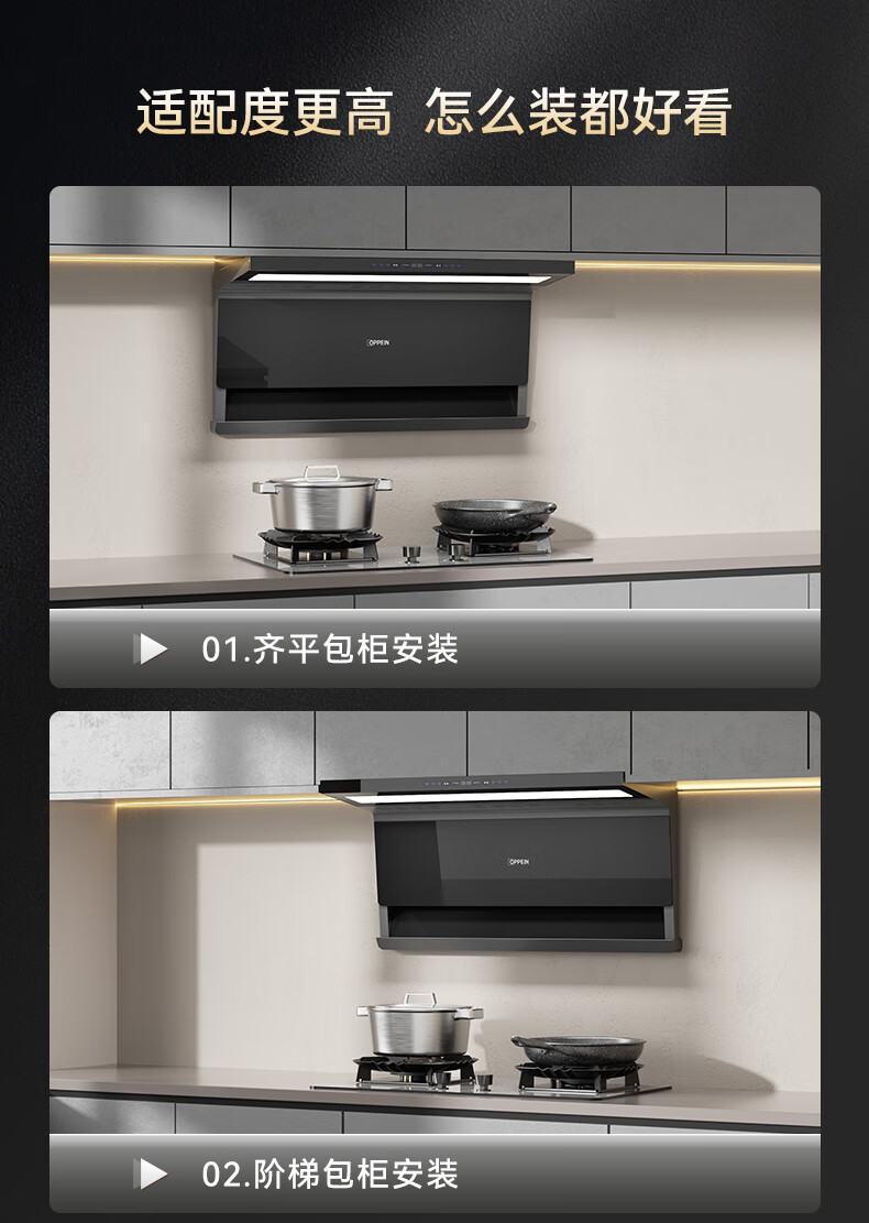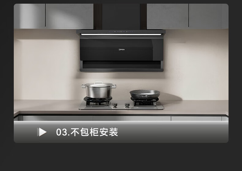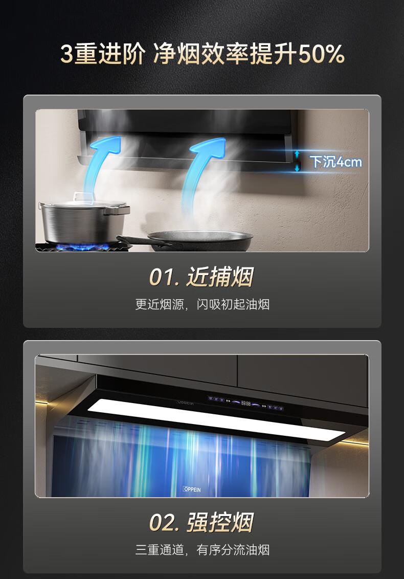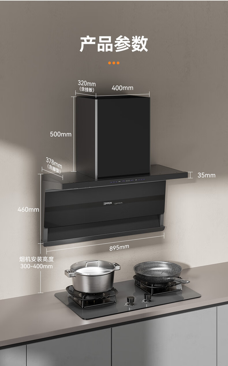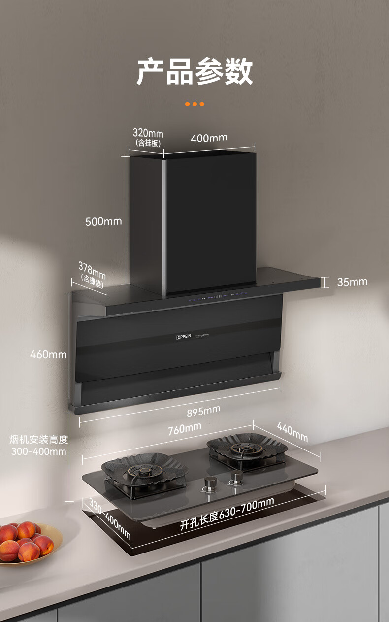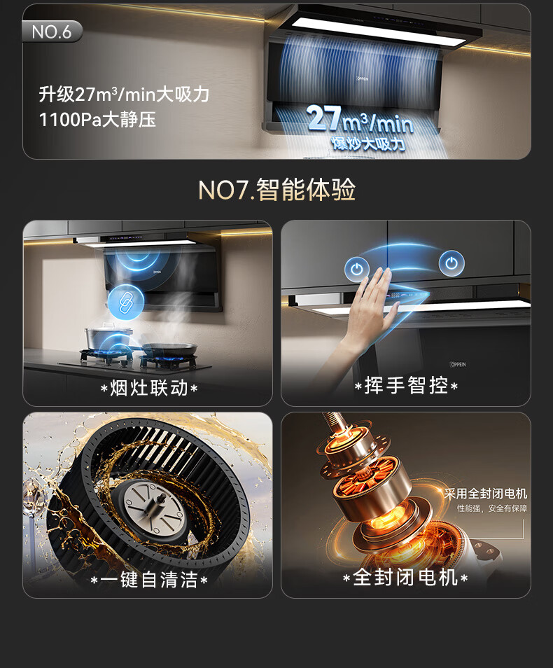 OPPEIN range hood top side double suction high suction household range hood 27m variable frequency high suction hand wave intelligent control stir-fry hood stove set linkage two-piece set with flip-top double nine-cavity fierce stove 89L