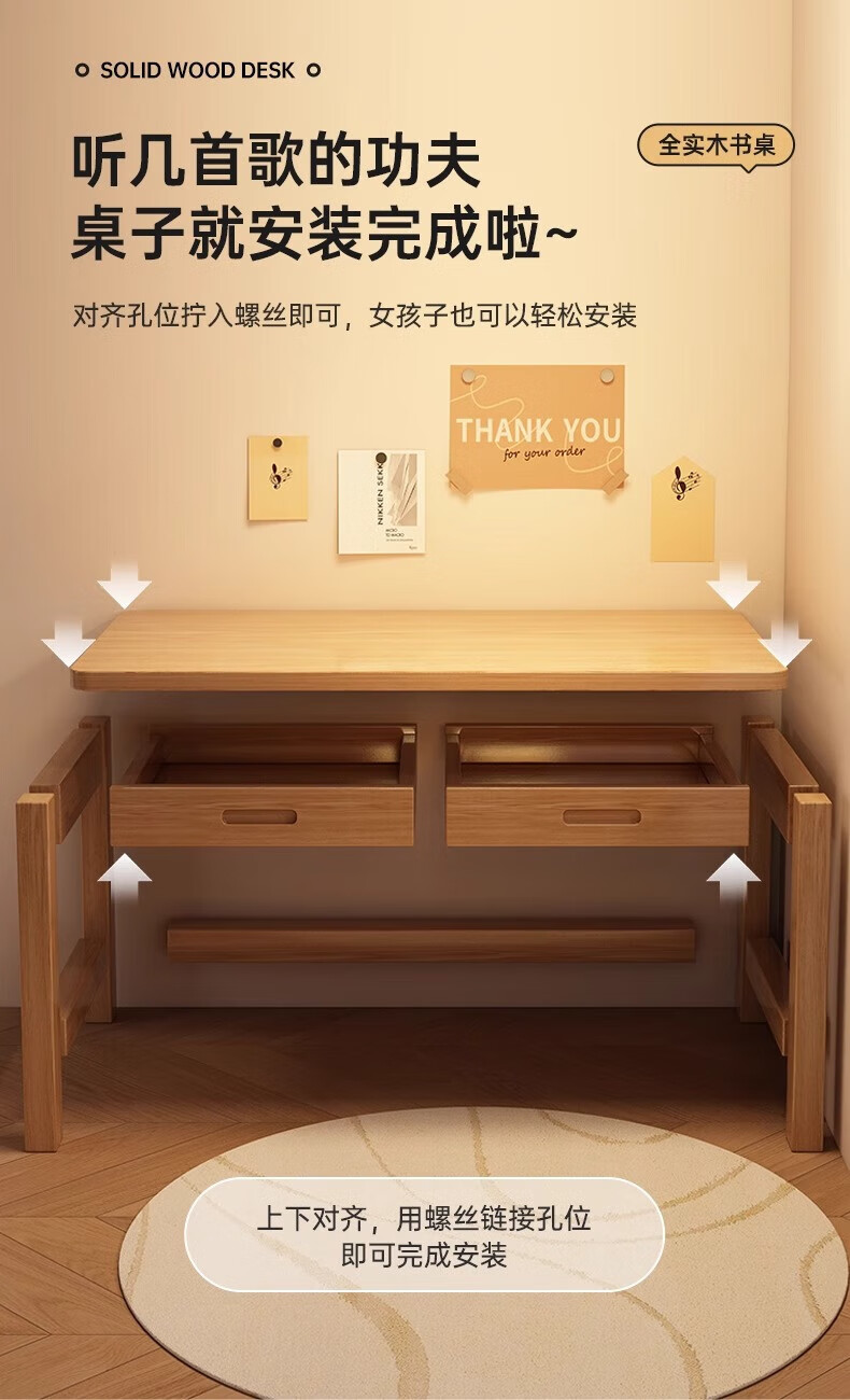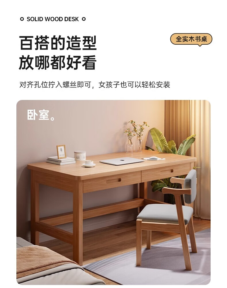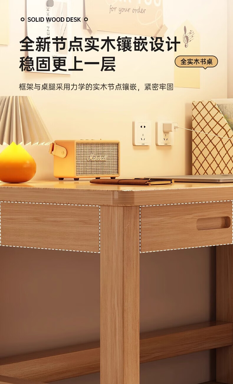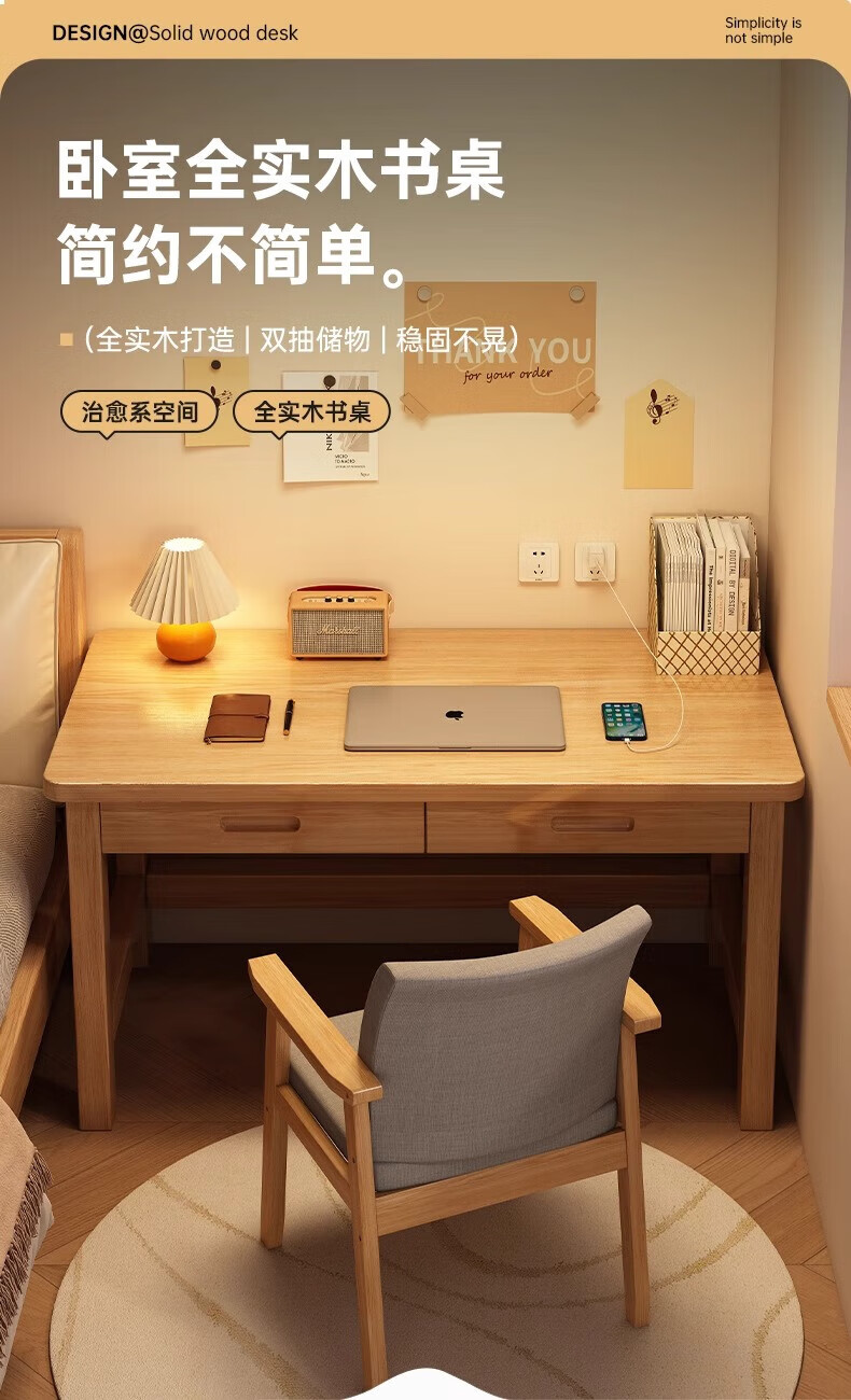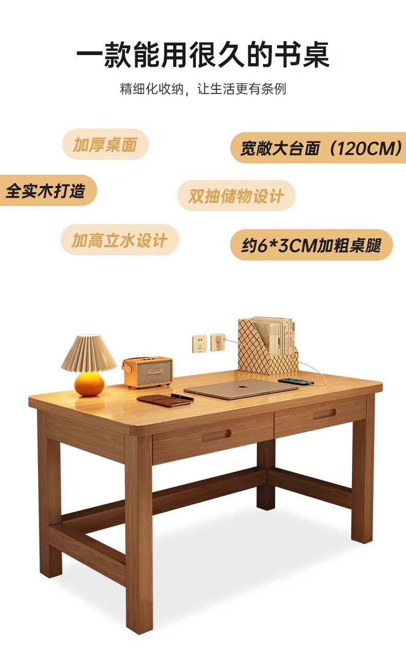 Pure solid wood desk home bedroom with drawer desk student study desk simple modern computer desk all solid wood solid wood color 120*60CM