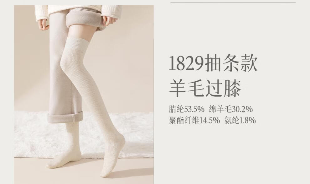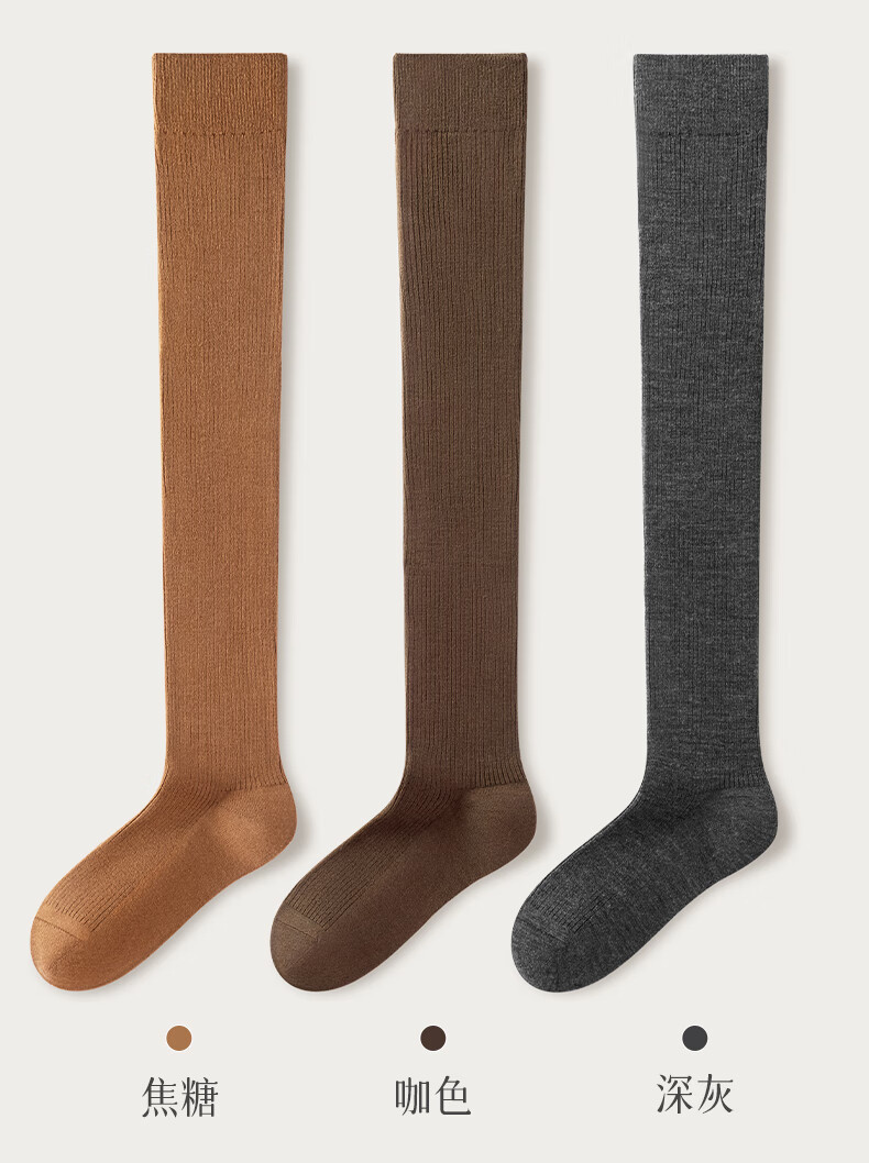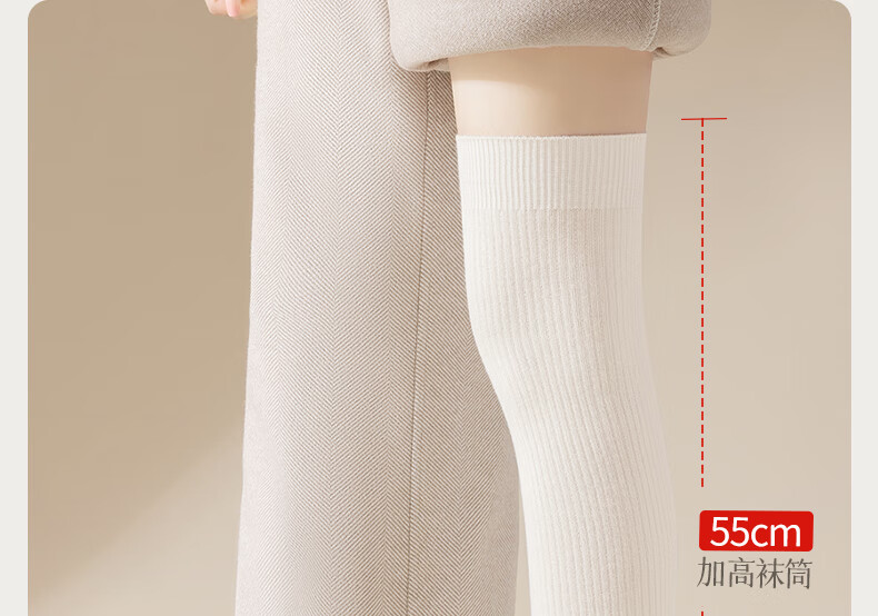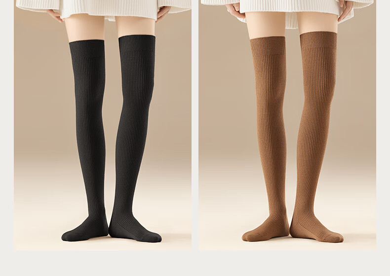 Mianzhuwu lamb wool over-the-knee socks for women in autumn and winter, thickened warm knee pads, non-slip, anti-pilling, high-top women's thighs, 1829 terms combination eleven (khaki + caramel), one size fits all, 2 pairs_(35-39) lamb wool over-the-knee_warm and not bulky
