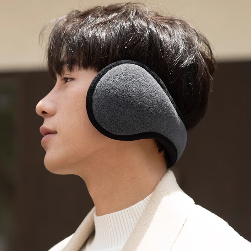 JIOESC men's winter warm back-worn earmuffs, women's embroidered plush cold-proof ear warmers, winter men's ear protection ear bags, black