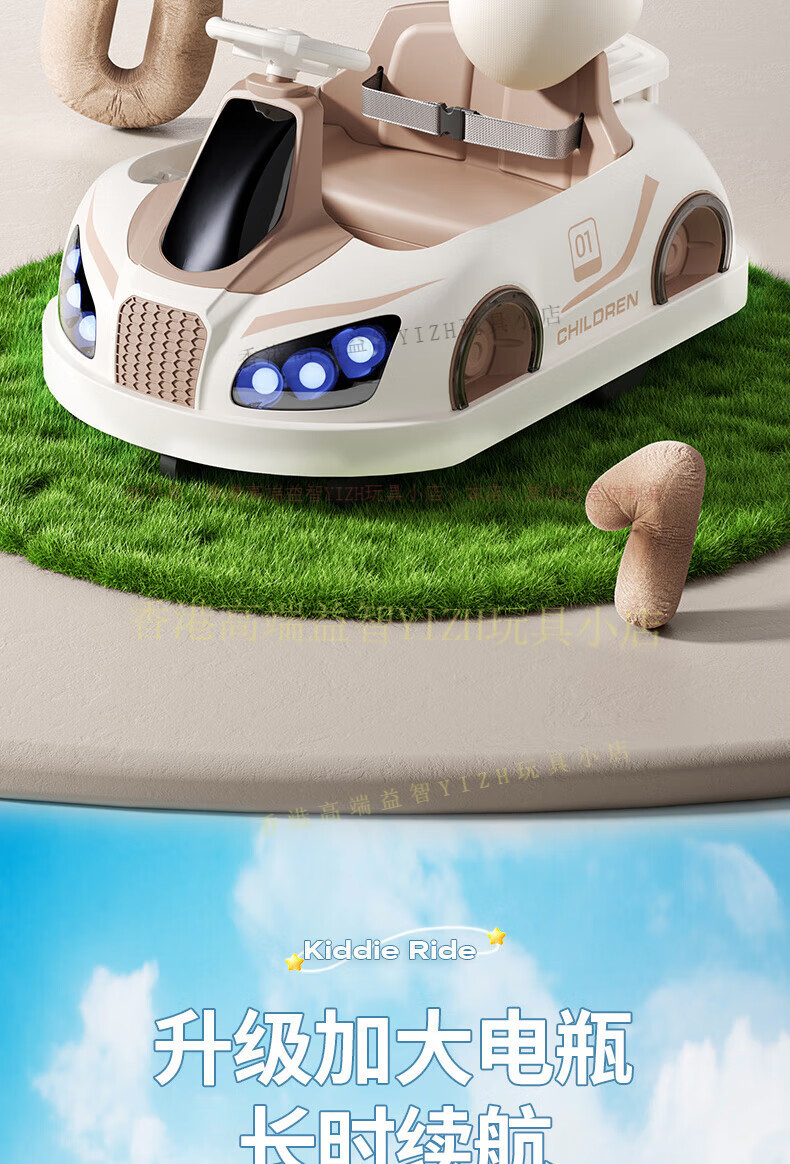 Pushou children's electric bumper car children's baby toy car can sit on with remote control baby four-wheel car charging stroller coffee color electric drive