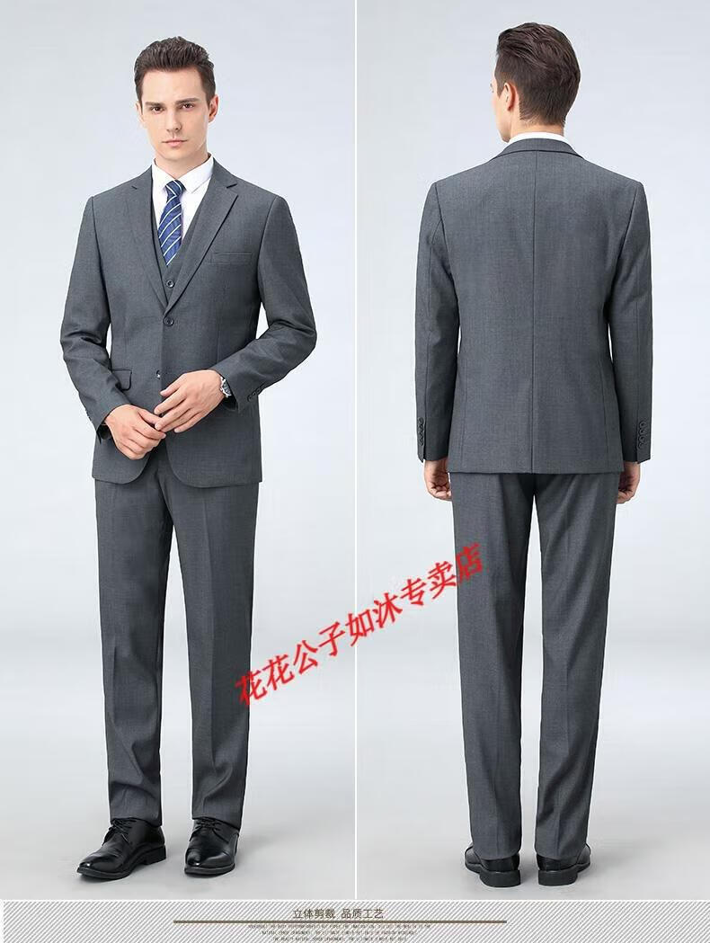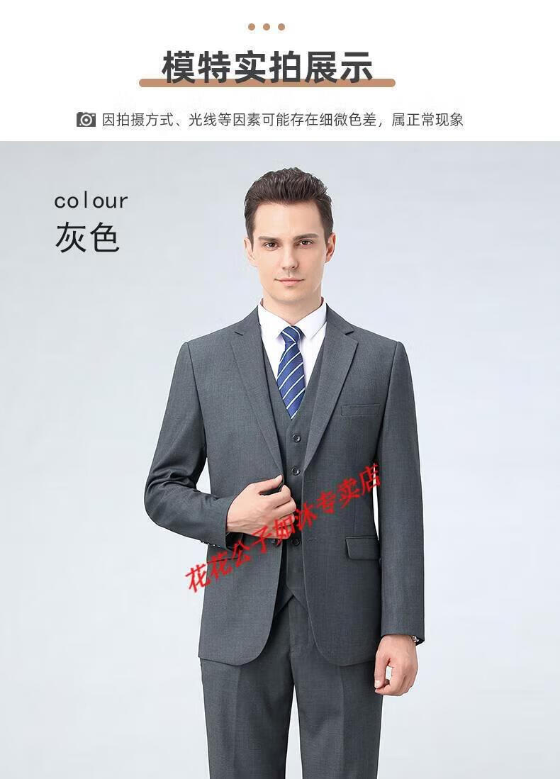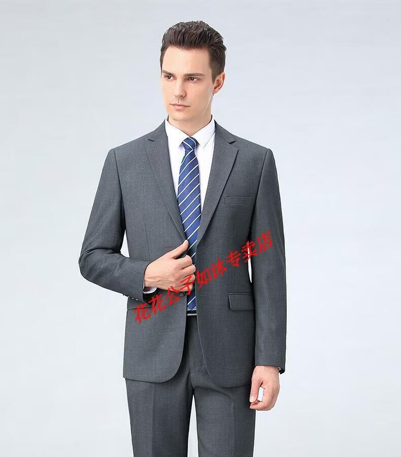 Playboy high-end pure wool suit suit men's business formal attire professional jacket men's groom's wedding iron-free suit two-piece suit gray clothes + pants XL 180/52 size authentic guarantee