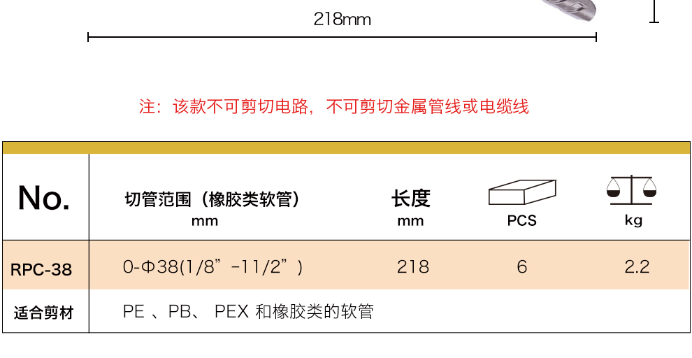 Robin Hood Robin Hood (RUBICON) Robin Hood pipe cutter PBPE soft water pipe scissors pipe cutter quick cutting RPC-38 hose hose cutter