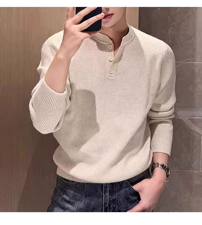 Kuraishi Kazuki lazy style Henry collar sweater men's autumn and winter Korean version versatile casual sweater warm inner layering shirt trendy black 3XL
