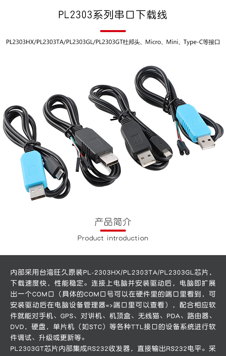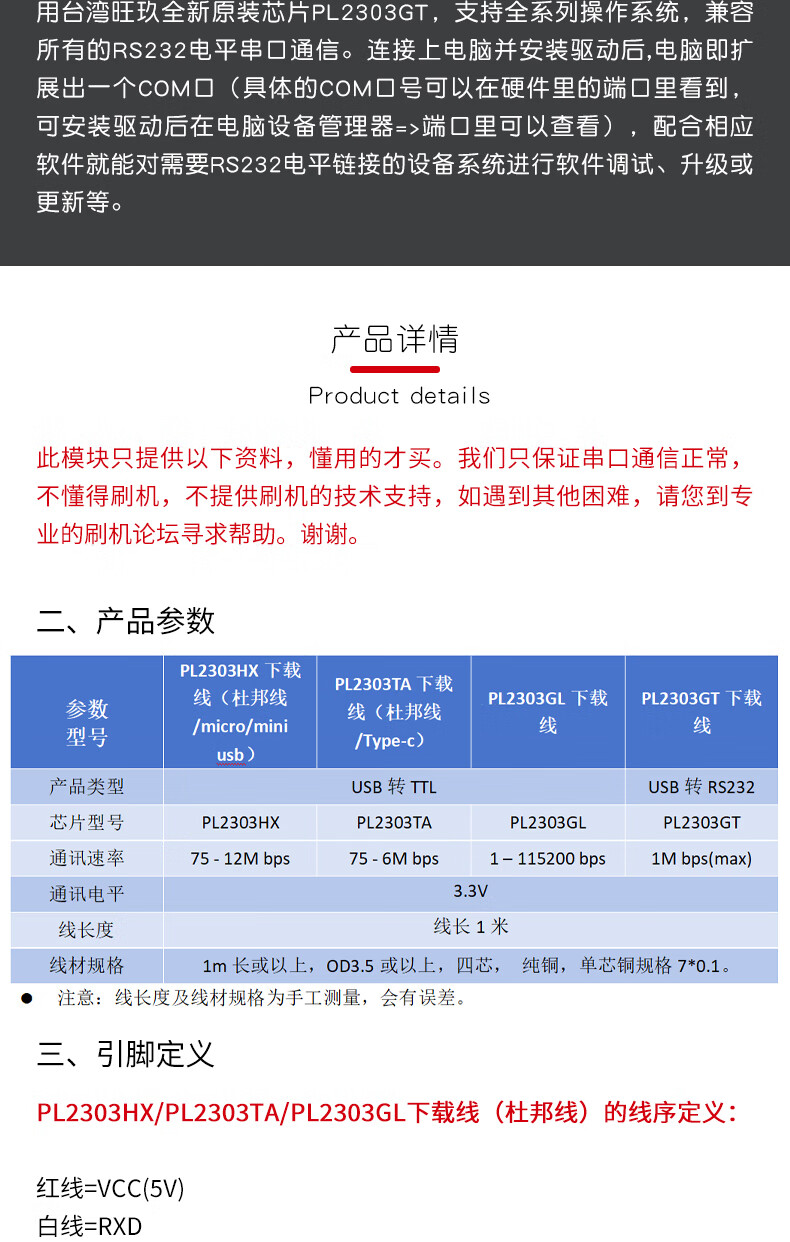 PL2303TA/HX/GT download cable USB to TTL RS232 module with case USB to serial port download cable PL2303HX download cable_Micro interface No Specifications