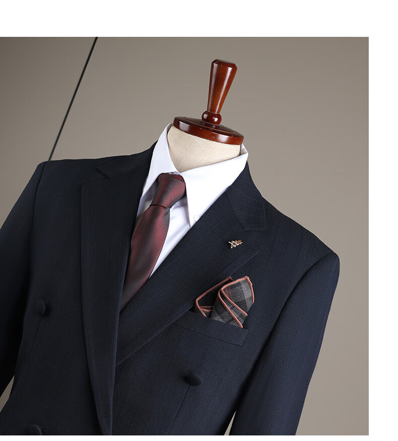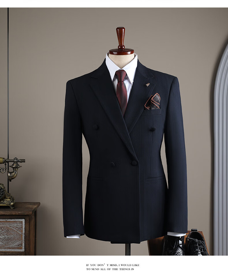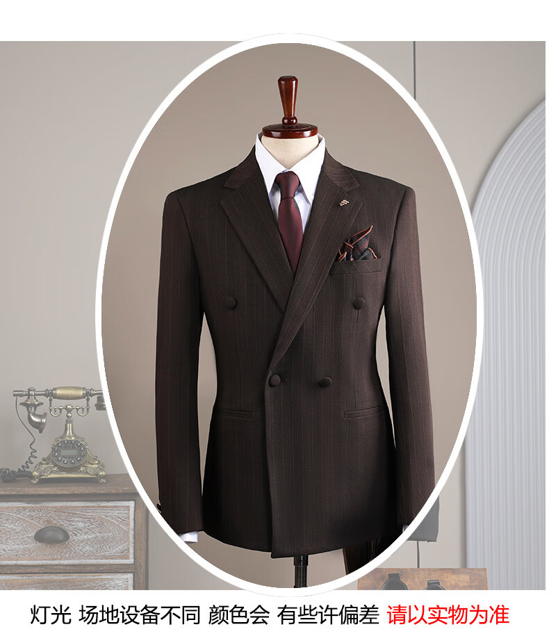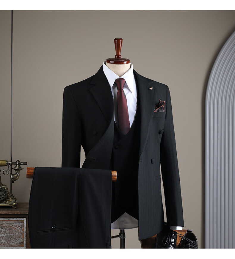 Xixi Shishi suit autumn and winter suit men's double-breasted striped suit men's suit casual groom black (suit + trousers) XL 52 (125-135Jin Jin equals 0.5 kg)