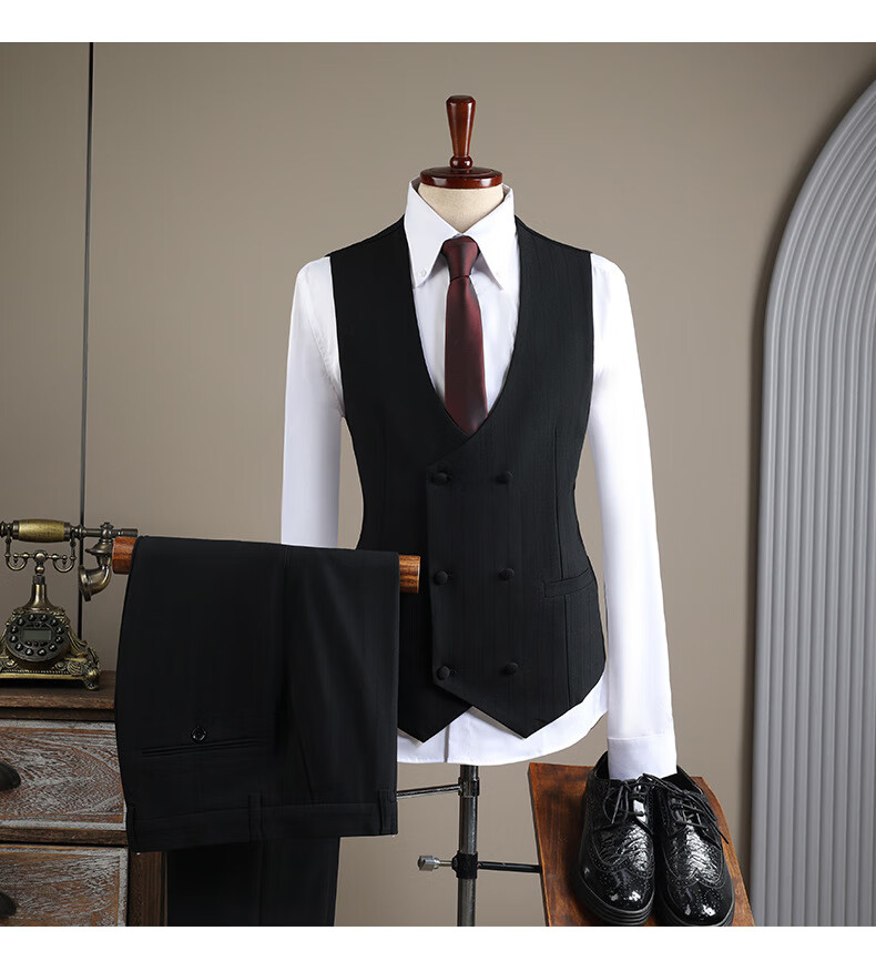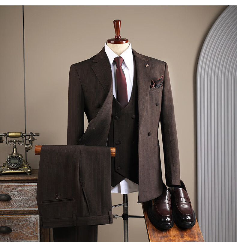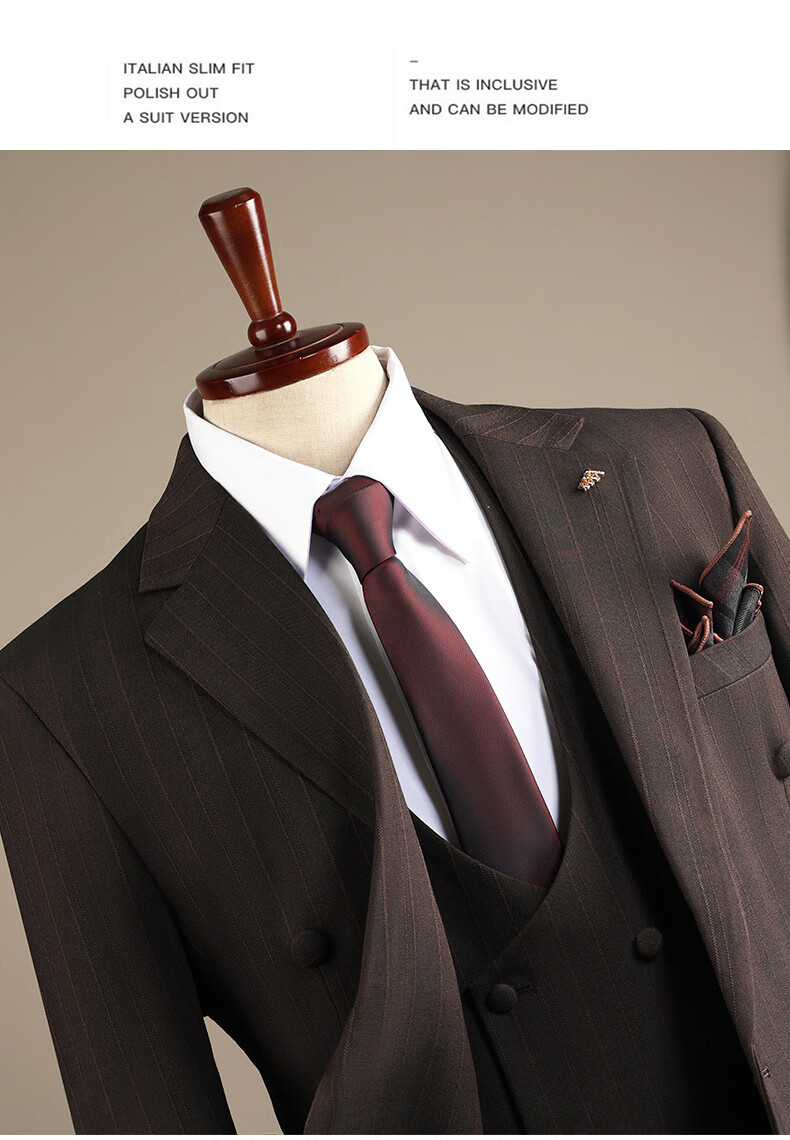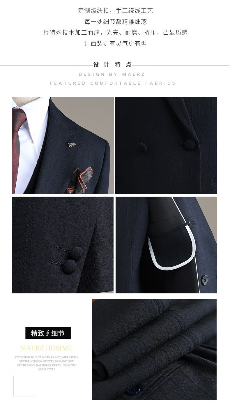 Xixi Shishi suit autumn and winter suit men's double-breasted striped suit men's suit casual groom black (suit + trousers) XL 52 (125-135Jin Jin equals 0.5 kg)