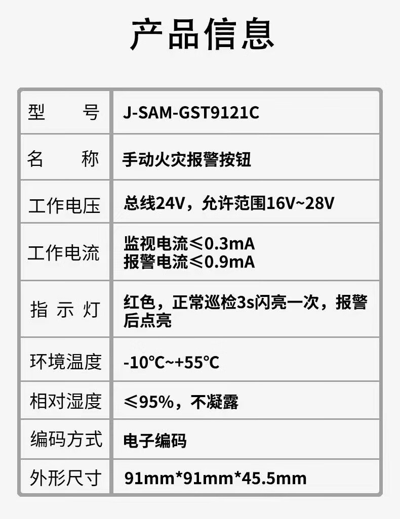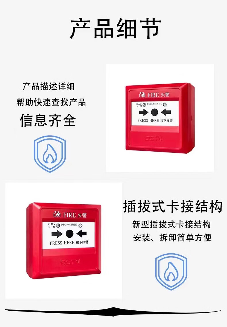 Bay alarm button J-SAM-GST9121A manual fire alarm button without phone jack GST9121A