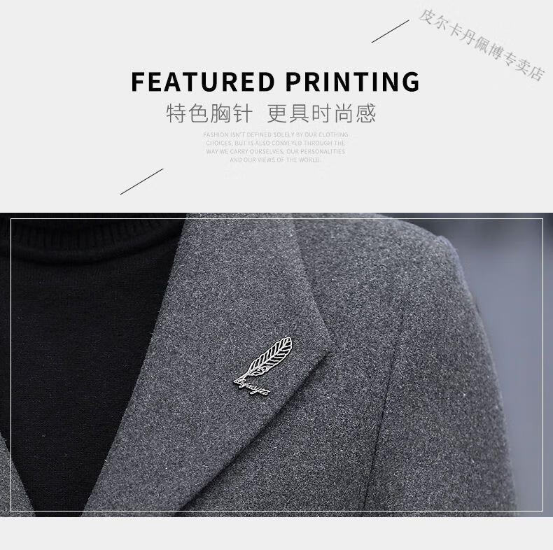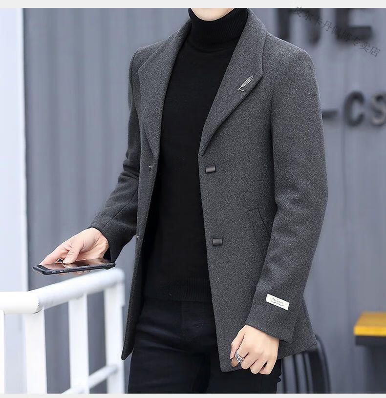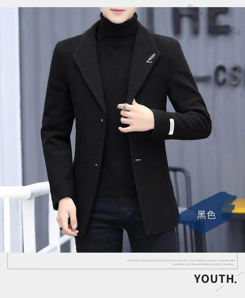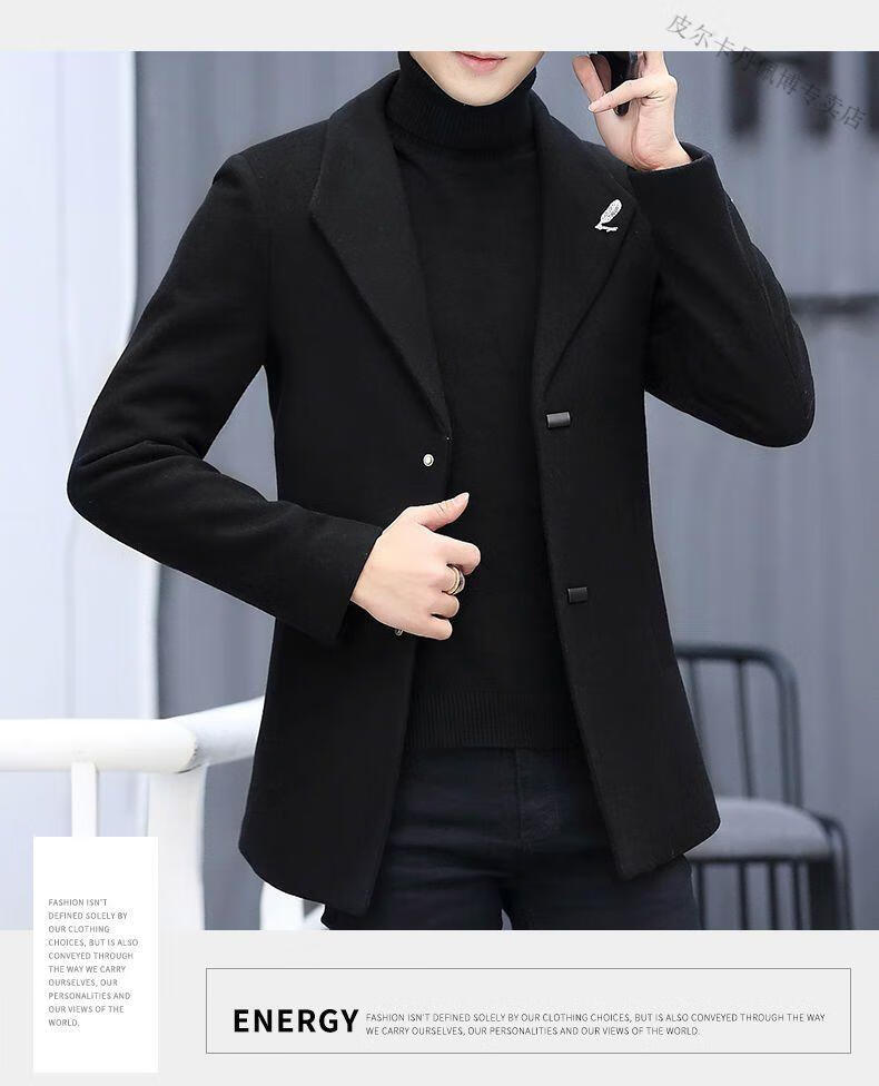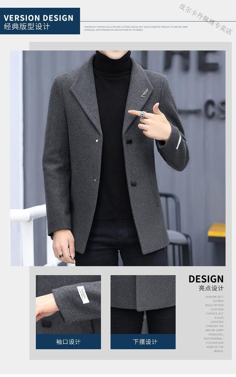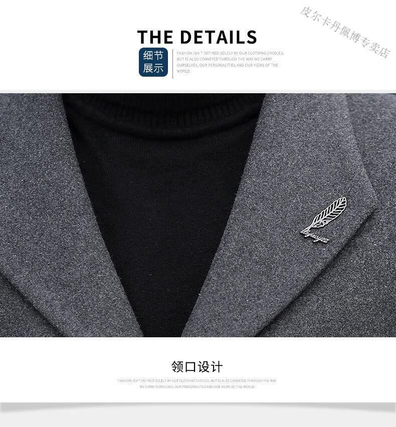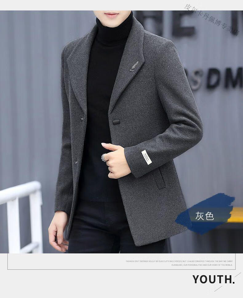Pierre Cardin woolen coat men's short plus velvet thickened autumn and winter Korean version trendy slim British casual woolen coat burgundy 2XL 150-170Jin Jin equals 0.5 kg