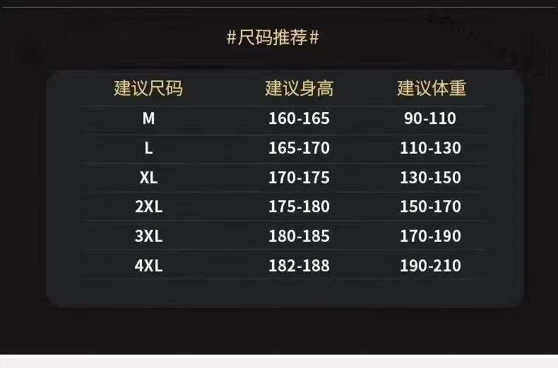 China (cm) 165 / 88-90 170 / 96-98 175 / 108-110 180 / 118-122 185 / 126-130
