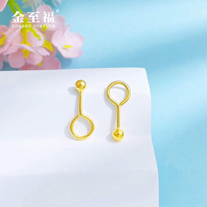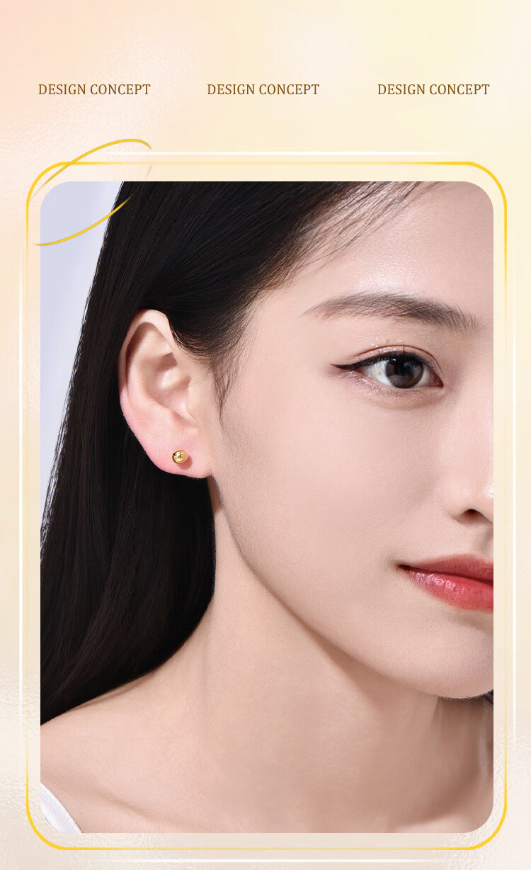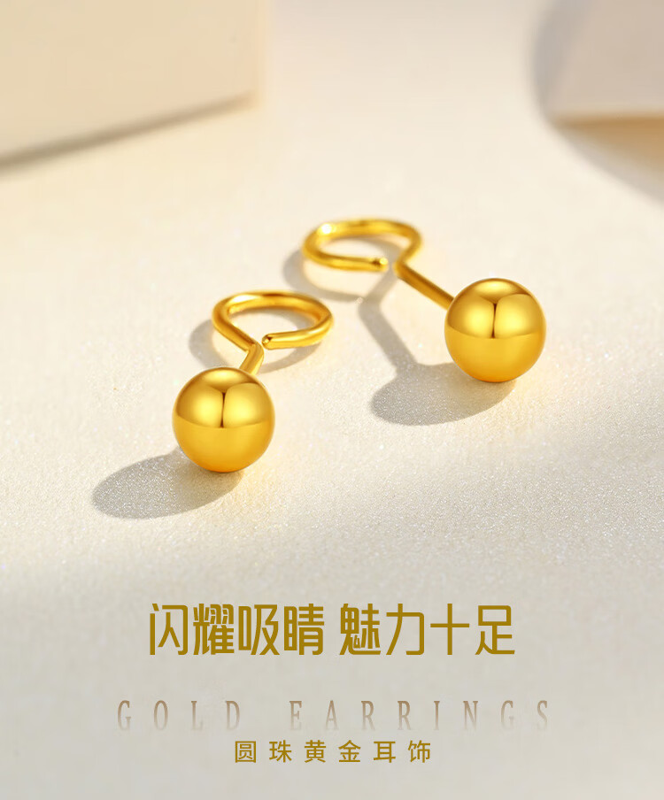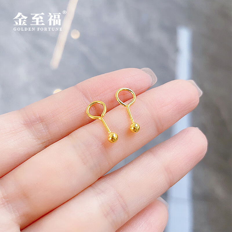 Jinzhifu Guangzhu gold earrings for women, round beads and solid gold earrings for girlfriend, wife, Mid-Autumn Festival birthday gift for women, about 0.95 grams (refund for more)