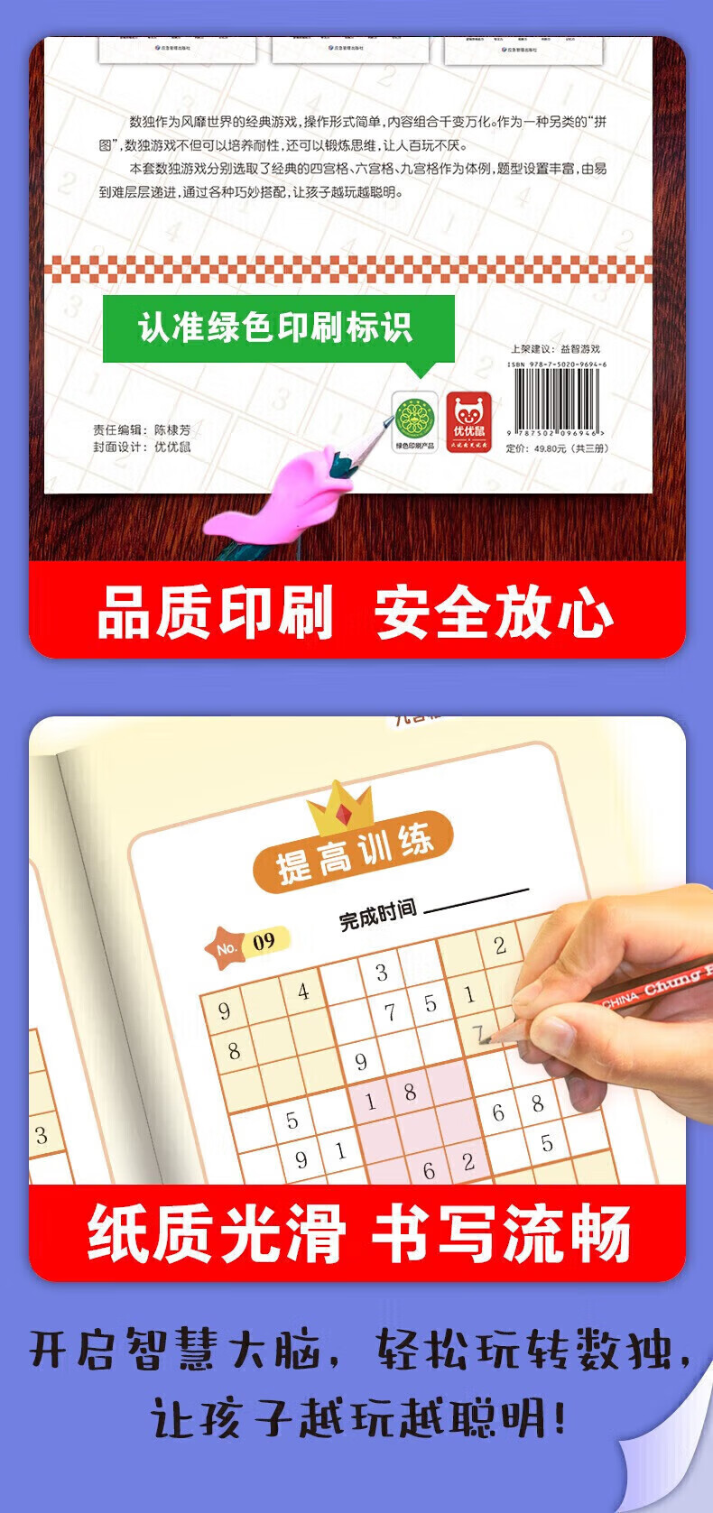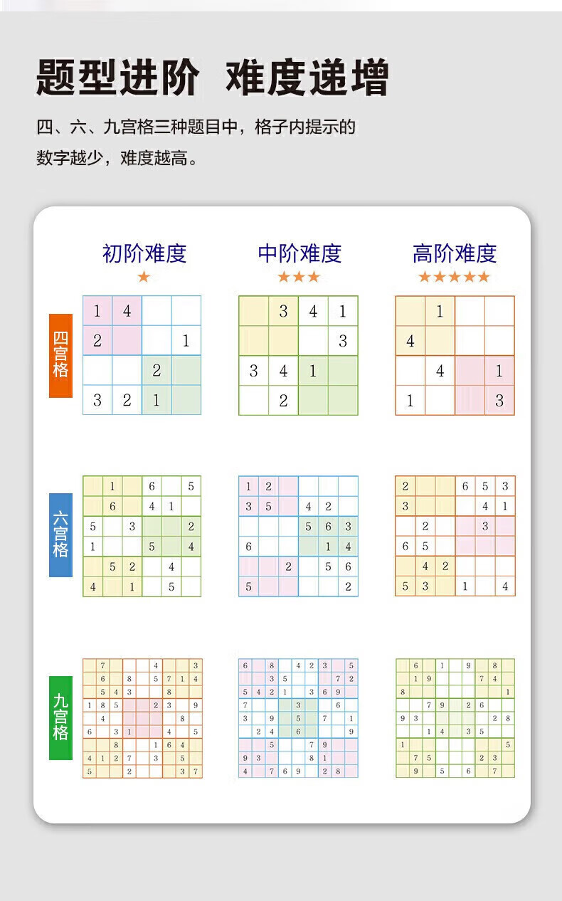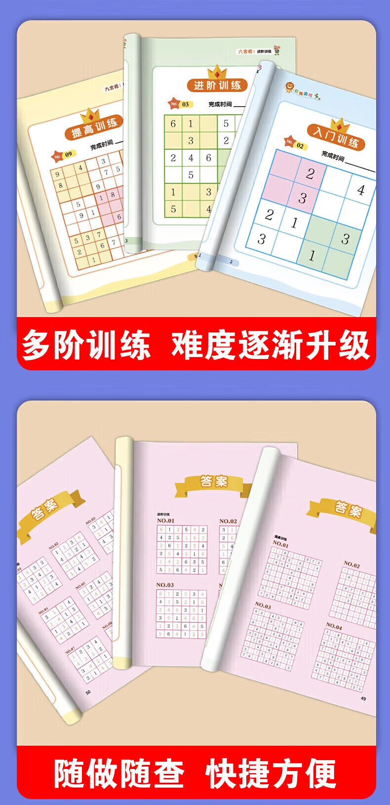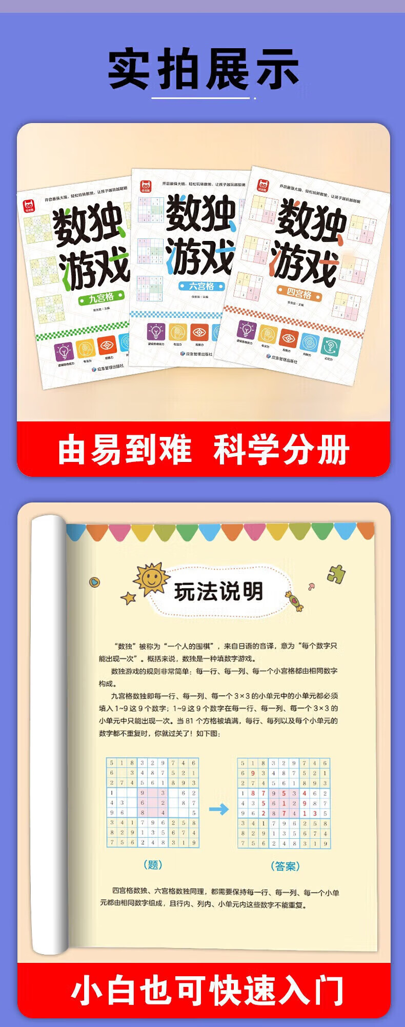 Sudoku Game Book, 3 volumes of children's entry-to-mastery ladder training, four-square grid, six-square grid Sudoku for primary school students, nine-square grid, kindergarten first grade, second grade primary school students' Sudoku toy book, logical thinking and concentration training, number maze intermediate single book