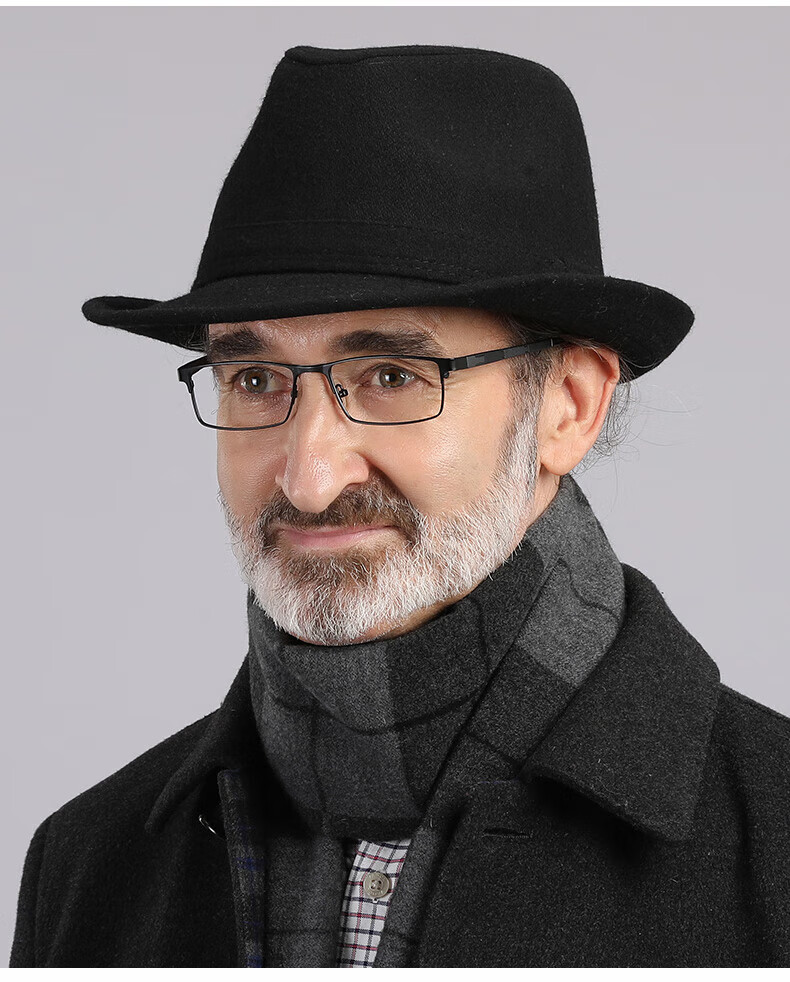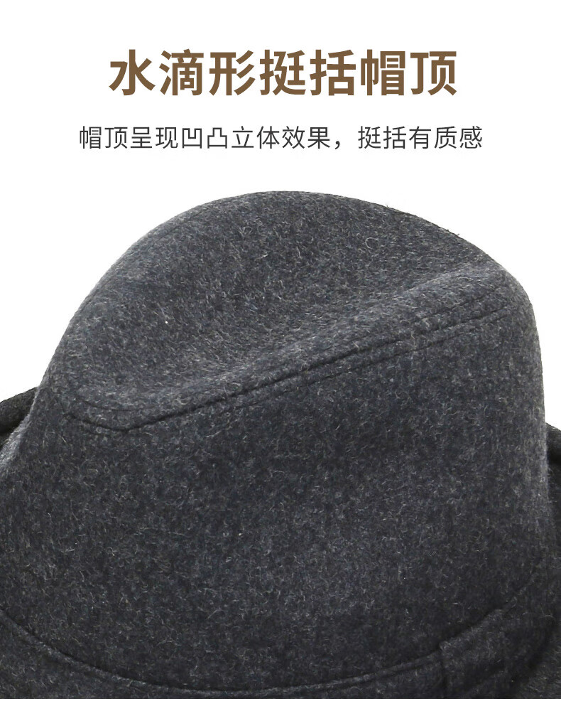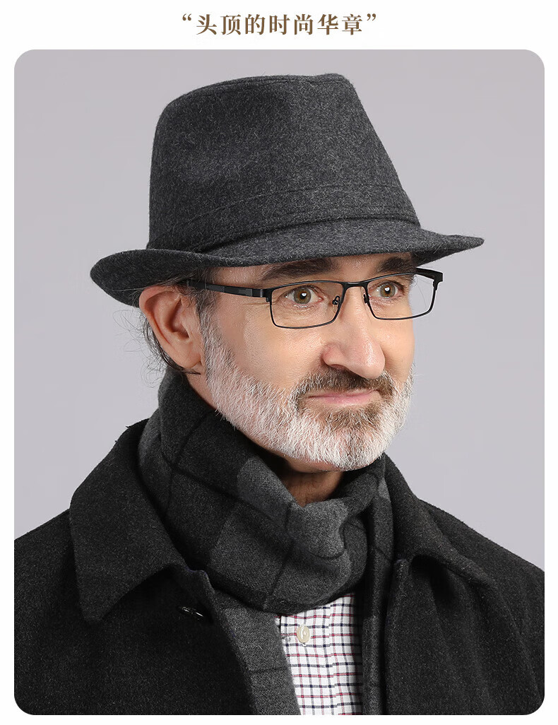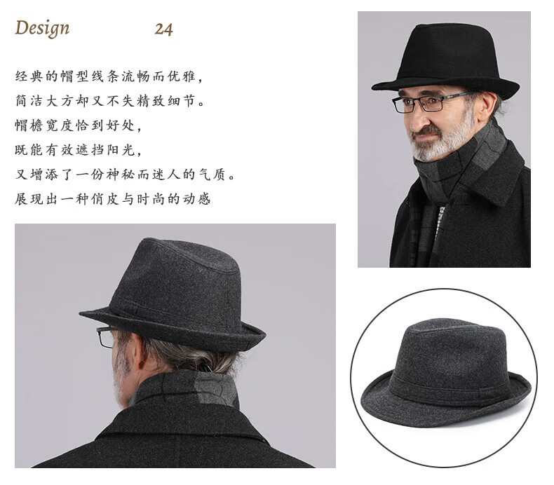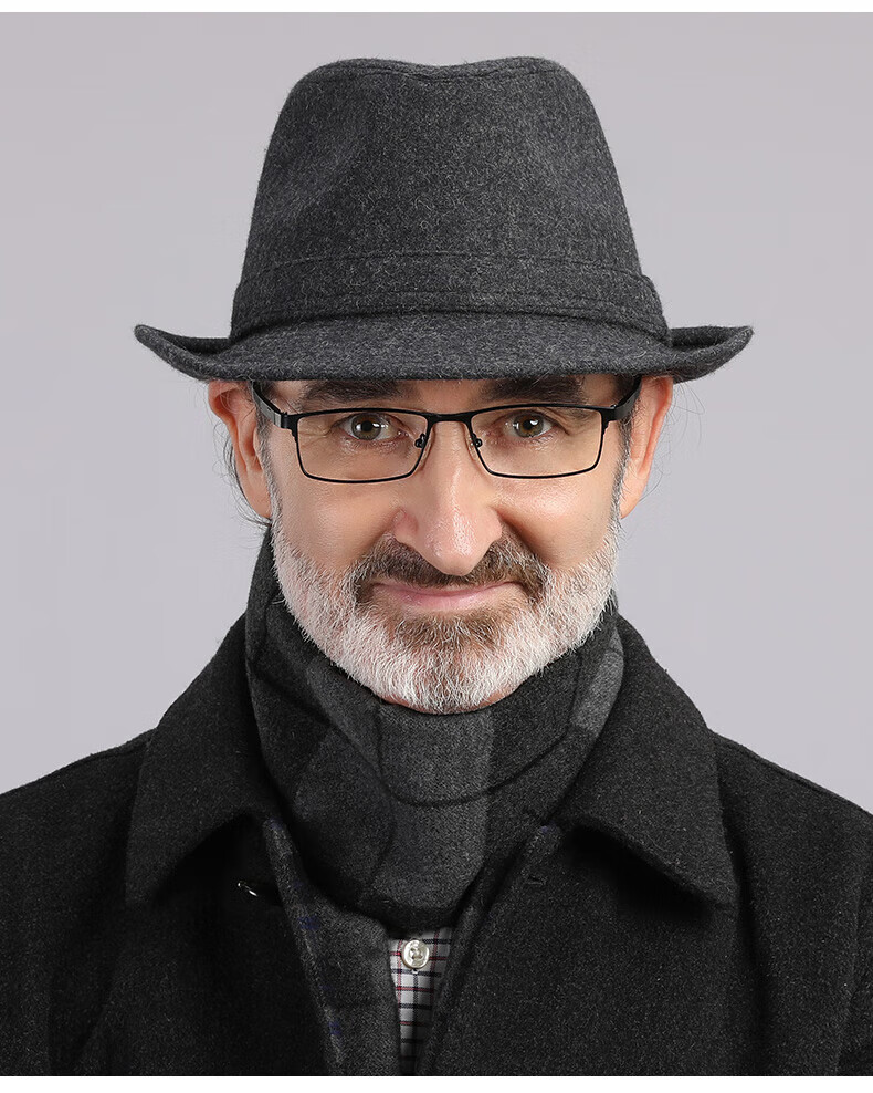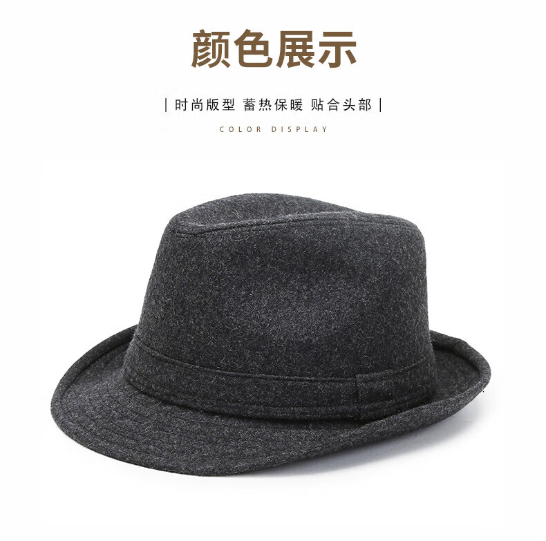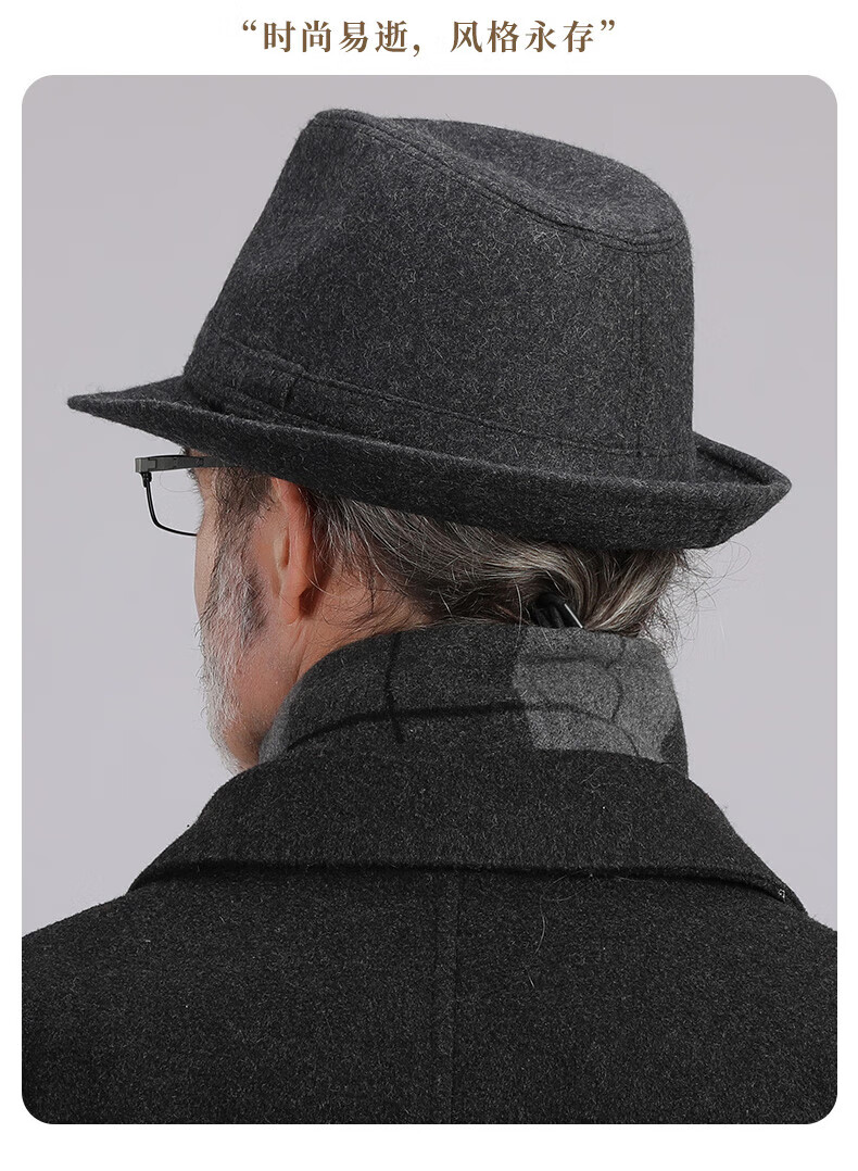 What a cool top hat for middle-aged and elderly men, high-end spring and autumn woolen woolen warm jazz hat, winter dad and elderly retro gentleman hat, dark gray S (55-56cm)